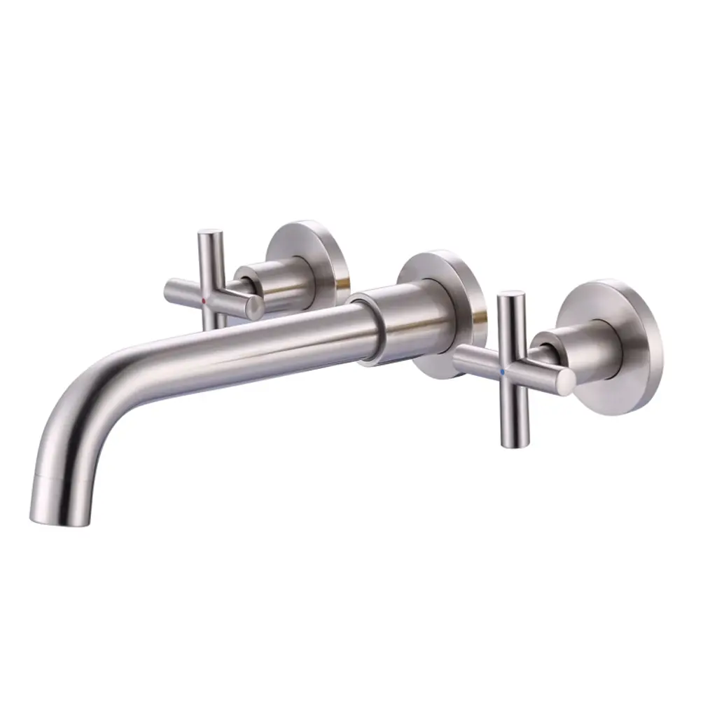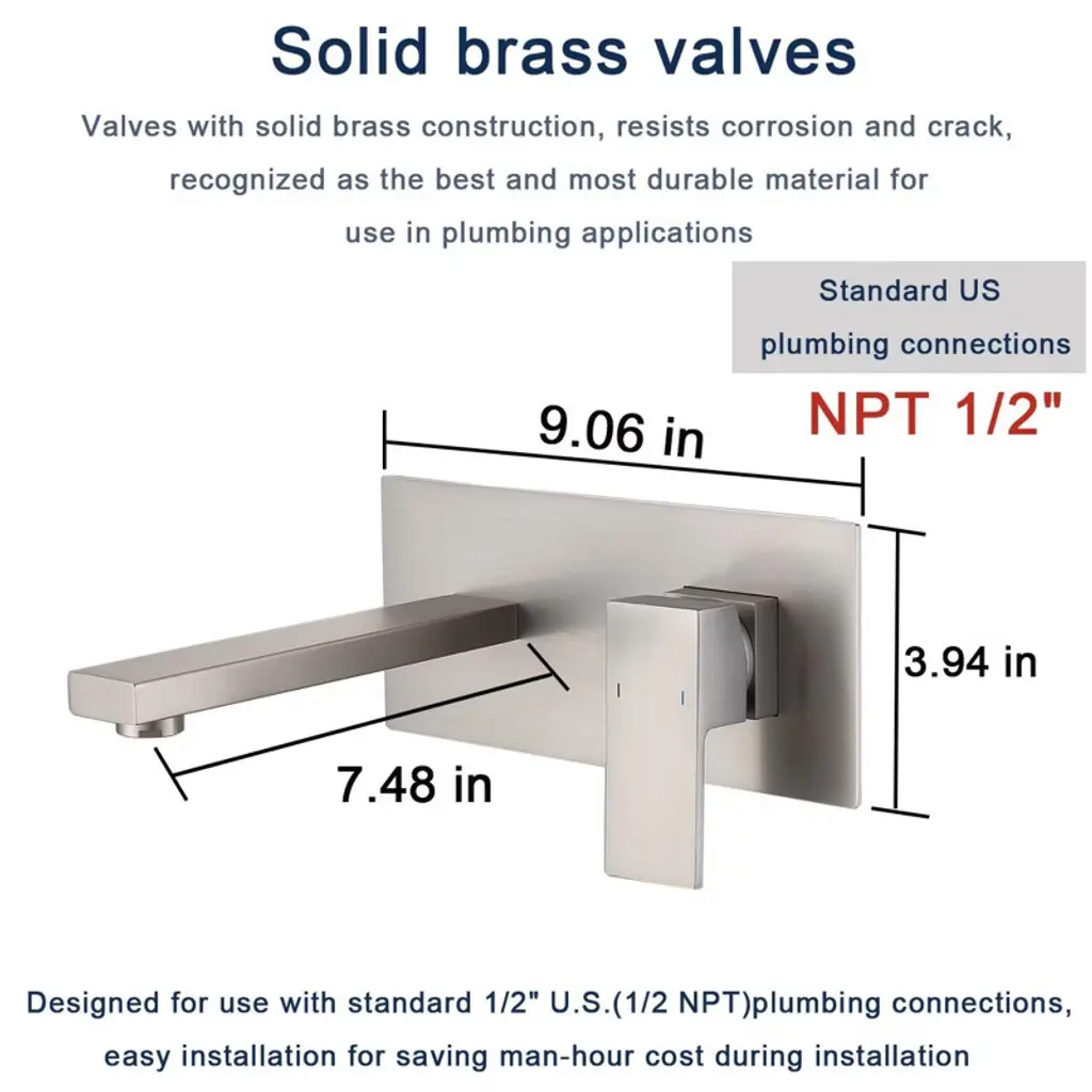ChicFurnit Bathroom Sink Faucet offers a premium all-metal construction with a lead-free design for durability. The high-quality ceramic disc cartridge ensures drip-free performance, while the bubble aerator spout provides splash-free water flow. Its space-saving wall-mount design saves sink space and is easy to install with a concealed valve, bringing a sleek modern touch to your bathroom. The rough-in valve simplifies installation and maintenance.