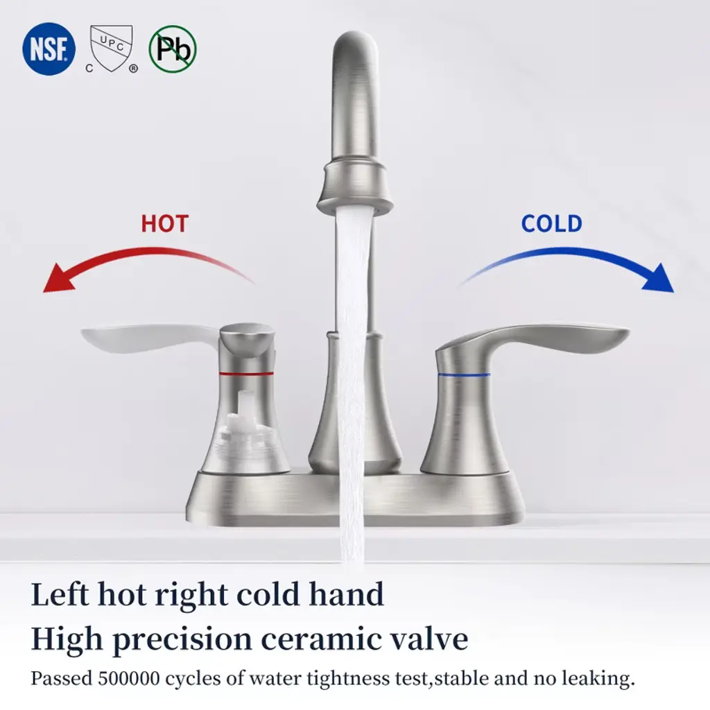ChicFurnit Bathroom Sink Faucet features premium anti-scratch, rust-resistant construction for long-lasting durability. The dual metal handles offer precise control over water temperature and flow, while the water-efficient aerator ensures a splash-free flow. Easy to install with all necessary components included, this faucet features a 360-degree swivel nozzle for maximum flexibility in the bathroom. Ideal for both small and large spaces, it combines style and efficiency.