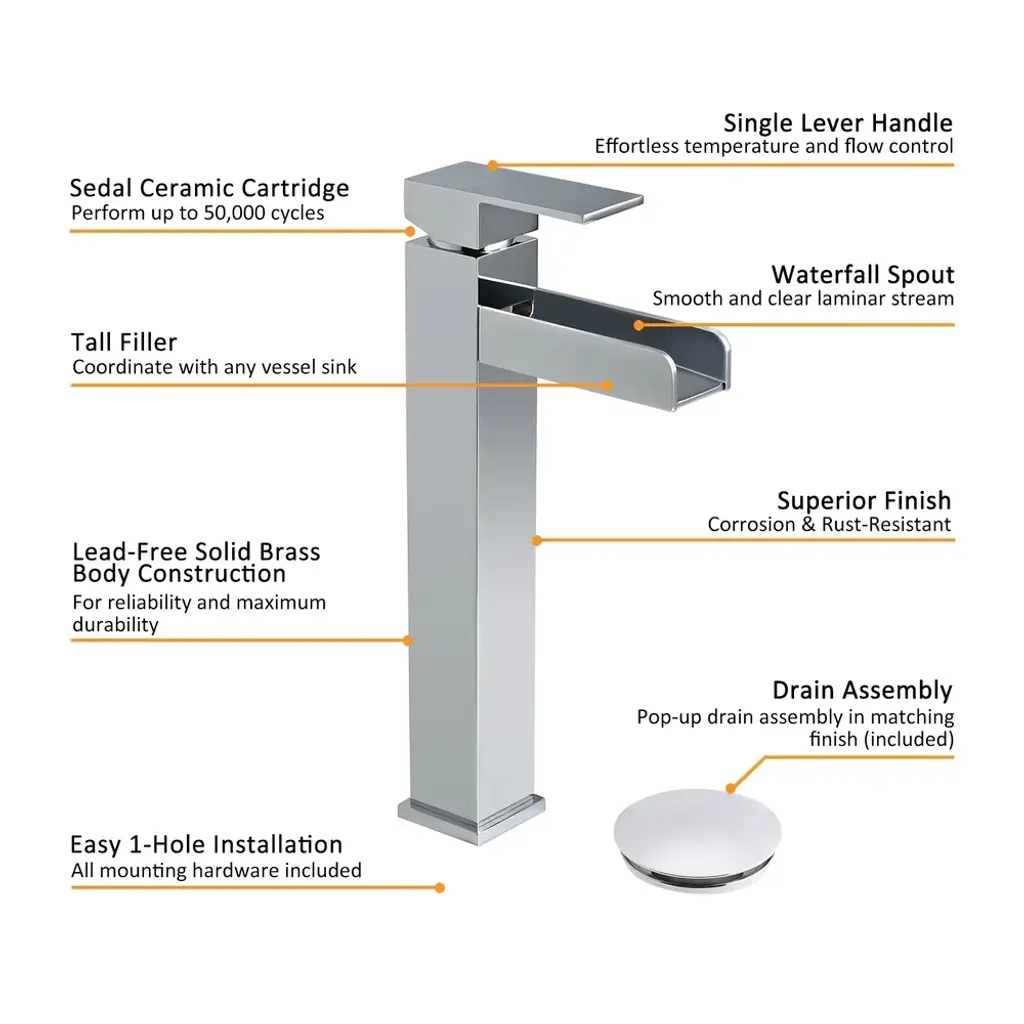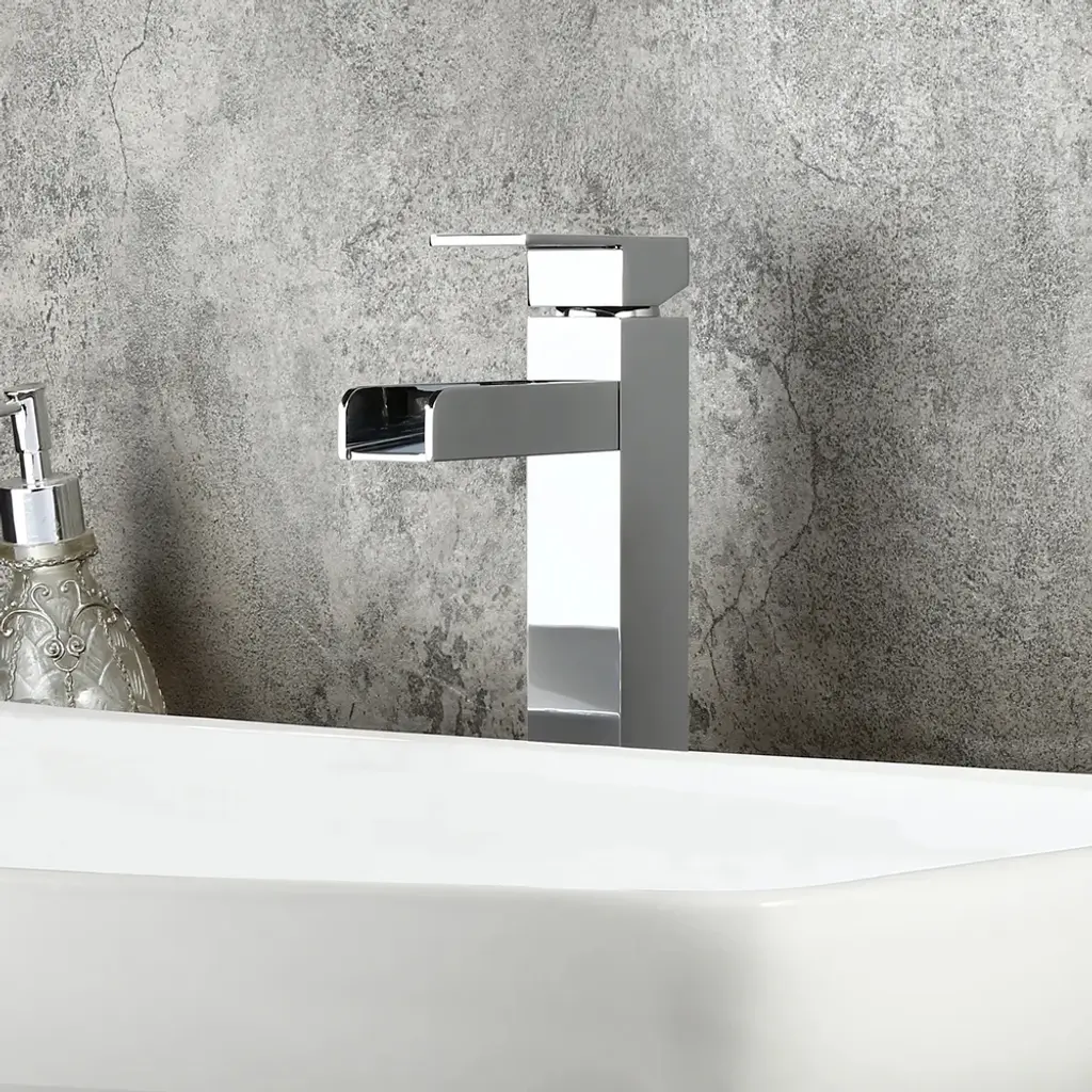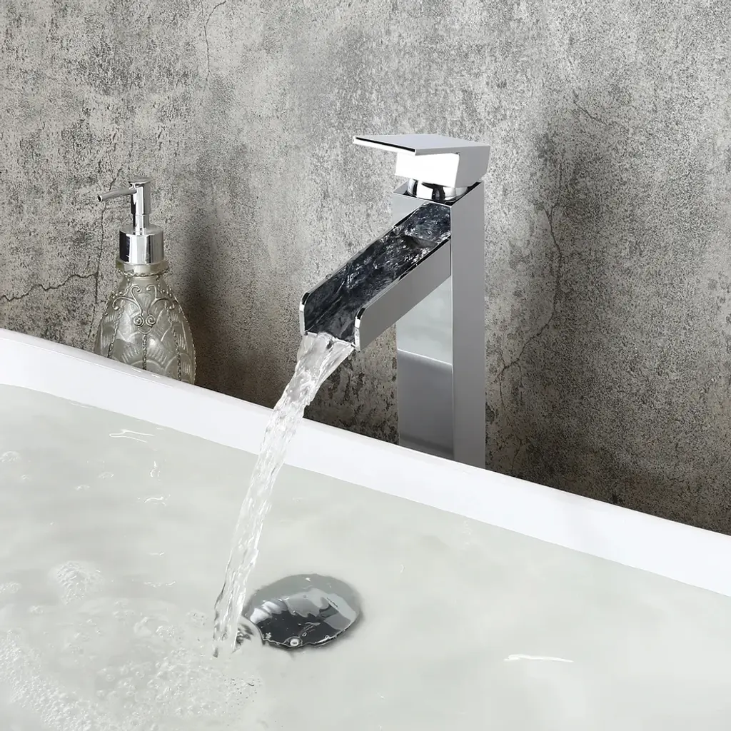 Chrome Single Handle Waterfall Bathroom Vessel Sink Faucet Solid Brass Modern