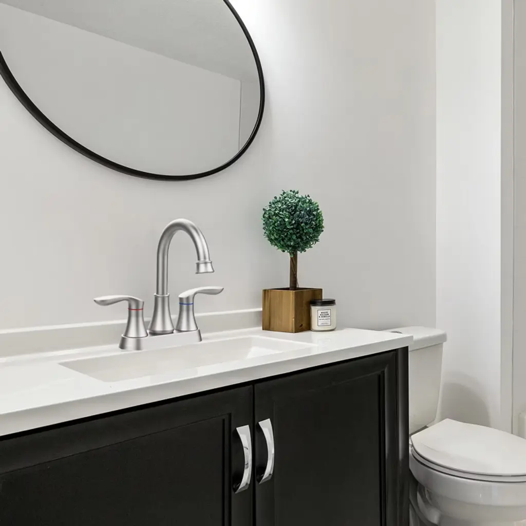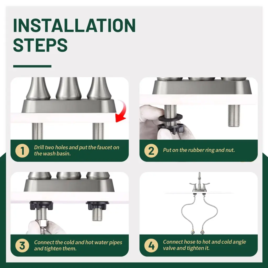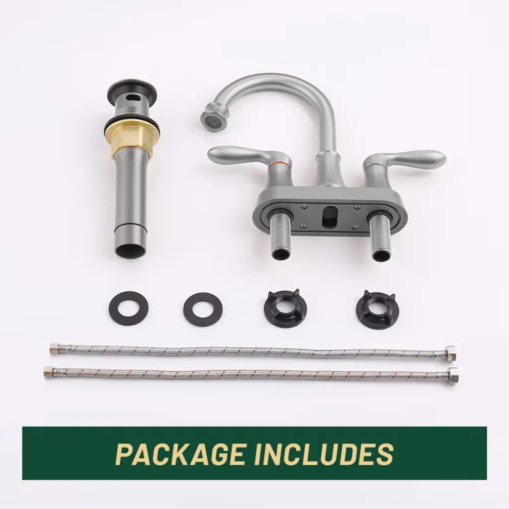 Our bathroom faucets are made of high quality materials that are durable and corrosion resistant. The professionally tested ceramic cartridge ensures that the faucet will not leak or drip and is durable. Perfect for new house renovation, old house renovation, high-end villas, high-end apartments, luxury hotels, elite and middle class. HIGH QUALITY MATERIALS & DESIGN : Exquisite bathroom sink faucet is rust and corrosion resistant to ensure durability. Dual Handle Metal Handle; The dual handle handle bathroom faucet is designed for precise control of water volume and water temperature, and the advanced ceramic cartridge prevents leaks and drips. WATER CONSERVATION: Imported ABS aerator of 2-hole mount 4-inch center bathroom sink faucet enhances the dense foaming effect, the water flow is dense and soft without splashing, which improves water conservation efficiency. Suitable for rental houses, new apartments, bachelor pads, motels, travel trailers and homes. EASY INSTALLATION: The bathroom faucet is designed to help you save money by following the instructions and installing it in less than 30 minutes without a plumber. Everything you need is included in the box (including the pop-up drain and stainless steel braided inlet hose). 360° Swivel: The 360-degree swivel nozzle provides a full range of cleaning for your bathroom sink.