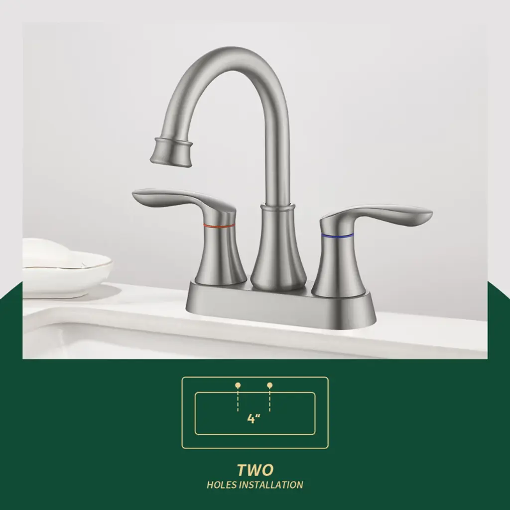 Cobbe 2-handle 4-inch Brushed Nickel Bathroom Faucet, Bathroom Vanity Sink Faucets With Pop-up Drain And Supply Hoses