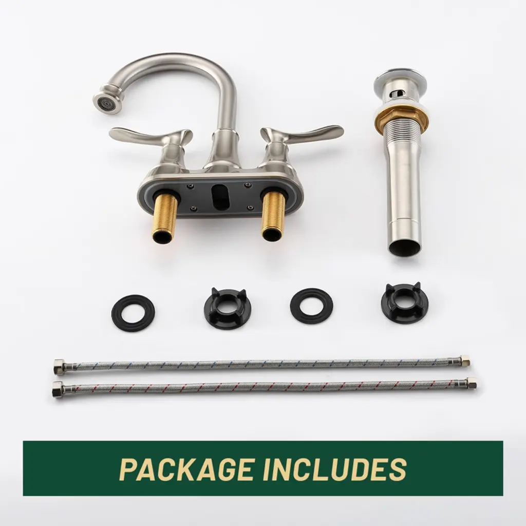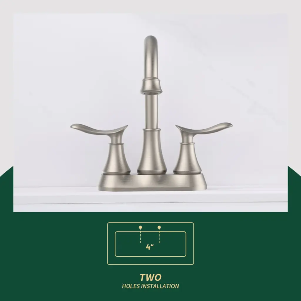 Cobbe 2-handle 4-inch Brushed Nickel Bathroom Faucet, Bathroom Vanity Sink Faucets With Pop-up Drain And Supply Hoses