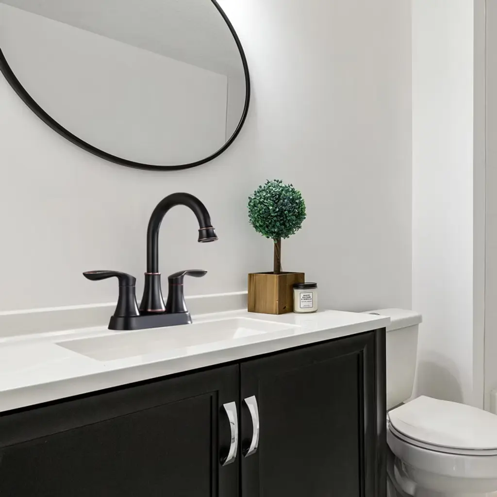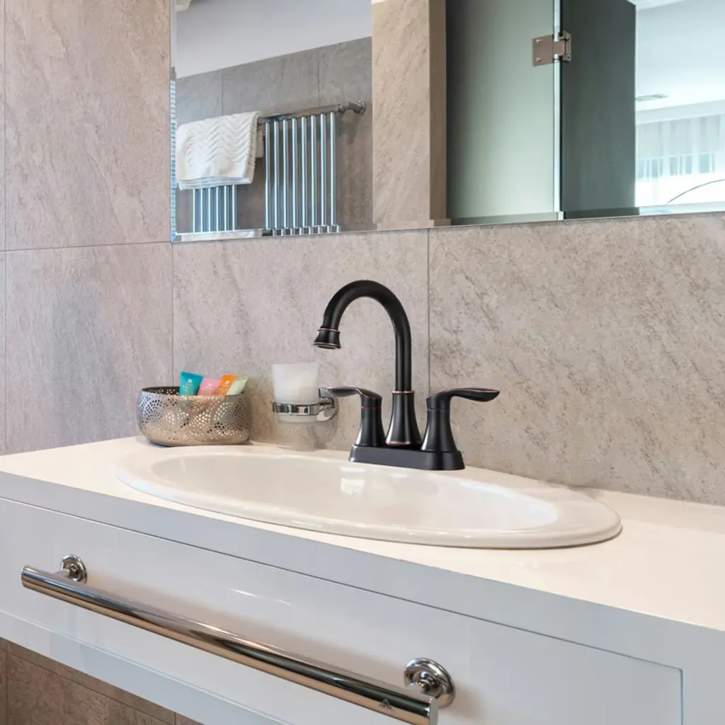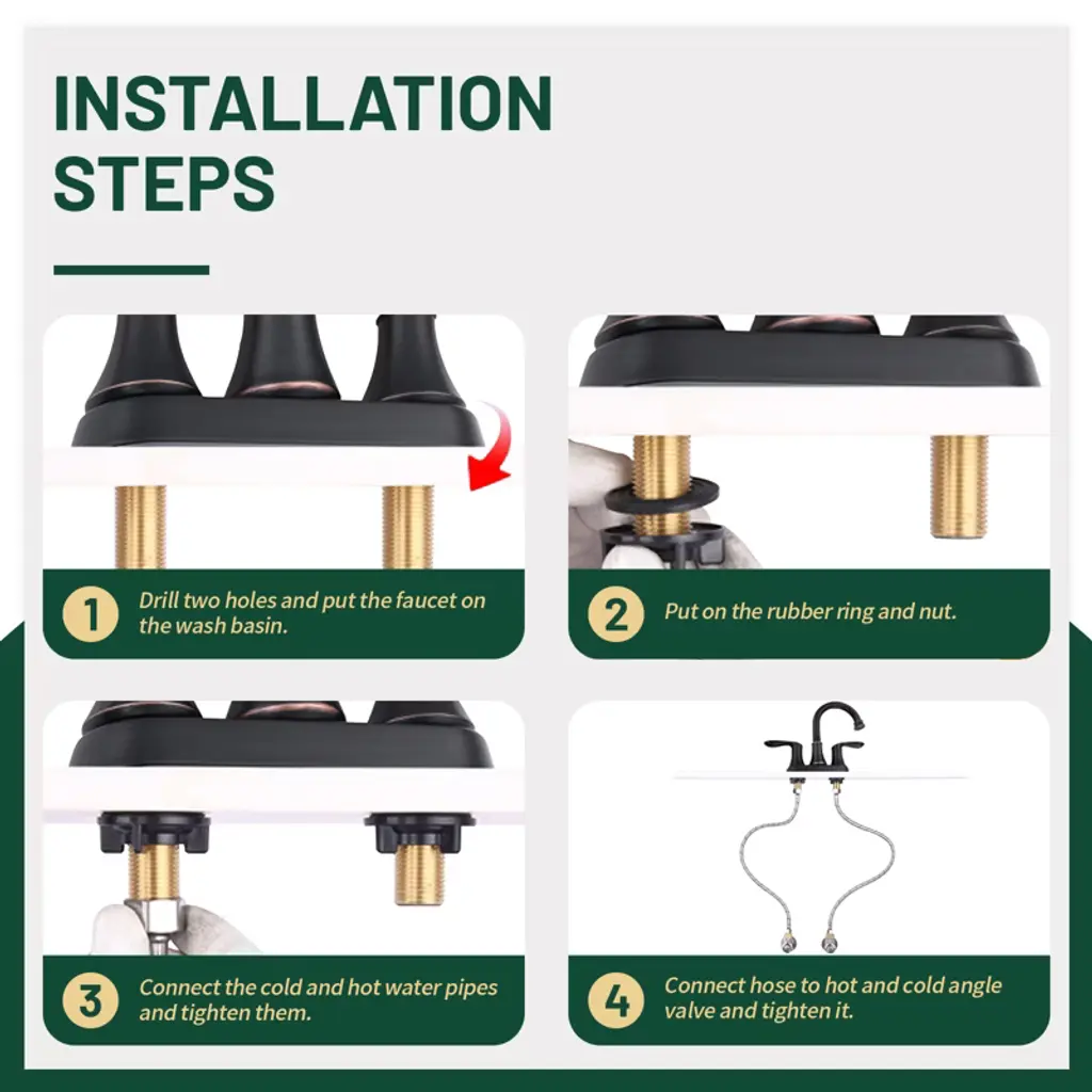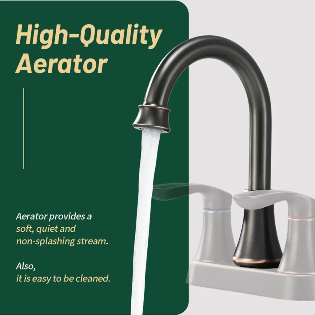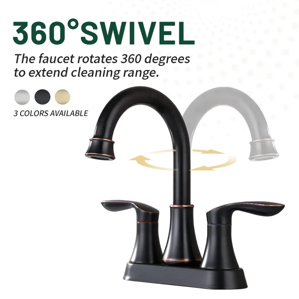 Our bathroom faucets are made of high quality materials that are durable and corrosion resistant. The professionally tested ceramic cartridge ensures that the faucet will not leak or drip and is durable. Perfect for new house renovation, old house renovation, high-end villas, high-end apartments, luxury hotels, elite and middle class. HIGH QUALITY MATERIALS & DESIGN : Exquisite bathroom sink faucet is rust and corrosion resistant to ensure durability. Dual Handle Metal Handle; The dual handle handle bathroom faucet is designed for precise control of water volume and water temperature, and the advanced ceramic cartridge prevents leaks and drips. WATER CONSERVATION: Imported ABS aerator of 2-hole mount 4-inch center bathroom sink faucet enhances the dense foaming effect, the water flow is dense and soft without splashing, which improves water conservation efficiency. Suitable for rental houses, new apartments, bachelor pads, motels, travel trailers and homes. EASY INSTALLATION: The bathroom faucet is designed to help you save money by following the instructions and installing it in less than 30 minutes without a plumber. Everything you need is included in the box (including the pop-up drain and stainless steel braided inlet hose). 360° Swivel: The 360-degree swivel nozzle provides a full range of cleaning for your bathroom sink.
