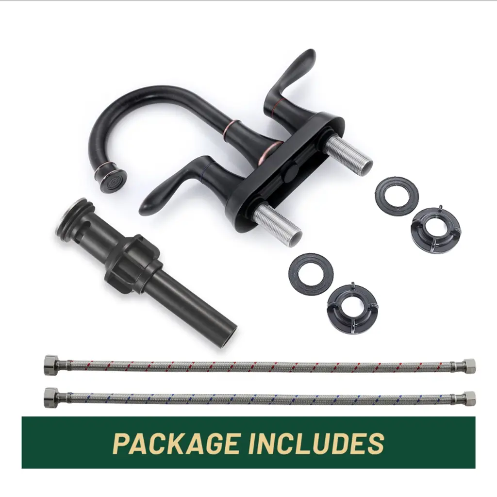 Cobbe 2-handle 4-inch Oil Rubbed Bronze Bathroom Faucet, Bathroom Vanity Sink Faucets With Pop-up Drain And Supply Hoses