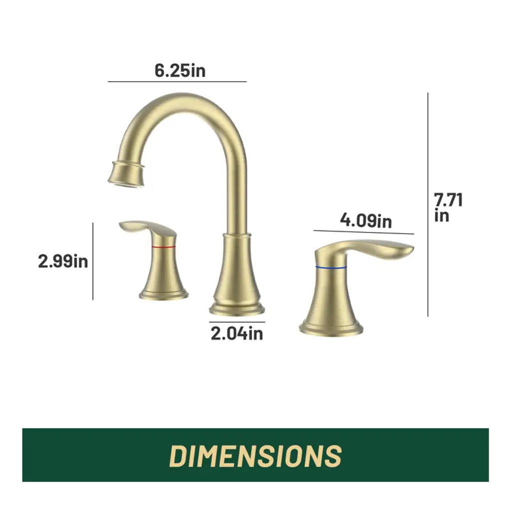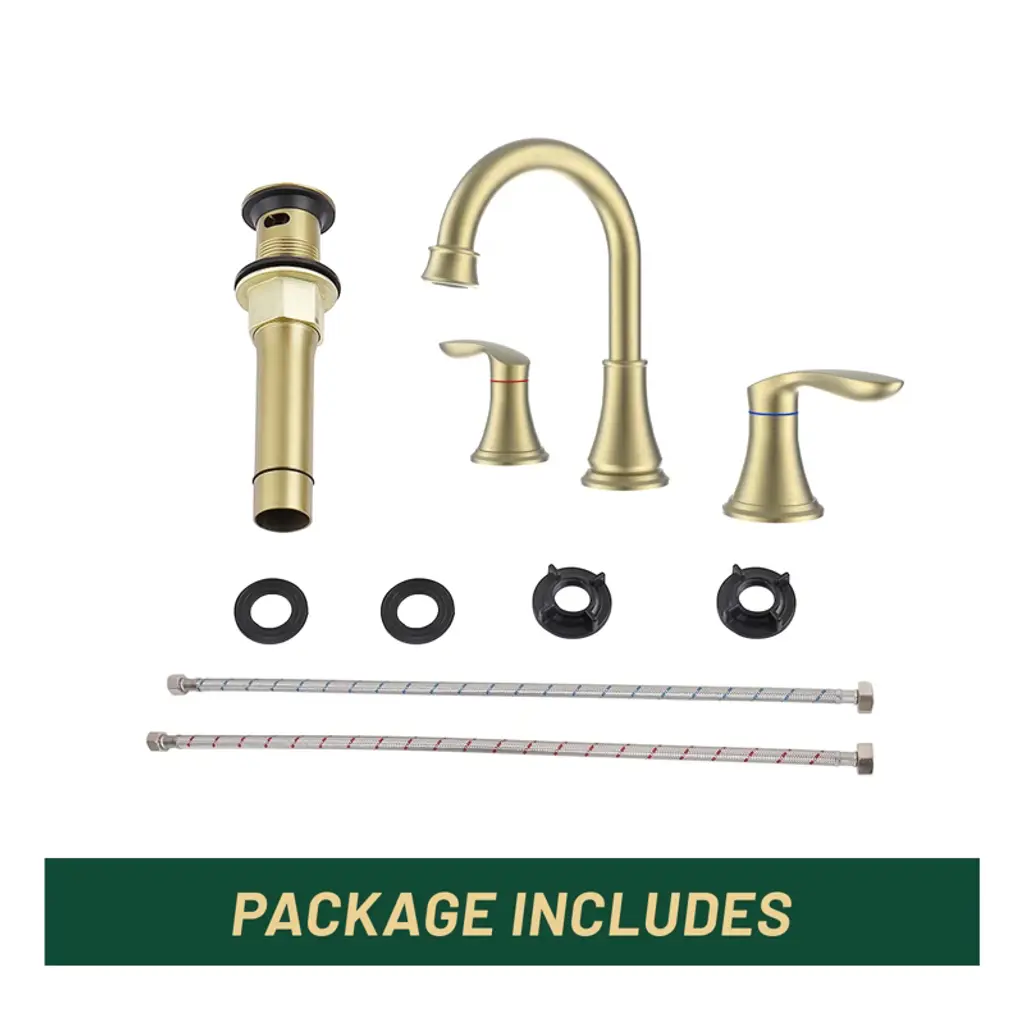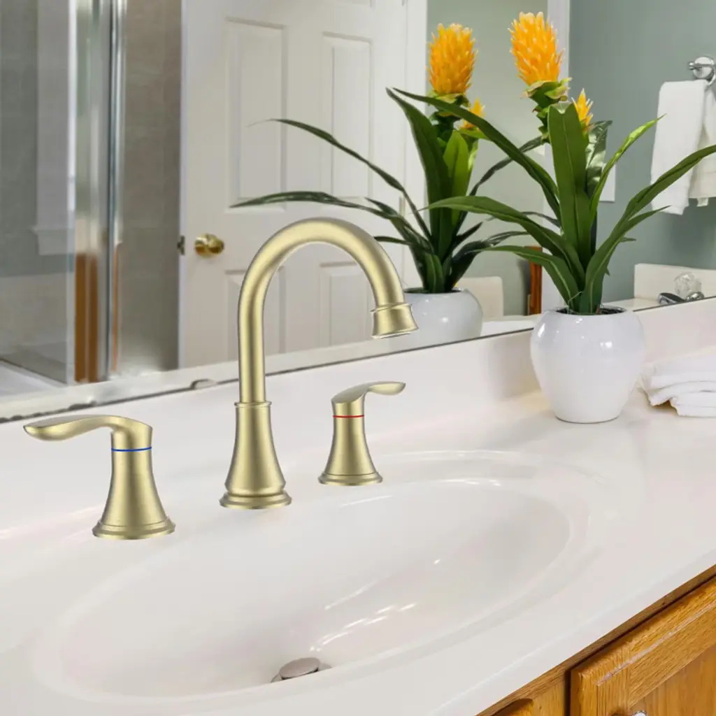 Cobbe 2-handle 8 Inch Widespread Bathroom Sink Faucet Brushed Gold Lavatory Faucet 3 Hole 360° Swivel Spout Vanity Sink Basin Faucets