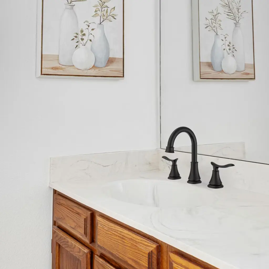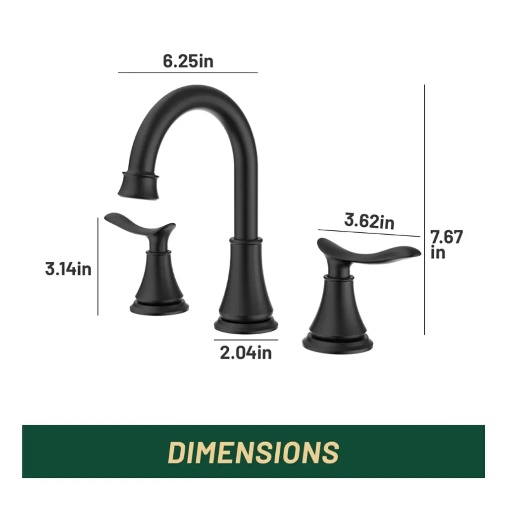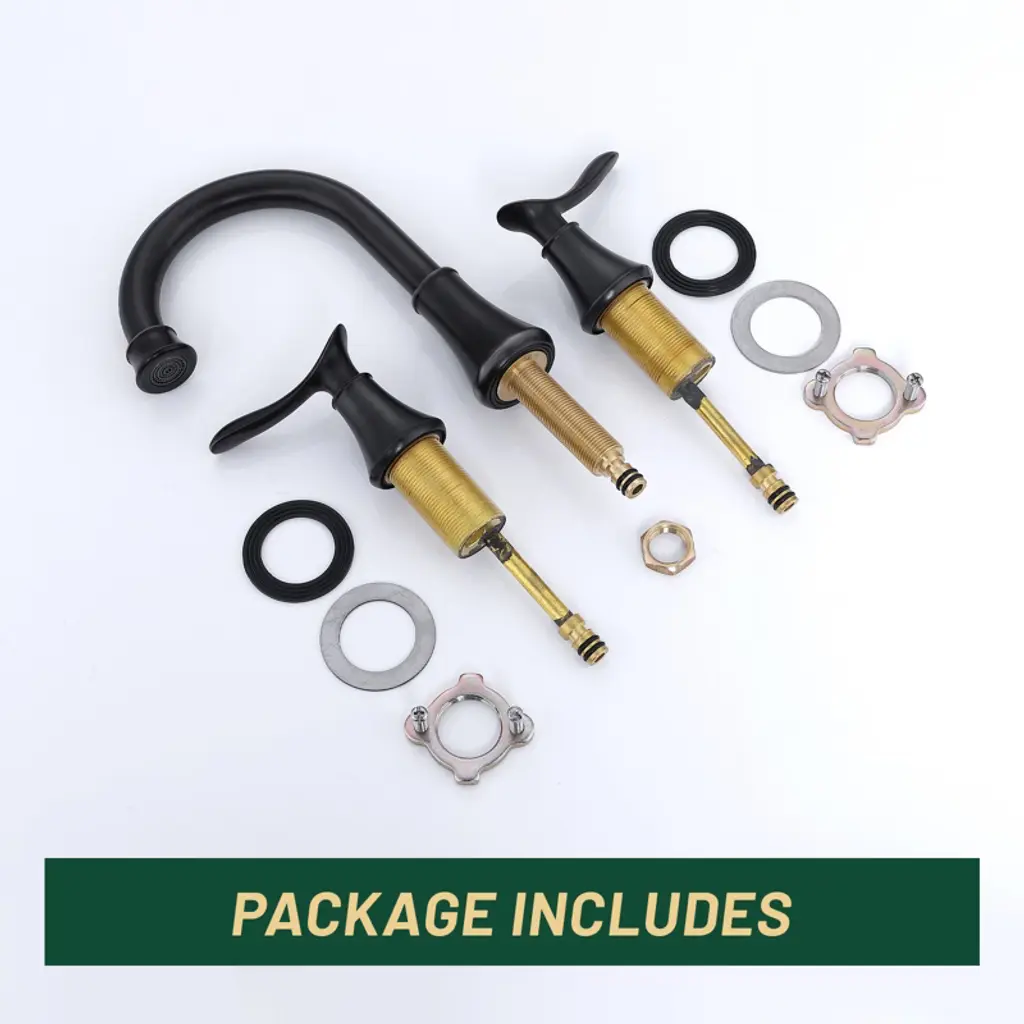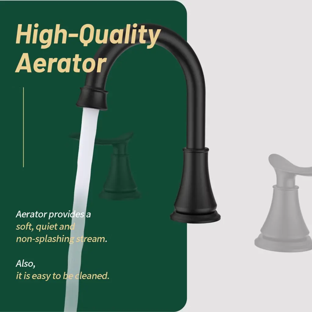 Cobbe 2-handle 8 Inch Widespread Bathroom Sink Faucet Matte Black Lavatory Faucet 3 Hole 360° Swivel Spout Vanity Sink Basin Faucets