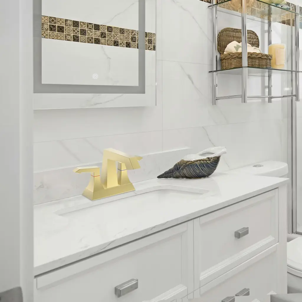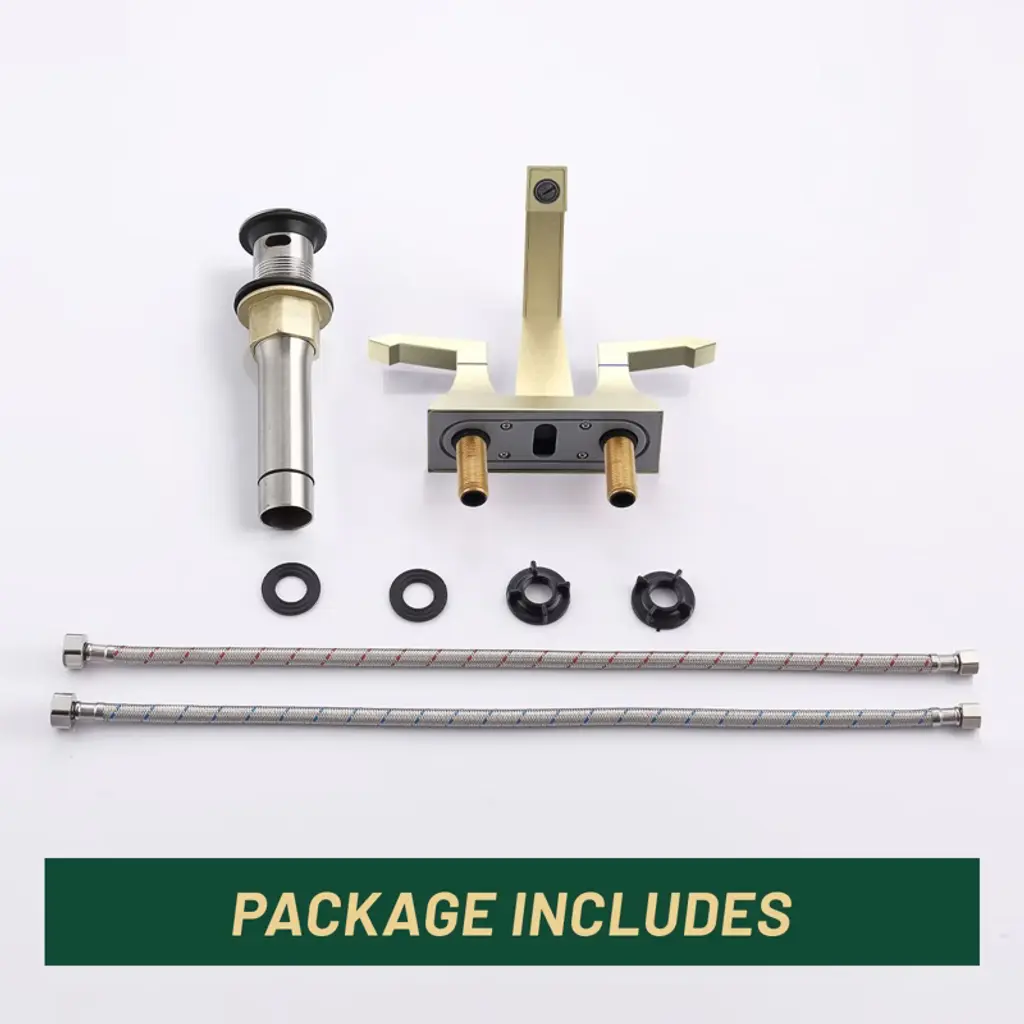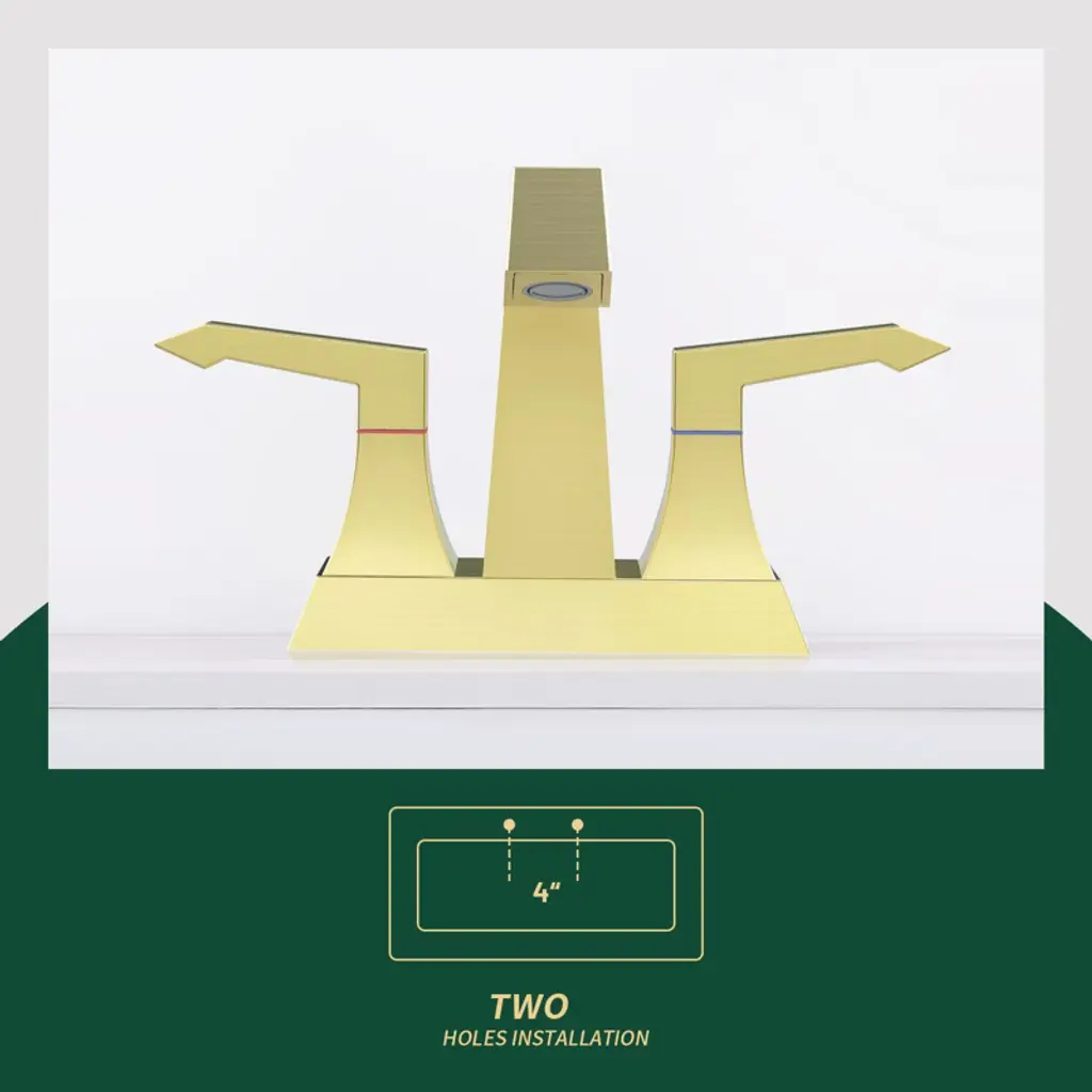 Cobbe 2-handle Heavy Duty Bathroom Faucet With Drain And Supply Kits, Modern Style Lavatory Deck Mounted Faucet Brushed Gold