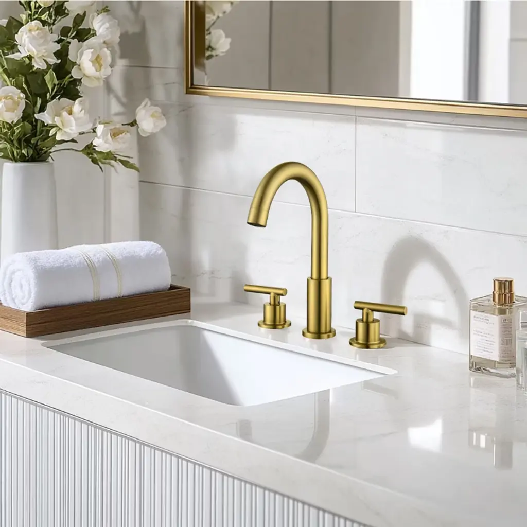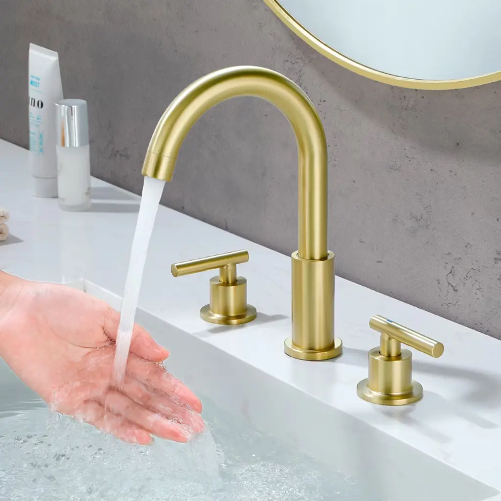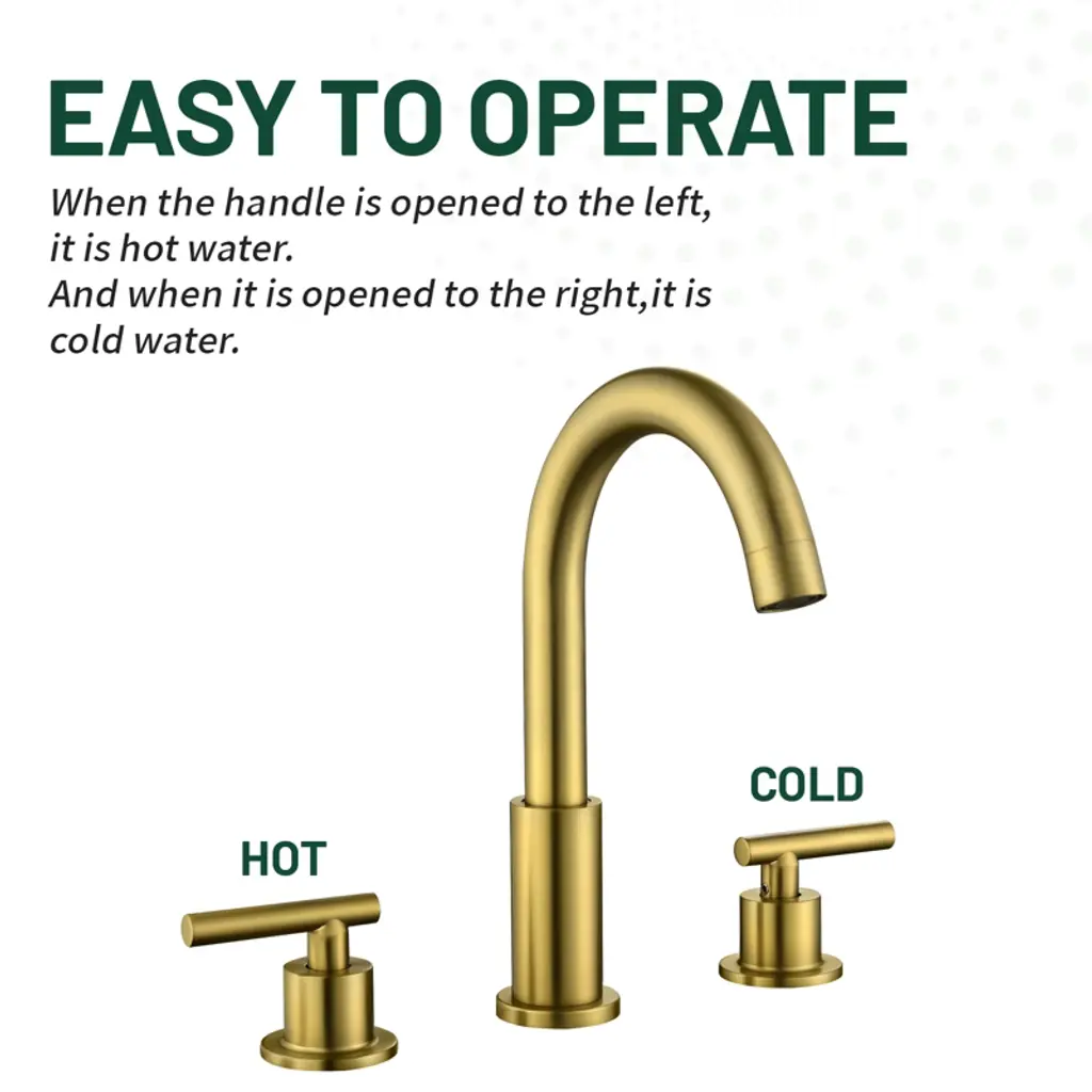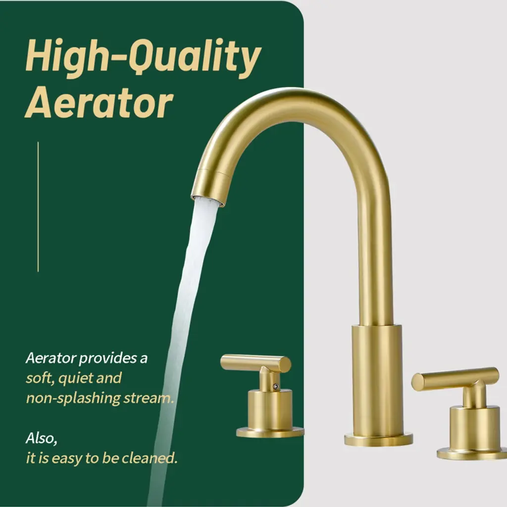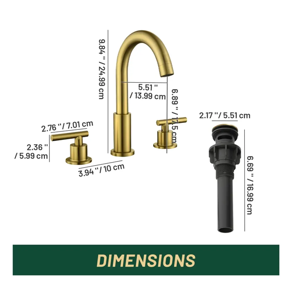 Cobbe 3-hole 8-inch Widespread Bathroom Faucet Two-handle Bathroom Sink Faucet With Pop-up Drain Brushed Gold