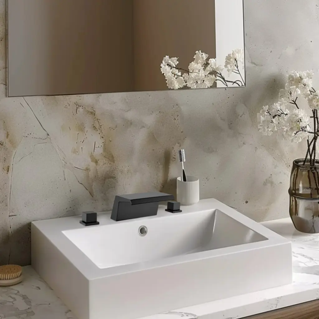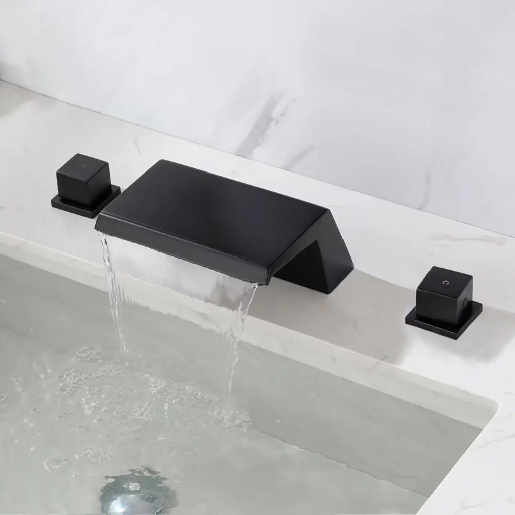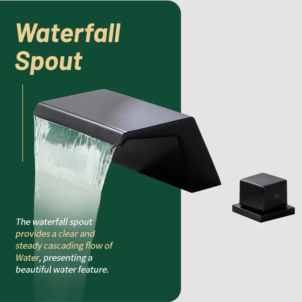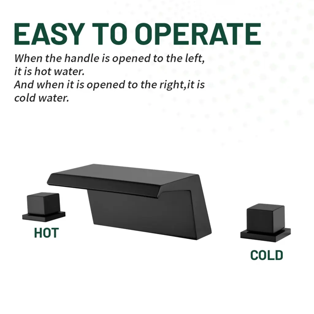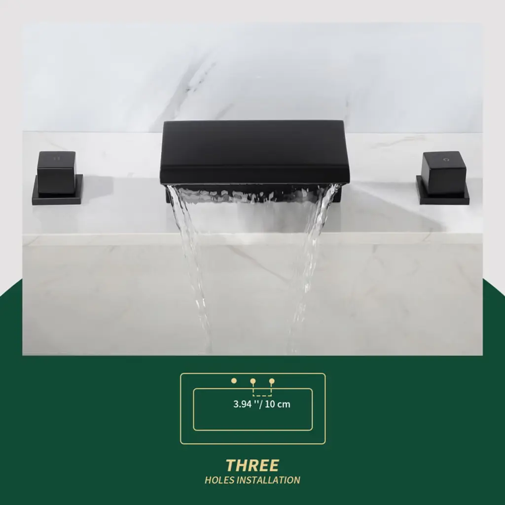 Cobbe 3-hole Bathroom Sink Faucet For Vanity 8-inch Widespread Faucet With Waterfall Spout Double Handle Matte Black