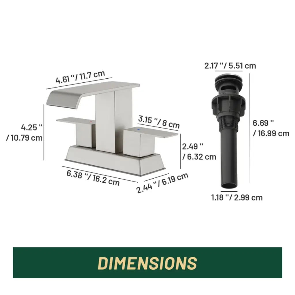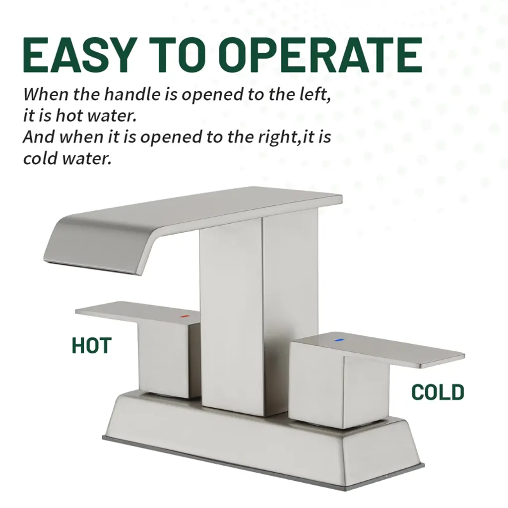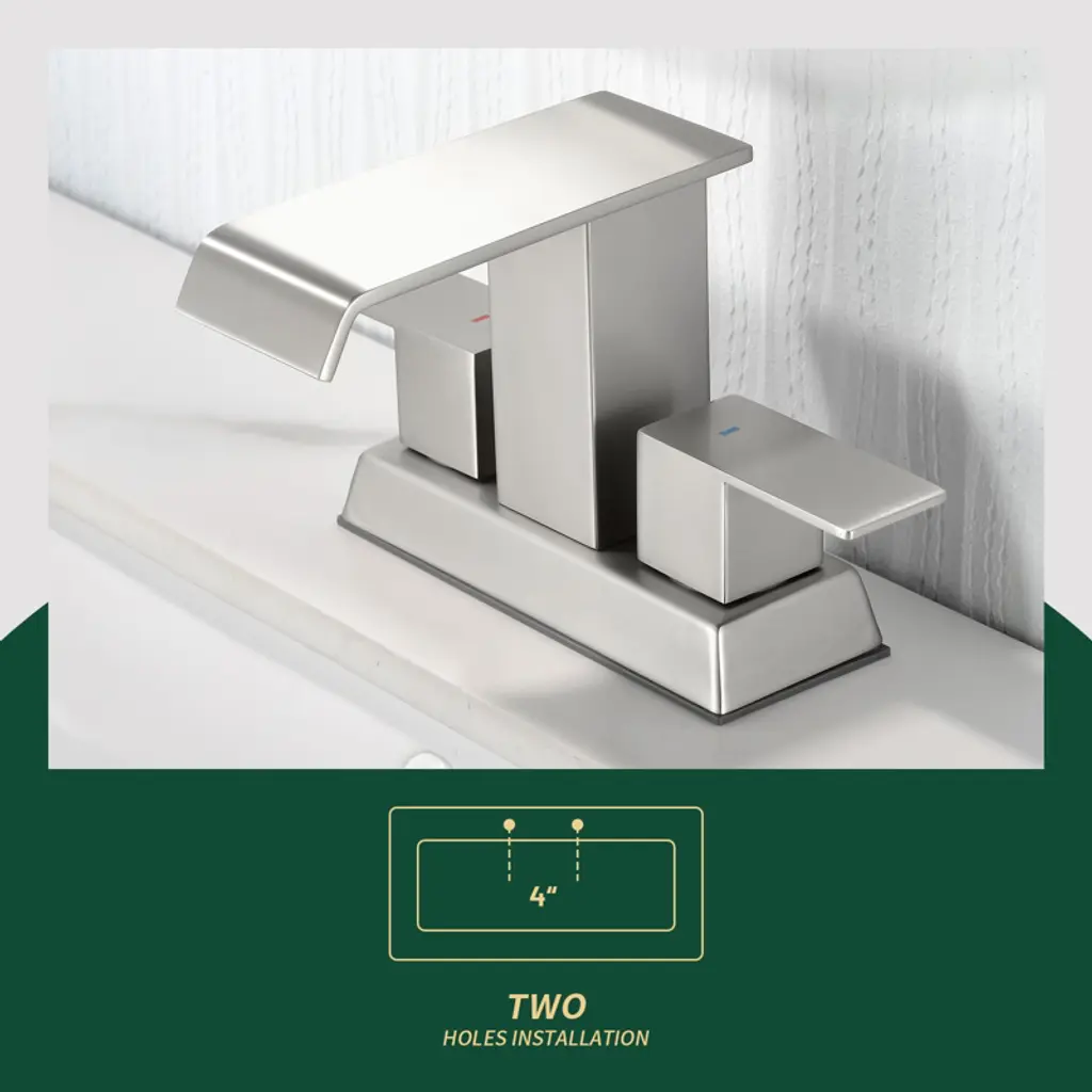 Cobbe 4-inch Centerset Faucet Two-handle Bathroom Sink Faucet With Waterfall Spout, Pop-up Drain And Supply Hoses Brushed Nickel