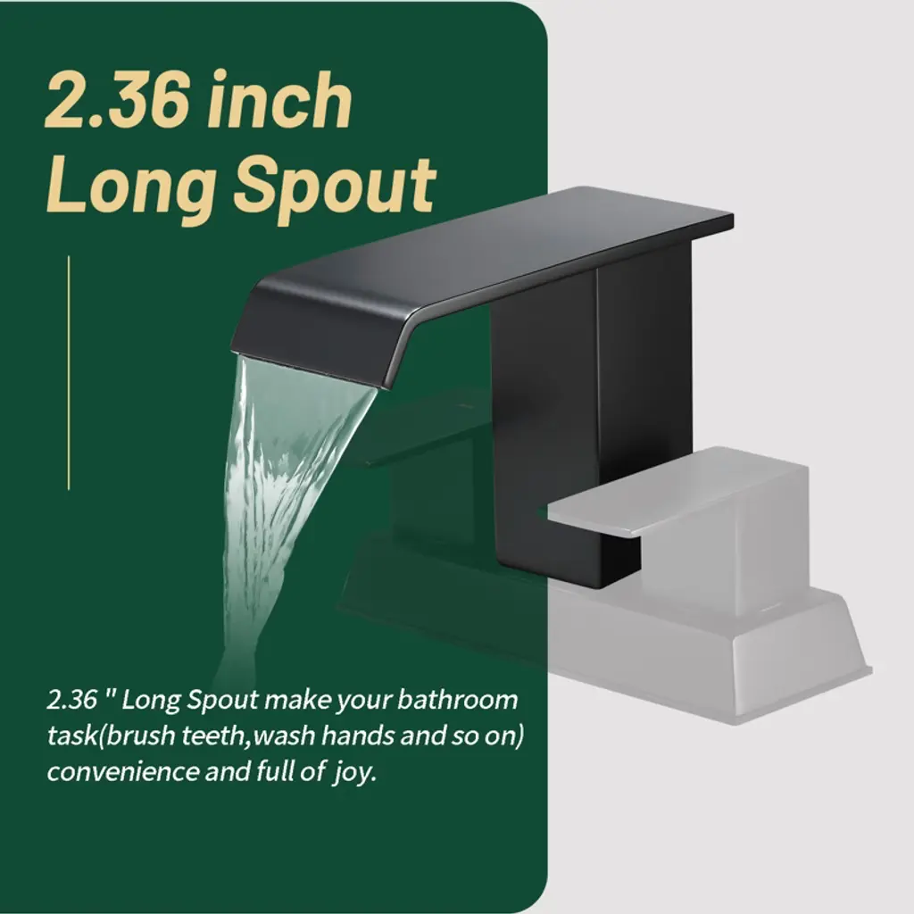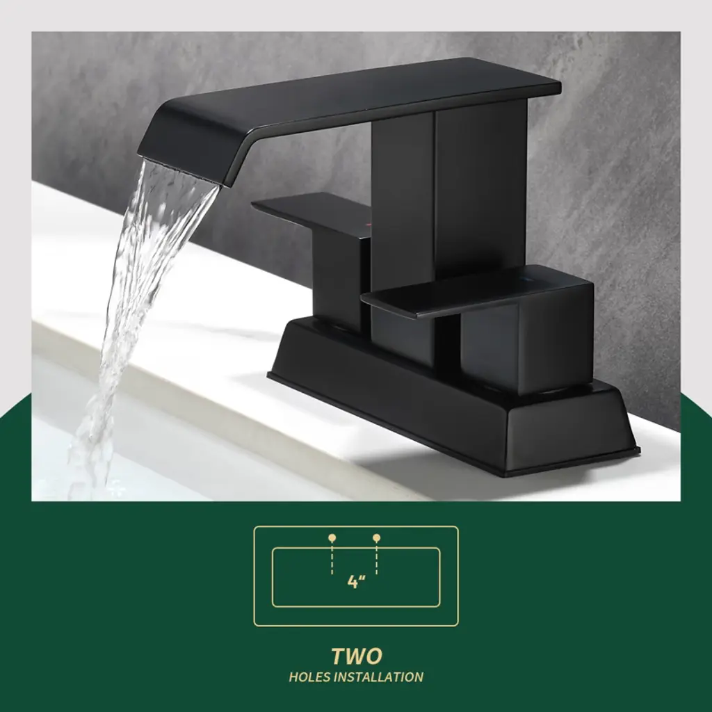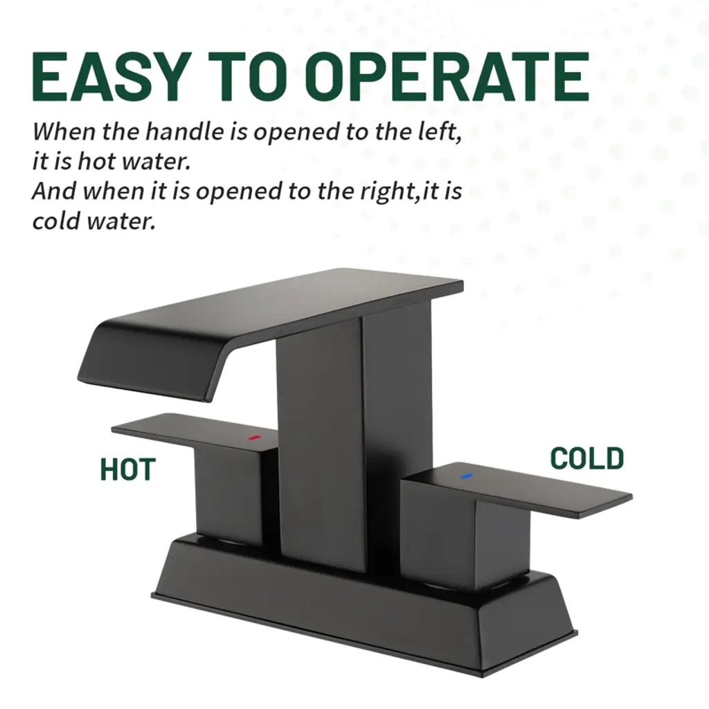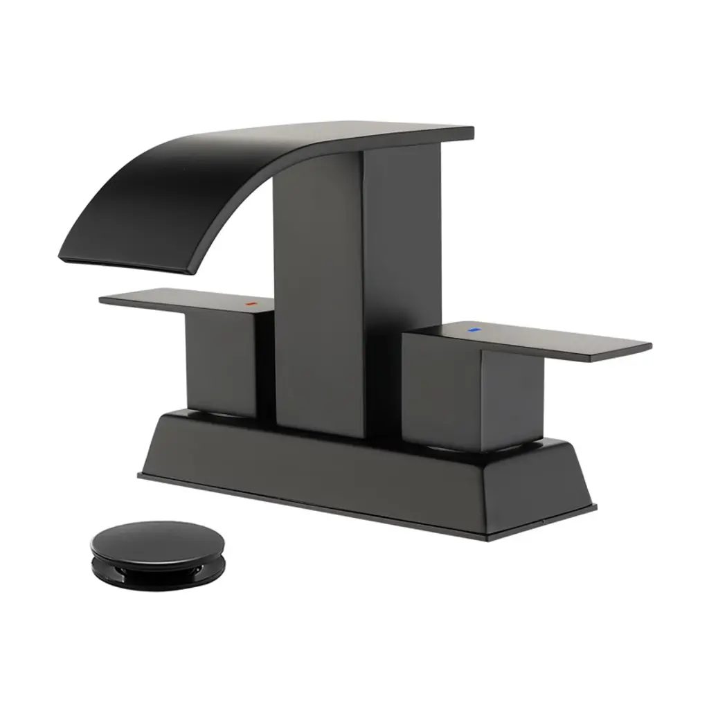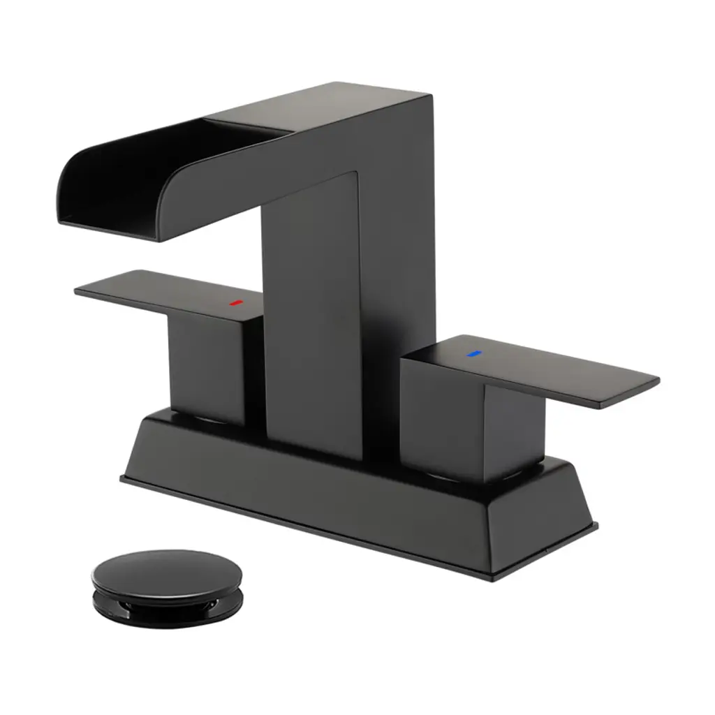 Cobbe 4-inch Centerset Faucet Two-handle Bathroom Sink Faucet With Waterfall Spout, Pop-up Drain And Supply Hoses Matte Black
