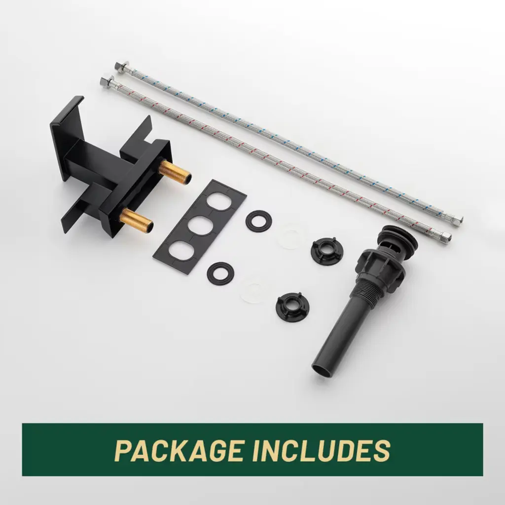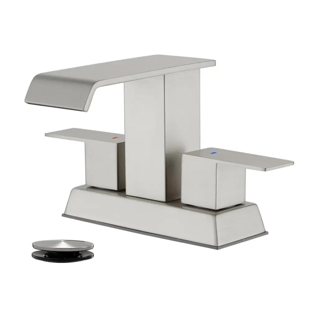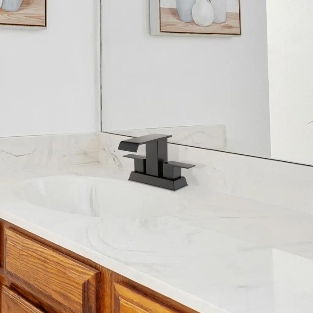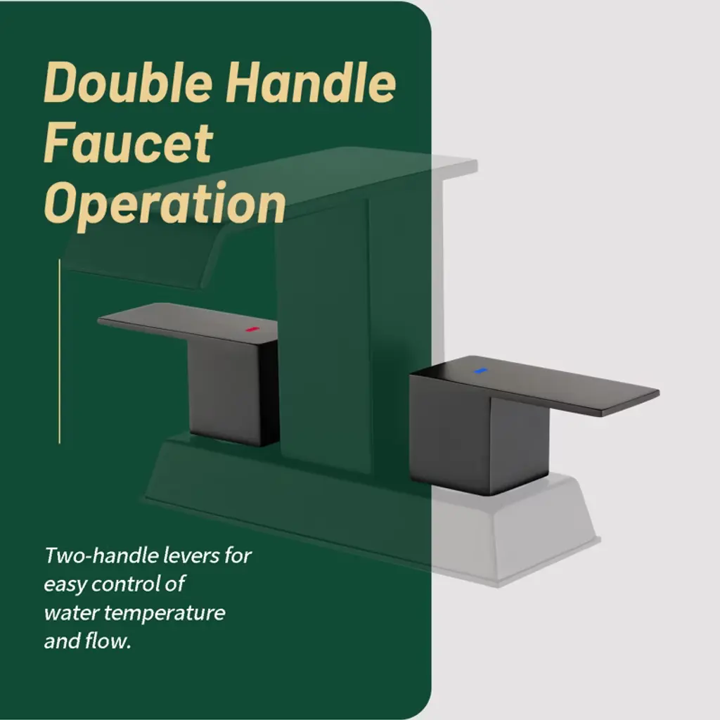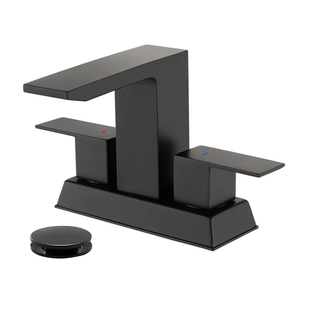 Cobbe 4-inch Centerset Faucet Two-handle Bathroom Sink Faucet With Waterfall Spout, Pop-up Drain And Supply Hoses Matte Black