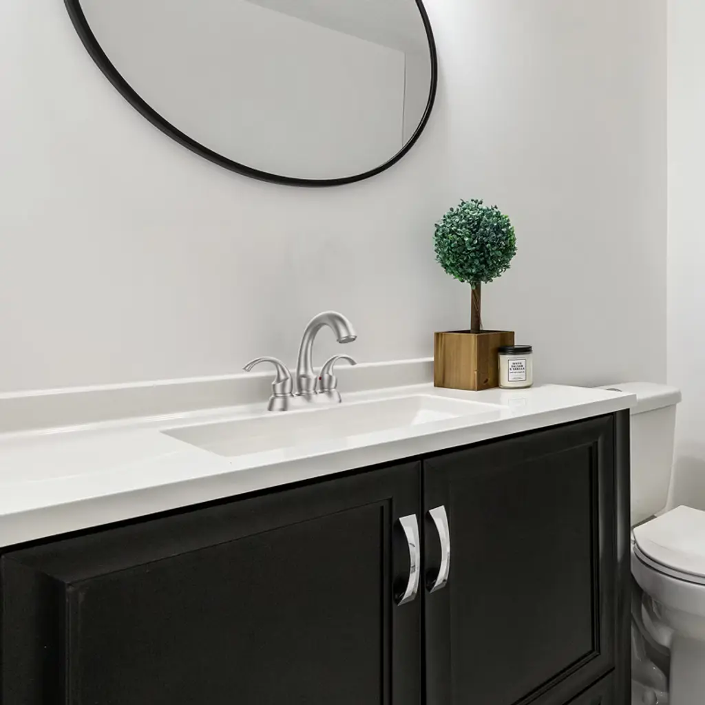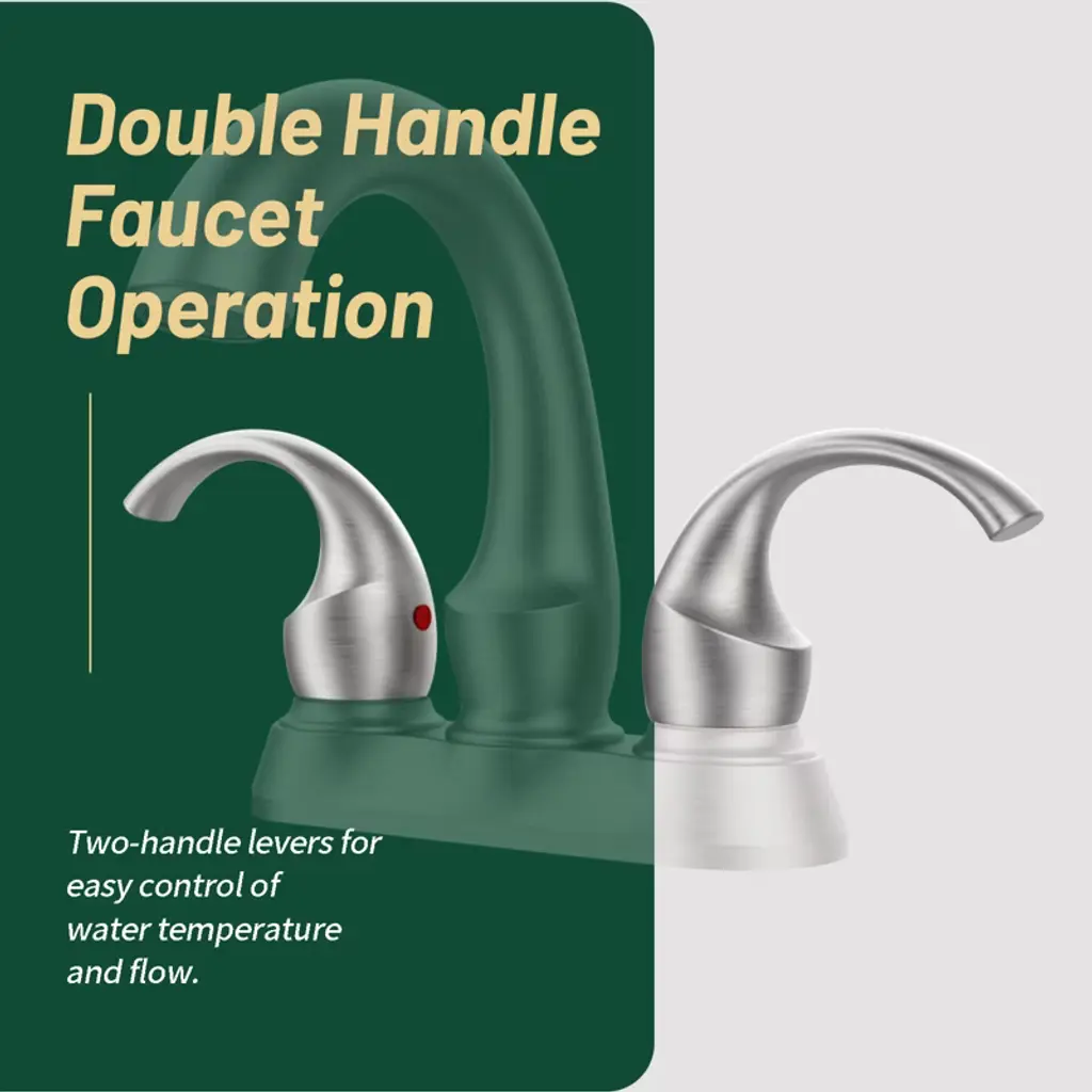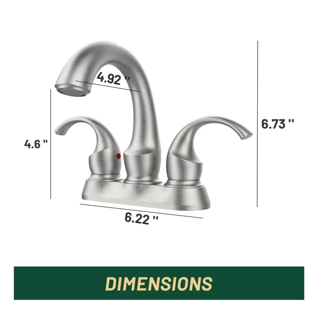 Our bathroom faucets are made of high quality materials that are durable and corrosion resistant. The professionally tested ceramic cartridge ensures that the faucet will not leak or drip and is durable. Perfect for new house renovation, old house renovation, high-end villas, high-end apartments, luxury hotels, elite and middle class. HIGH QUALITY MATERIALS & DESIGN : Exquisite bathroom sink faucet is rust and corrosion resistant to ensure durability. DUAL HANDLE: The dual handle handle bathroom faucet is designed for precise control of water volume and water temperature, and the advanced ceramic cartridge prevents leaks and drips. WATER CONSERVATION: Imported ABS aerator of 2-hole mount 4-inch center bathroom sink faucet enhances the dense foaming effect, the water flow is dense and soft without splashing, which improves water conservation efficiency. Suitable for rental houses, new apartments, bachelor pads, motels, travel trailers and homes. EASY INSTALLATION: The bathroom faucet is designed to help you save money by following the instructions and installing it in less than 30 minutes without a plumber. Everything you need is included in the box (including the pop-up drain and hose). 360° SWIVEL: The 360-degree swivel nozzle provides a full range of cleaning for your bathroom sink.