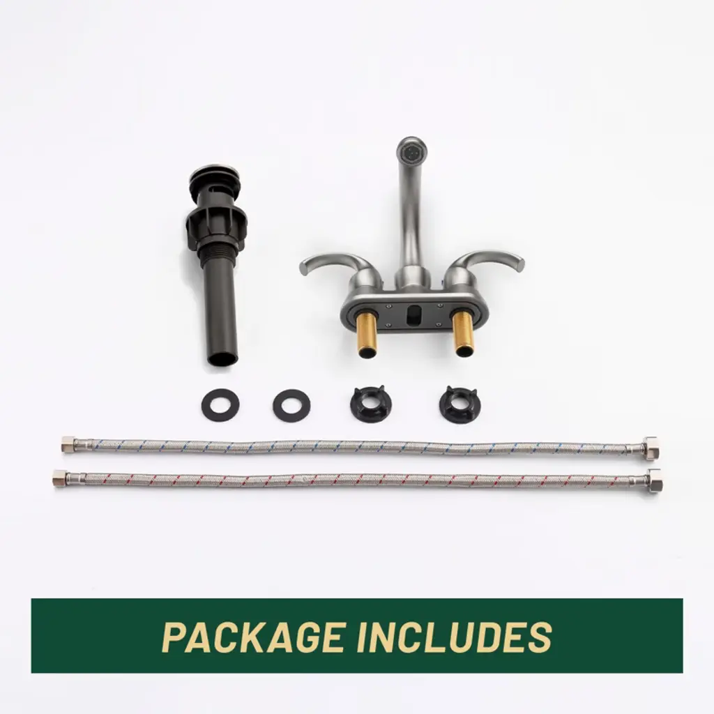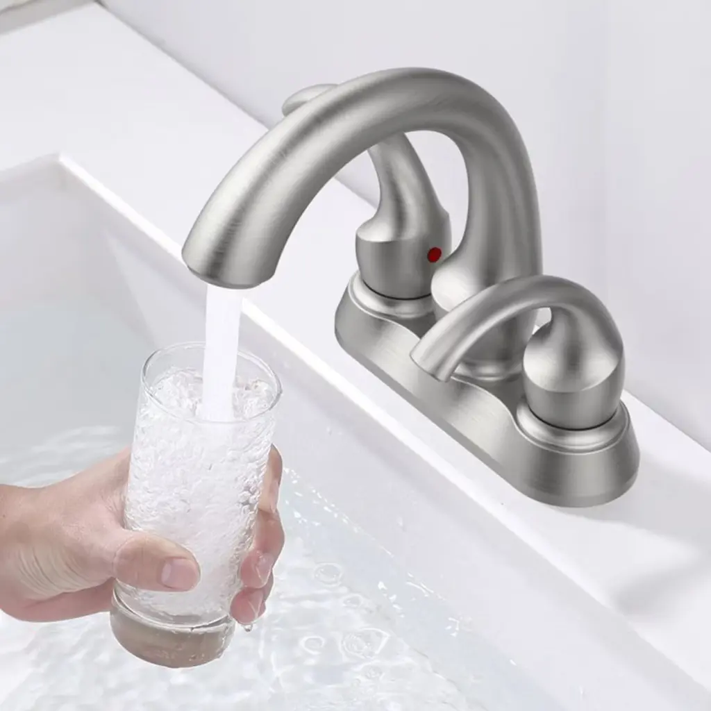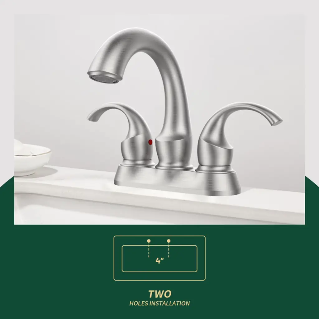 Cobbe Bathroom Faucet 2-handle Brushed Nickel With Aerator, Swan Style 4-inch Centerset Vanity Sink With Pop-up Drain And Supply Hoses
