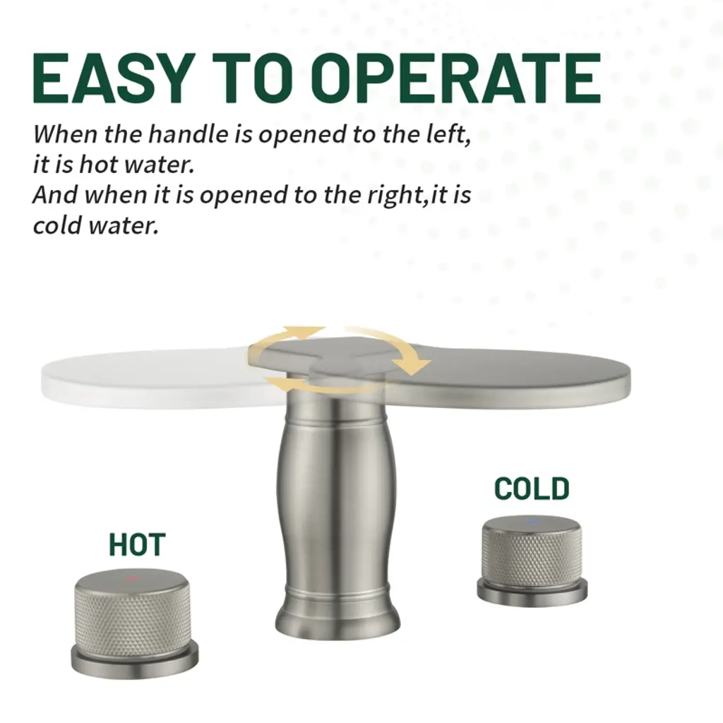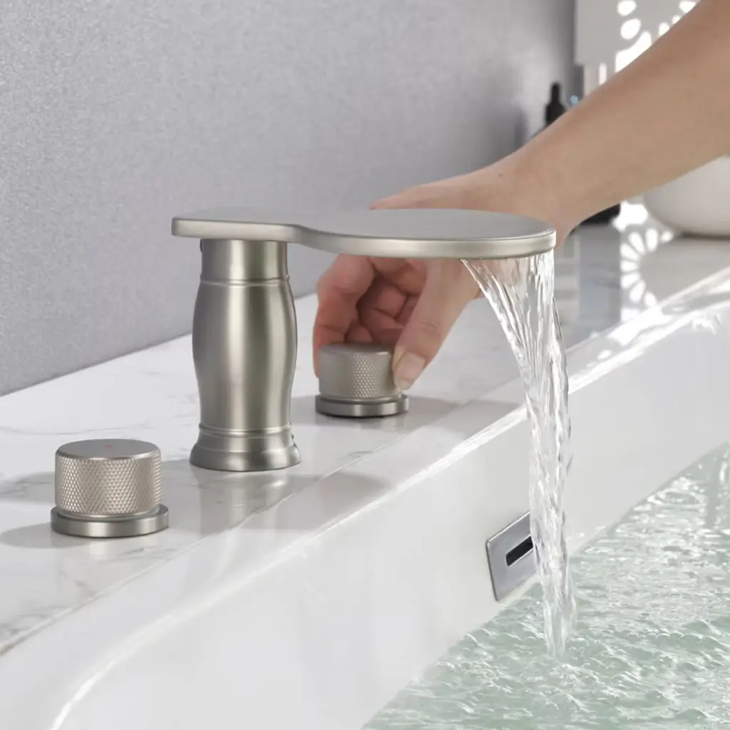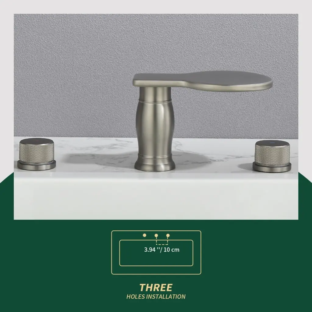 Cobbe Bathroom Faucet 3-hole Bathroom Sink Faucet With Waterfall Spout 2-handle Brushed Nickel