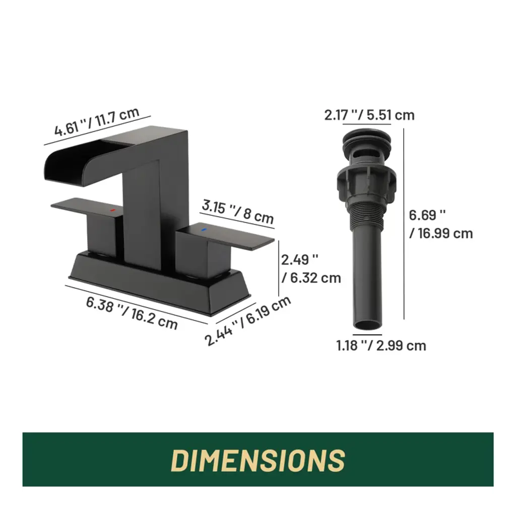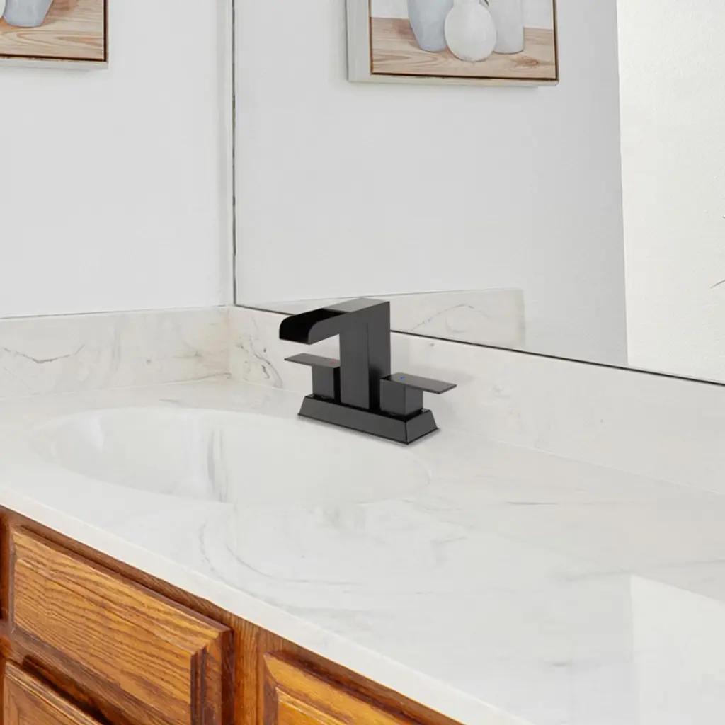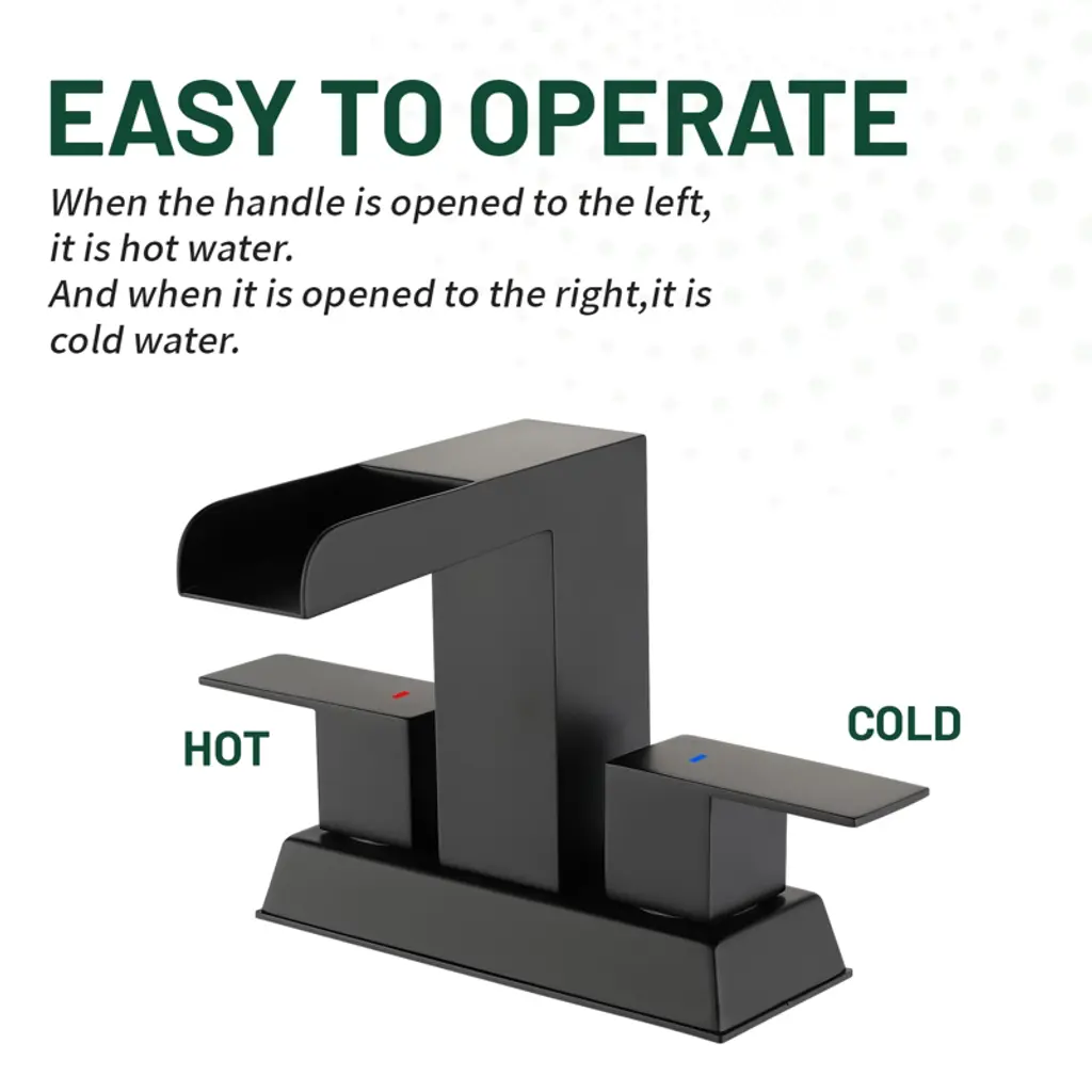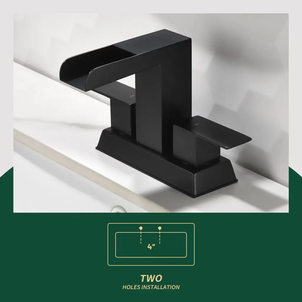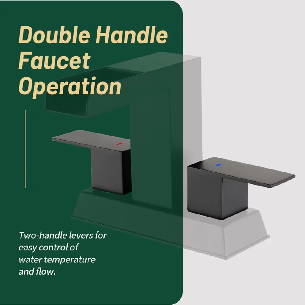 Cobbe Bathroom Faucet 4-inch Double Handle With Pop-up Drain And Supply Hoses Centerset Vanity Sink Faucets Matte Black