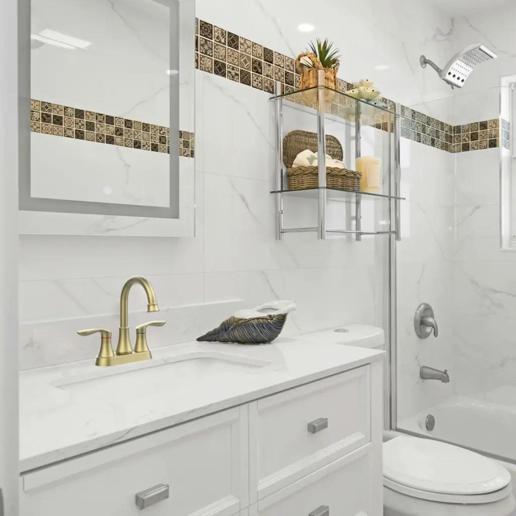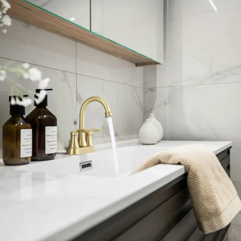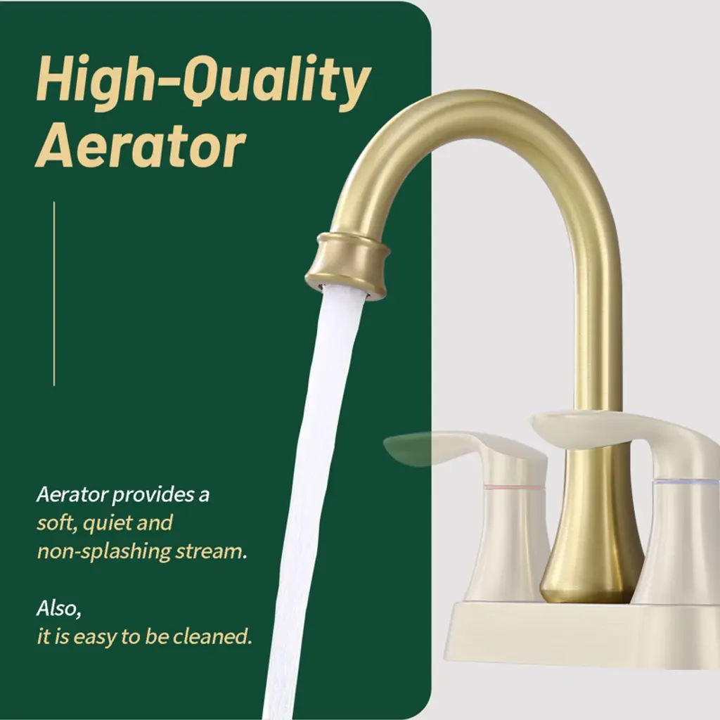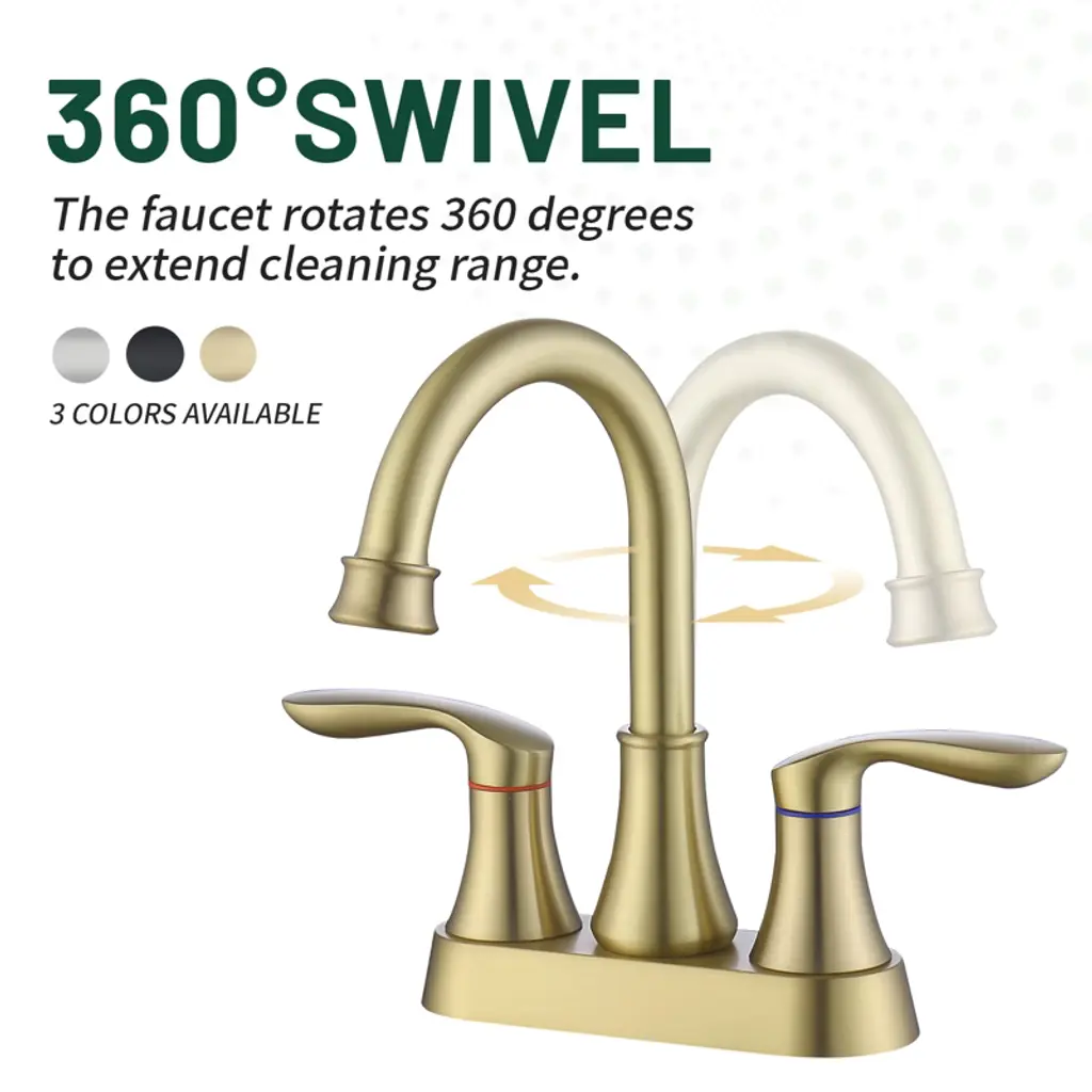 Our bathroom faucets are made of high quality materials that are durable and corrosion resistant. The professionally tested ceramic cartridge ensures that the faucet will not leak or drip and is durable. Perfect for new house renovation, old house renovation, high-end villas, high-end apartments, luxury hotels, elite and middle class. HIGH QUALITY MATERIALS & DESIGN : Exquisite bathroom sink faucet is rust and corrosion resistant to ensure durability. Dual Handle Metal Handle; The dual handle handle bathroom faucet is designed for precise control of water volume and water temperature, and the advanced ceramic cartridge prevents leaks and drips. WATER CONSERVATION: Imported ABS aerator of 2-hole mount 4-inch center bathroom sink faucet enhances the dense foaming effect, the water flow is dense and soft without splashing, which improves water conservation efficiency. Suitable for rental houses, new apartments, bachelor pads, motels, travel trailers and homes. EASY INSTALLATION: The bathroom faucet is designed to help you save money by following the instructions and installing it in less than 30 minutes without a plumber. Everything you need is included in the box (including the pop-up drain and stainless steel braided inlet hose). 360° Swivel: The 360-degree swivel nozzle provides a full range of cleaning for your bathroom sink.