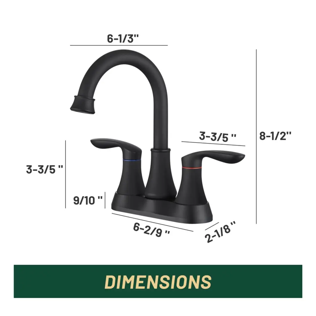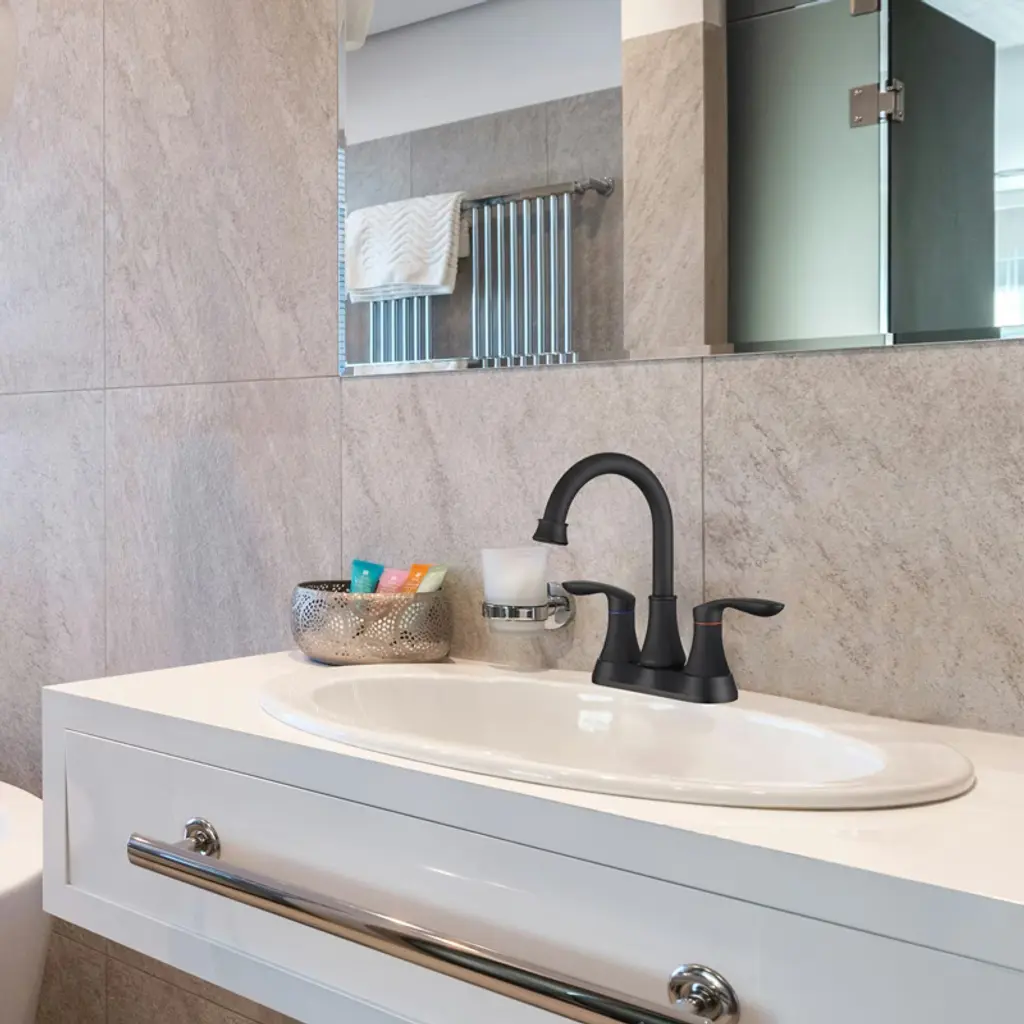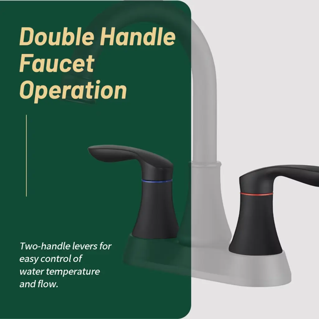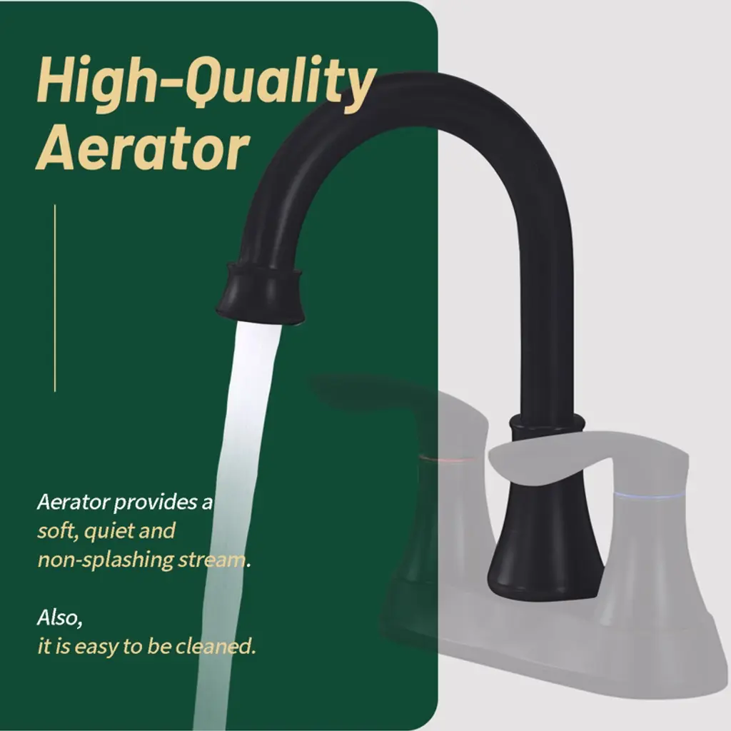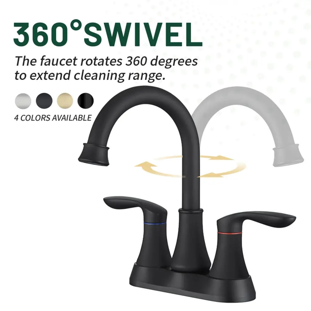 Our bathroom faucets are made of high quality materials that are durable and corrosion resistant. The professionally tested ceramic cartridge ensures that the faucet will not leak or drip and is durable. Perfect for new house renovation, old house renovation, high-end villas, high-end apartments, luxury hotels, elite and middle class. HIGH QUALITY MATERIALS & DESIGN : Exquisite bathroom sink faucet is rust and corrosion resistant to ensure durability. Dual Handle Metal Handle; The dual handle handle bathroom faucet is designed for precise control of water volume and water temperature, and the advanced ceramic cartridge prevents leaks and drips. WATER CONSERVATION: Imported ABS aerator of 2-hole mount 4-inch center bathroom sink faucet enhances the dense foaming effect, the water flow is dense and soft without splashing, which improves water conservation efficiency. Suitable for rental houses, new apartments, bachelor pads, motels, travel trailers and homes. EASY INSTALLATION: The bathroom faucet is designed to help you save money by following the instructions and installing it in less than 30 minutes without a plumber. Everything you need is included in the box (including the pop-up drain and stainless steel braided inlet hose). 360° Swivel: The 360-degree swivel nozzle provides a full range of cleaning for your bathroom sink.