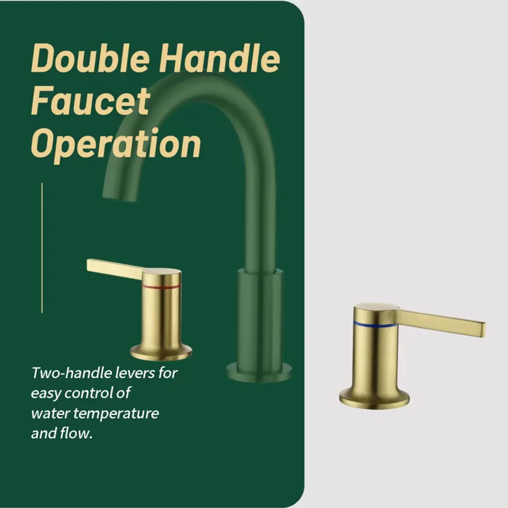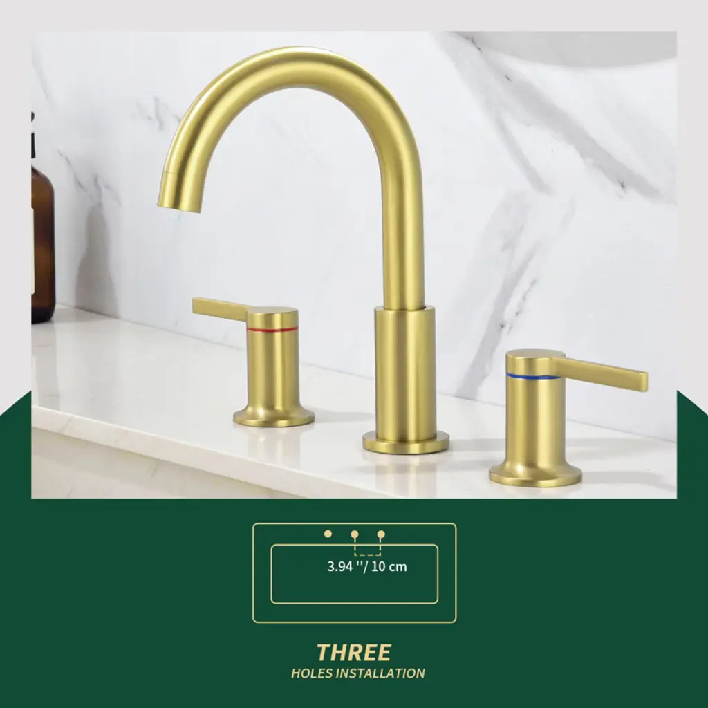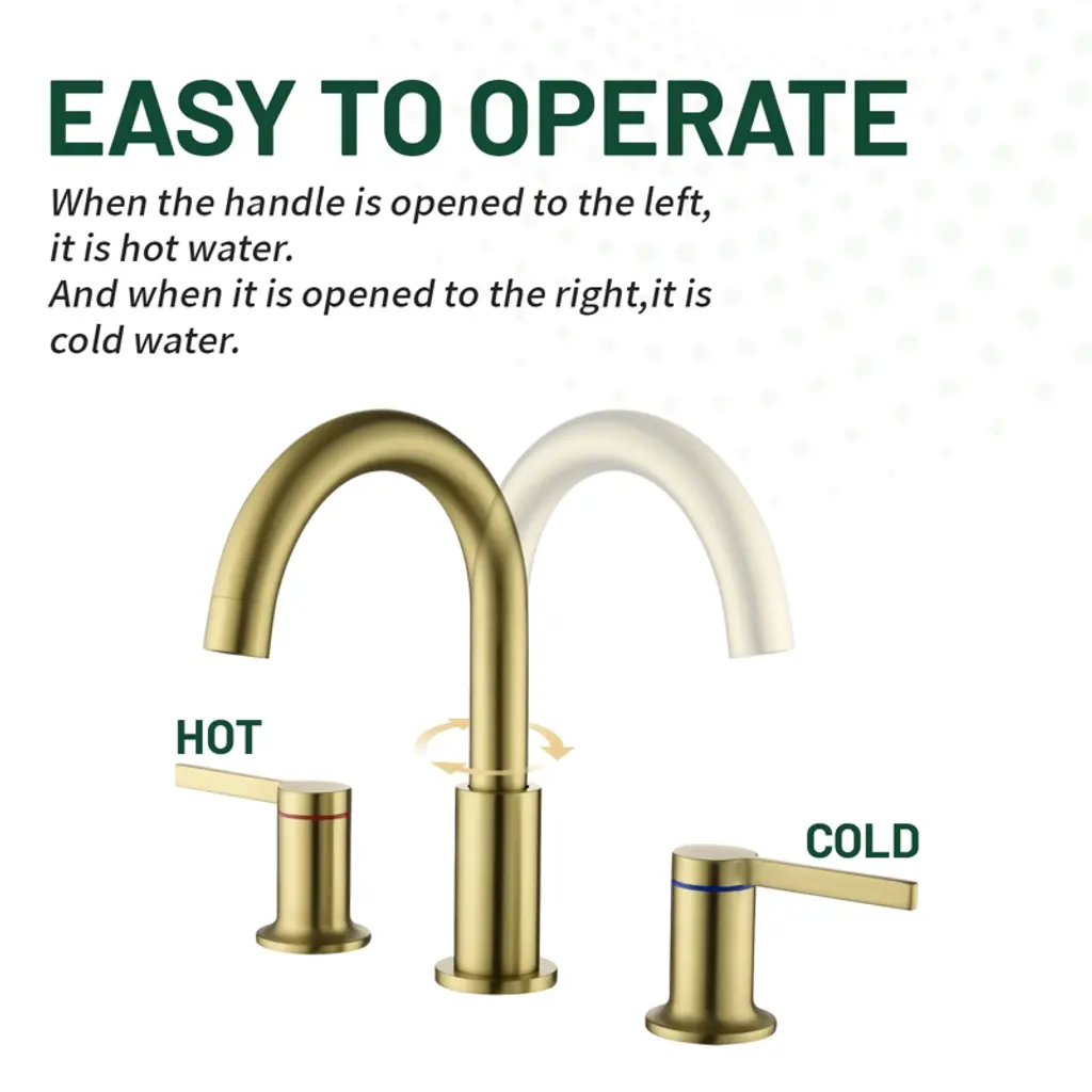 Cobbe Bathroom Sink Faucet 3-hole 8-inch Double Handle Widespread Faucet With 360 Degree Swivel Spout Brushed Gold