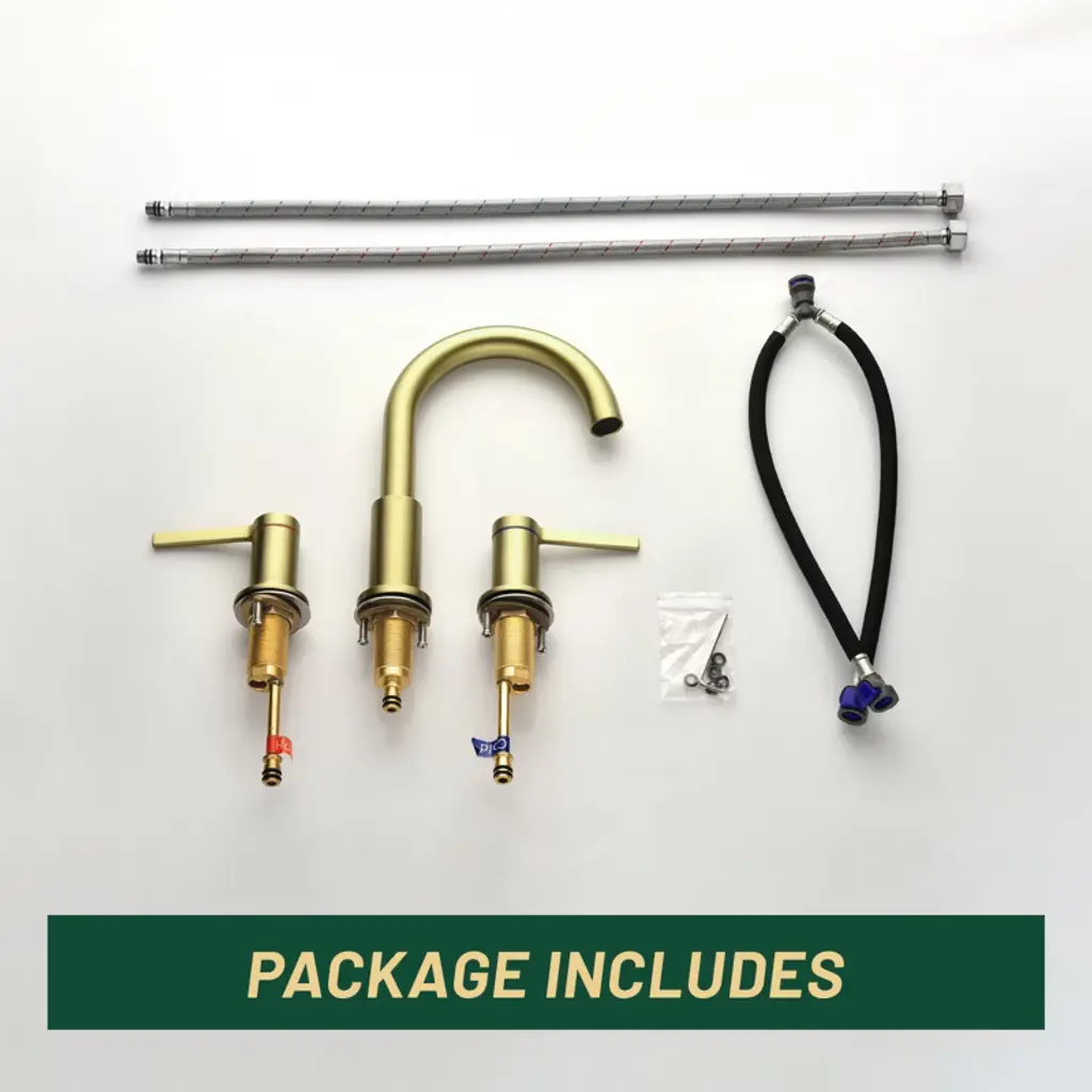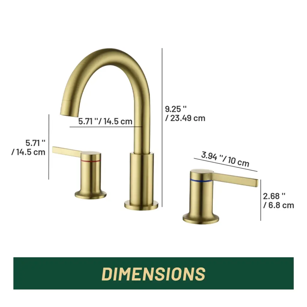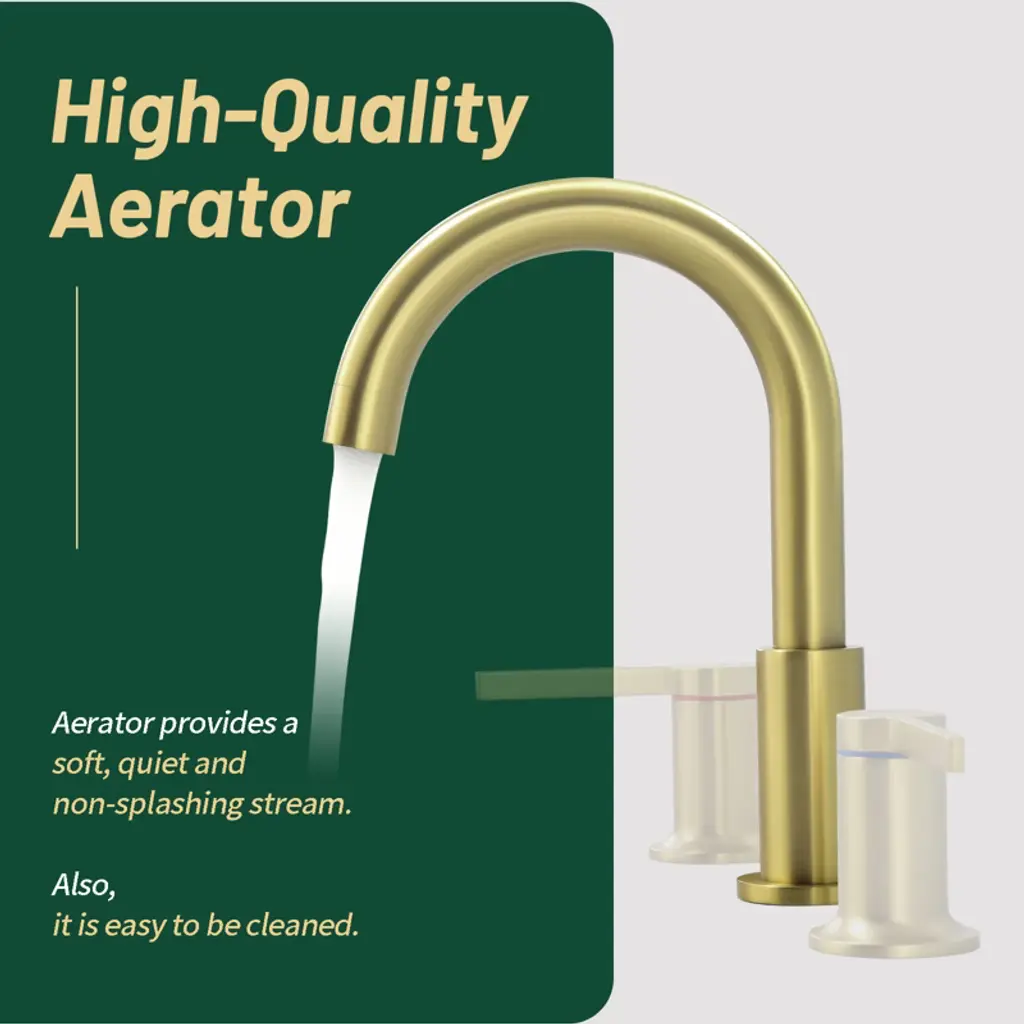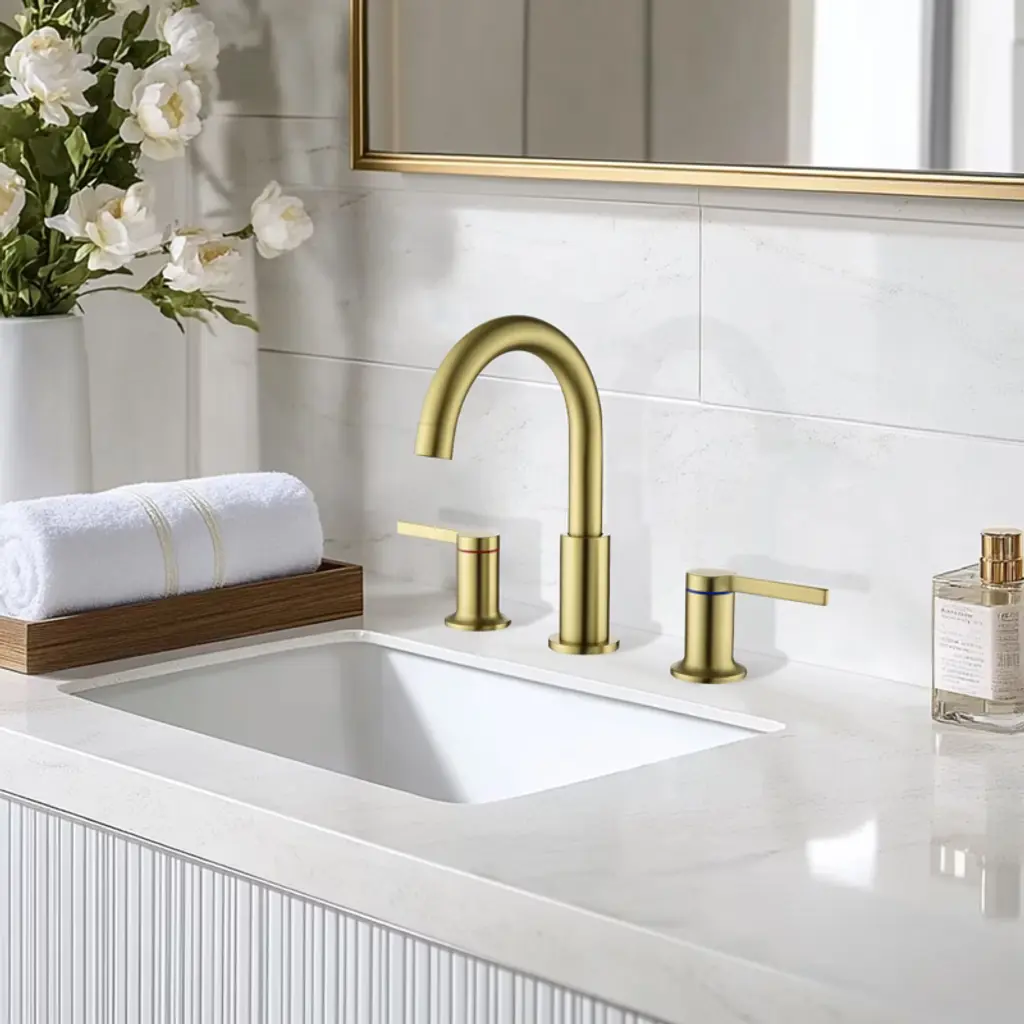 Cobbe Bathroom Sink Faucet 3-hole 8-inch Double Handle Widespread Faucet With 360 Degree Swivel Spout Brushed Gold