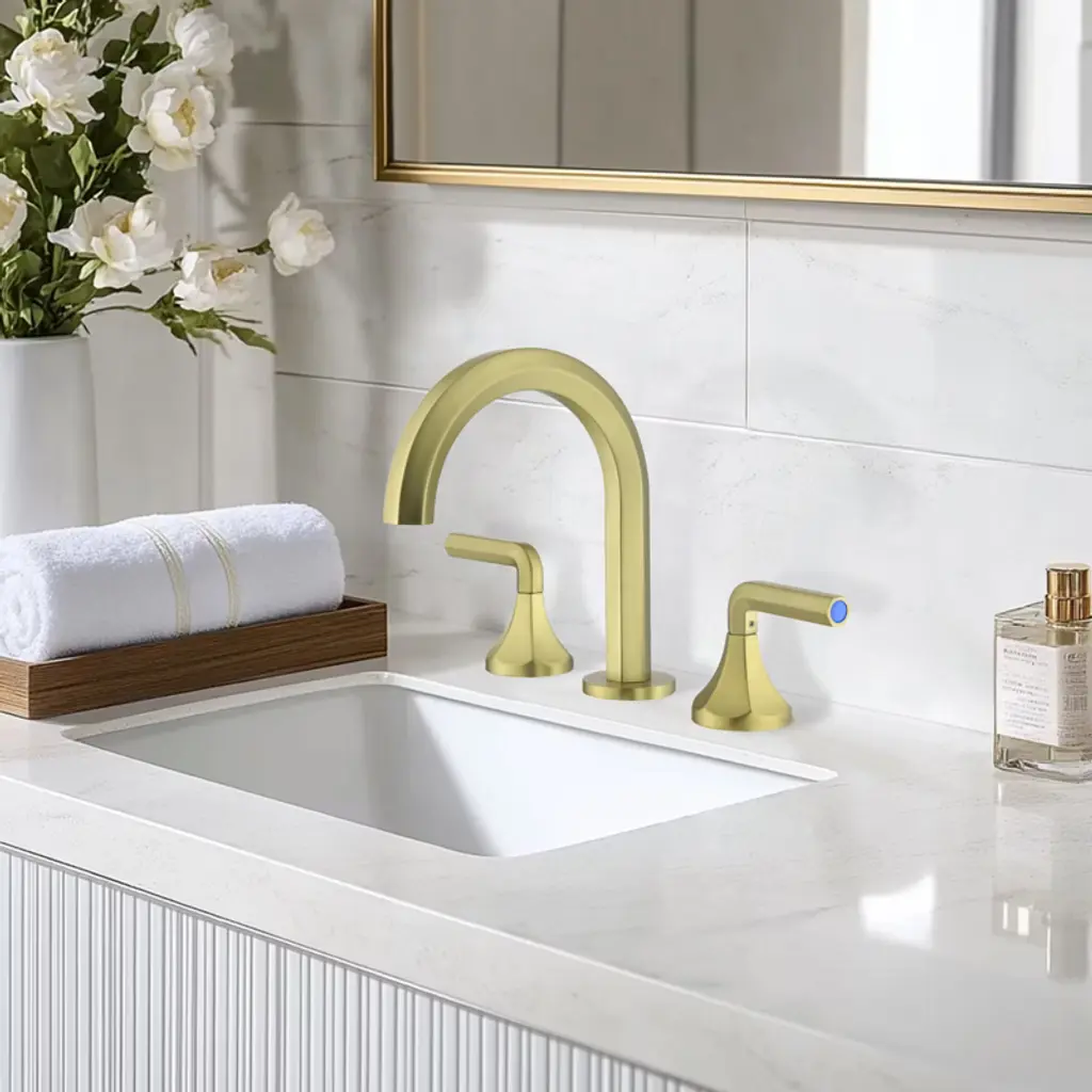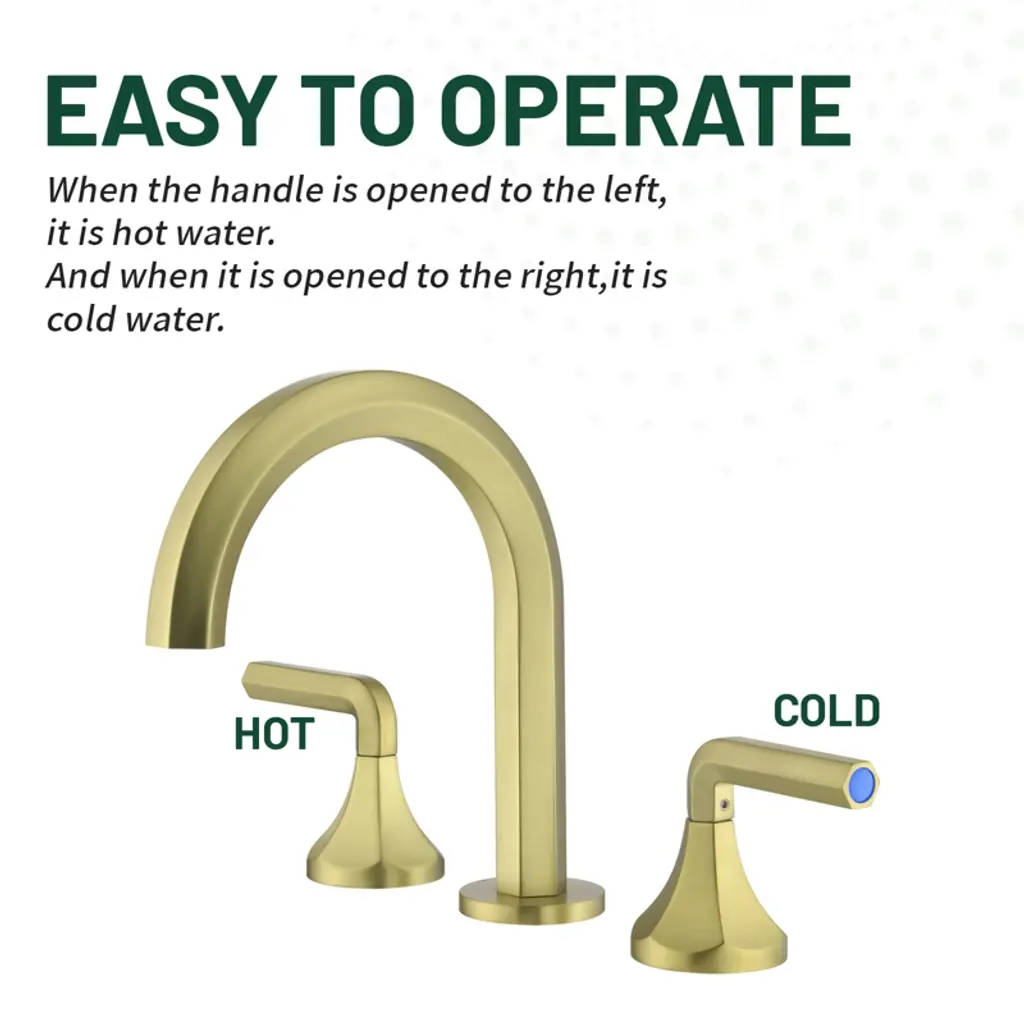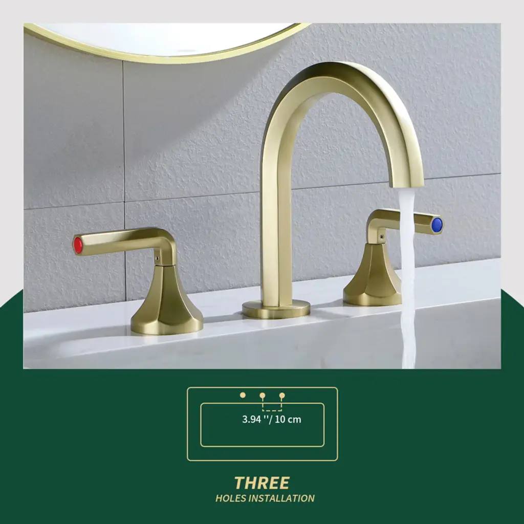 Cobbe Bathroom Sink Faucet For Vanity 3-hole Installation Double Handle 8-inch Widespread Brushed Gold