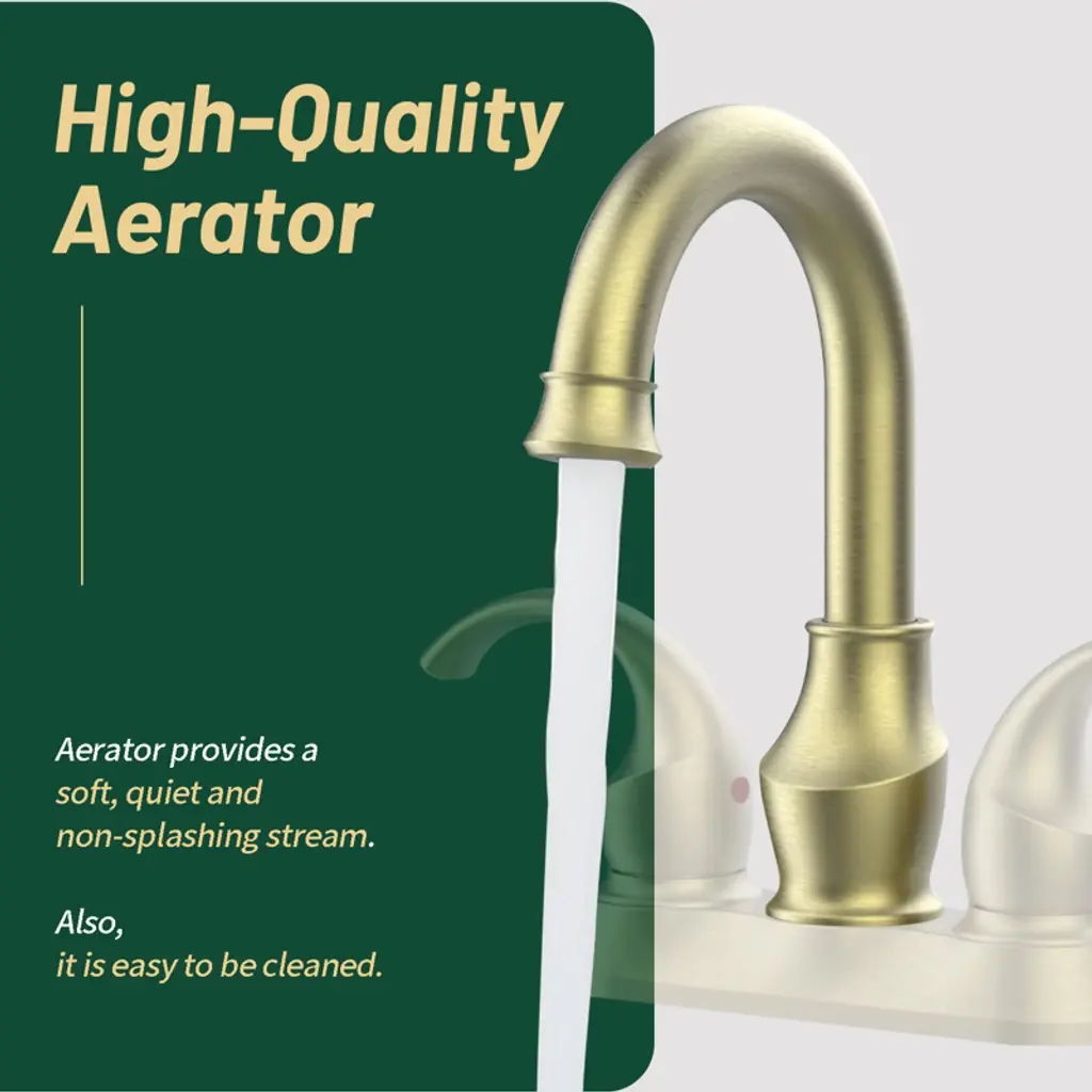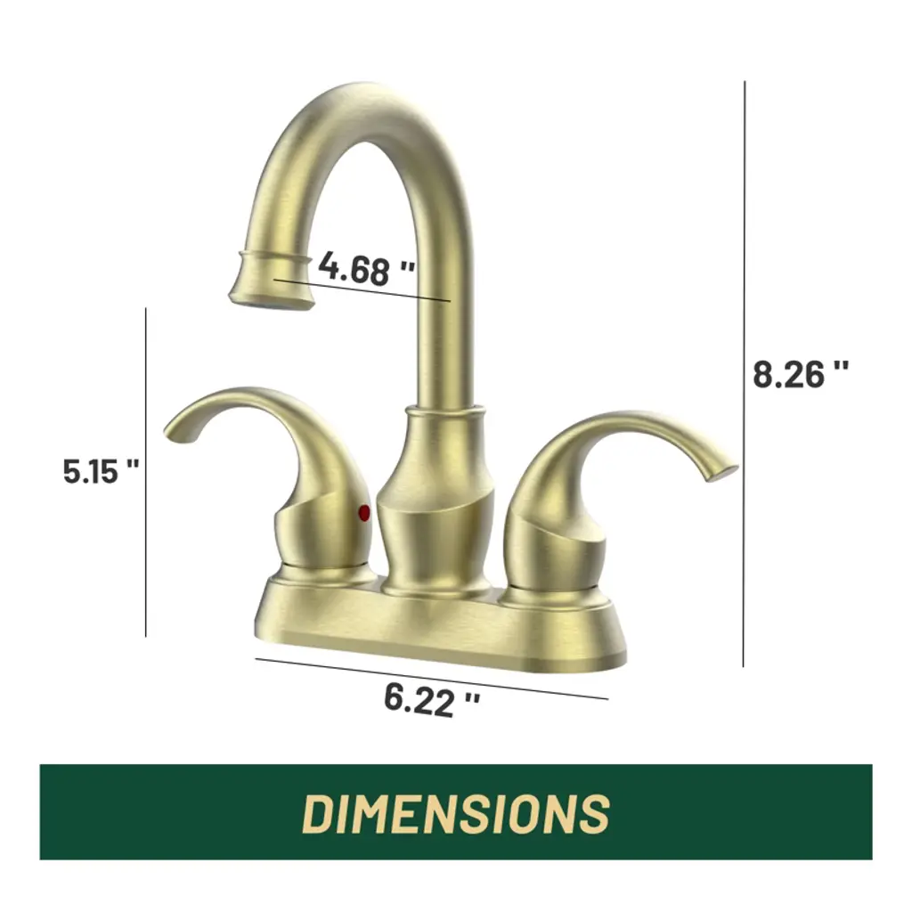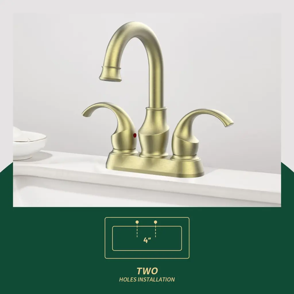 Cobbe Brushed Gold Bathroom Faucet 2-handle With 360 Degree Rotating Spout, 4-inch Centerset Vanity Sink With Pop-up Drain And Supply Hoses