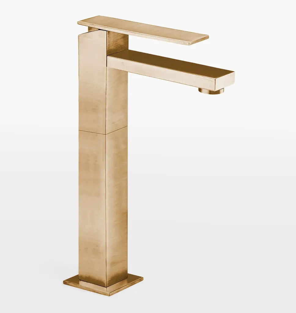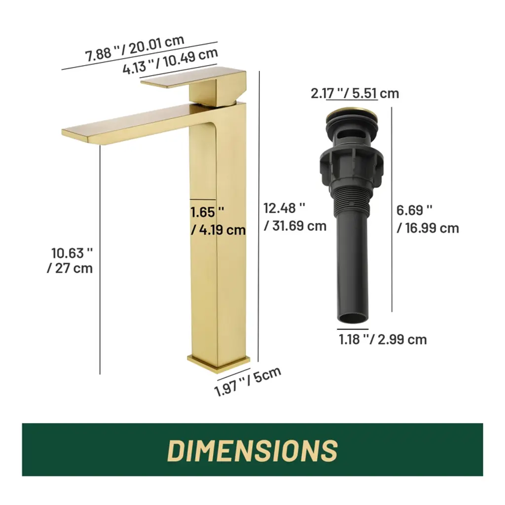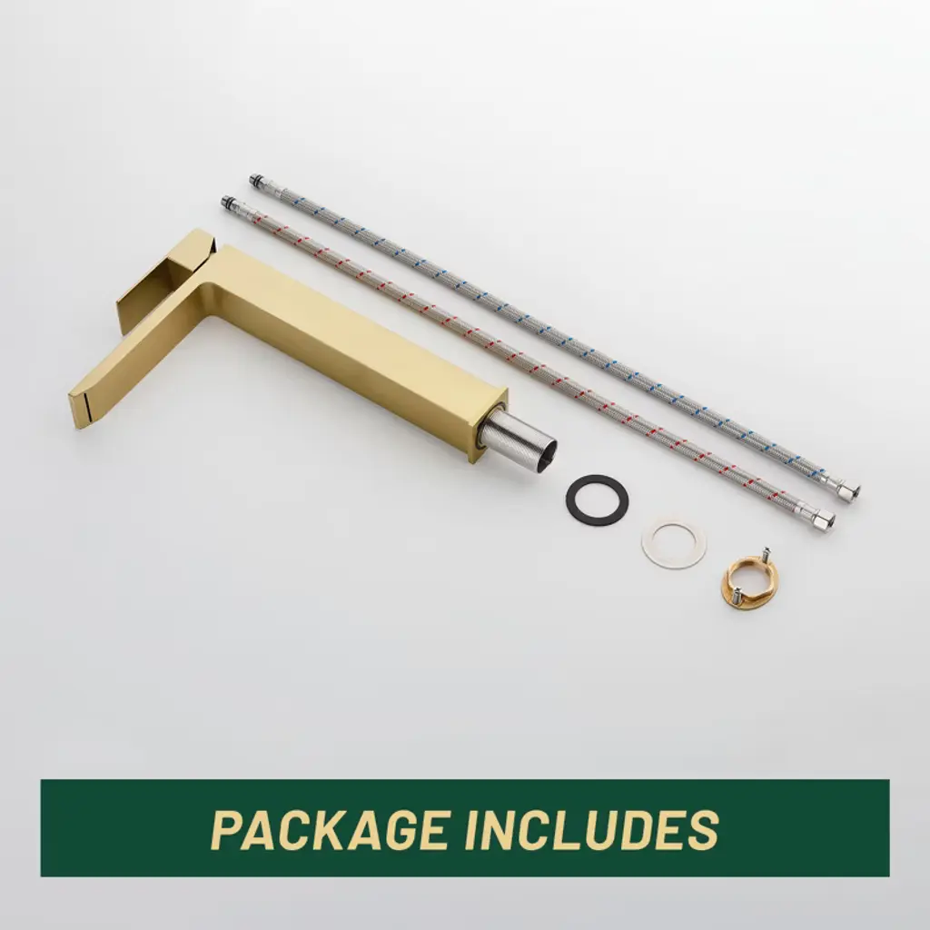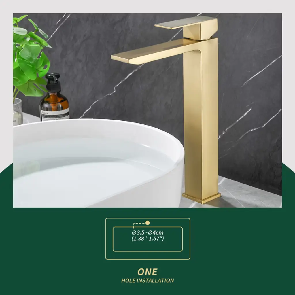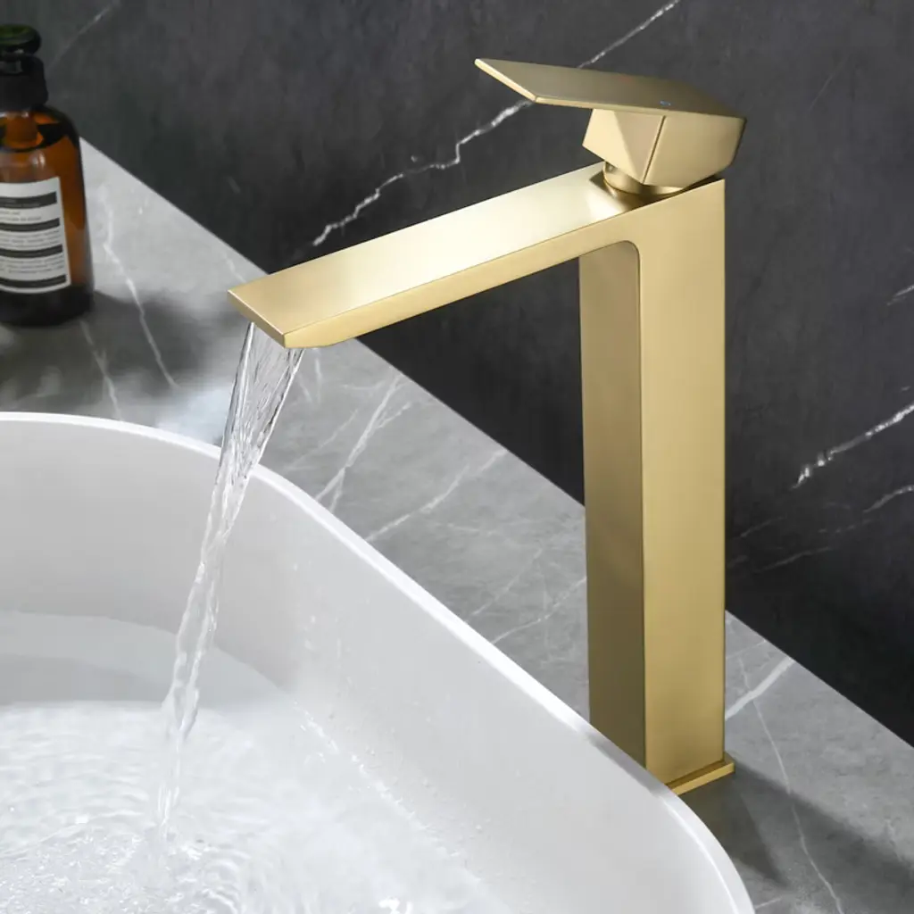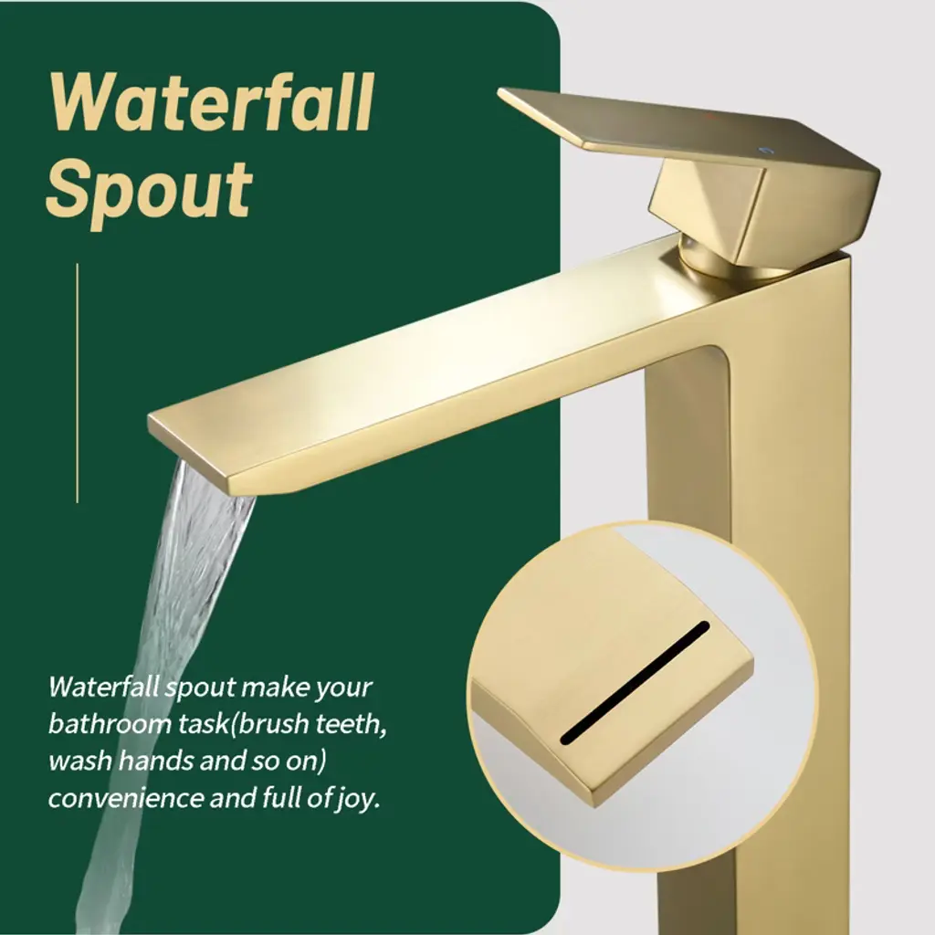 Cobbe Brushed Gold Bathroom Vessel Sink Faucet Waterfall Single-hole Installation Faucet Single Handle With Pop-up Drain