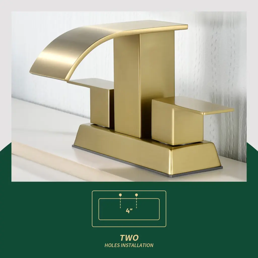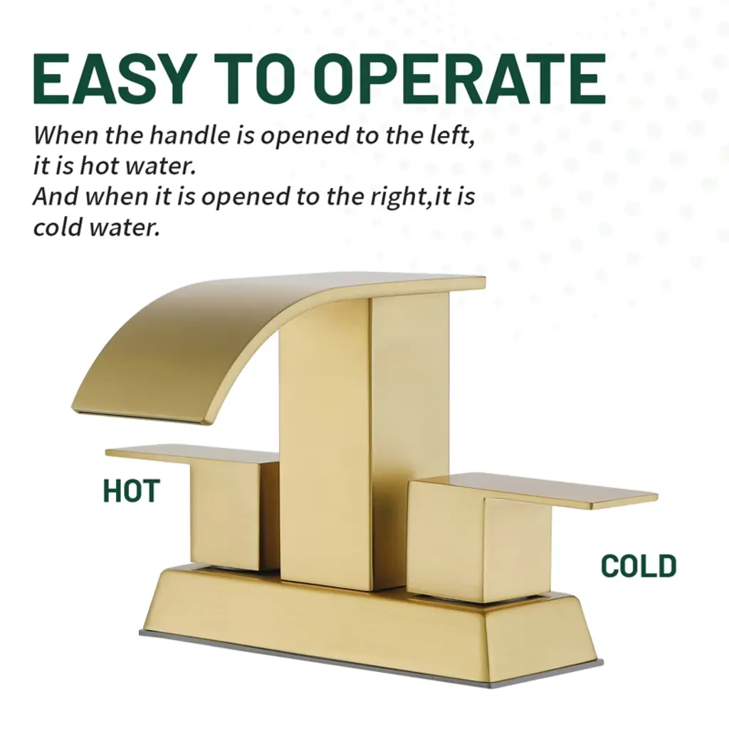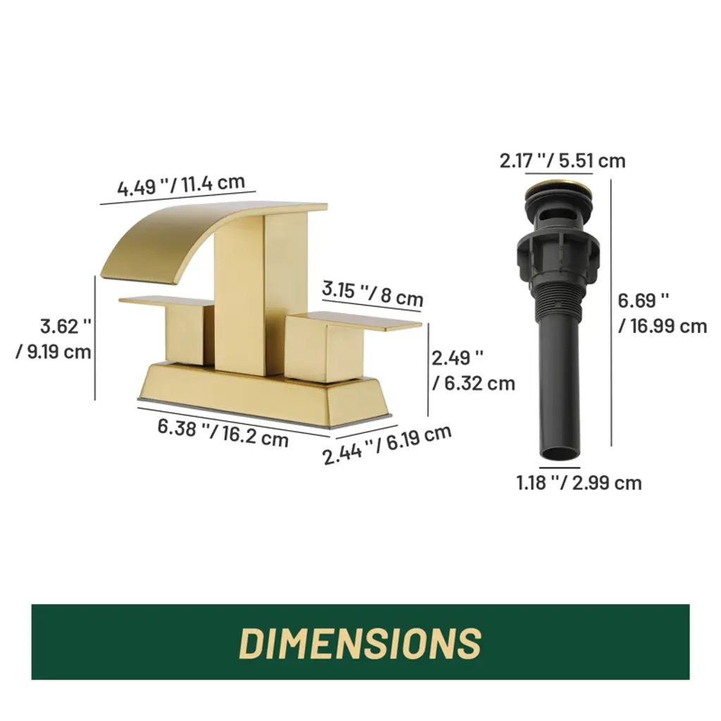 Cobbe Centerset Bathroom Sink Faucet 4-inch Two-handle With Pop-up Drain And Supply Hoses Brushed Gold