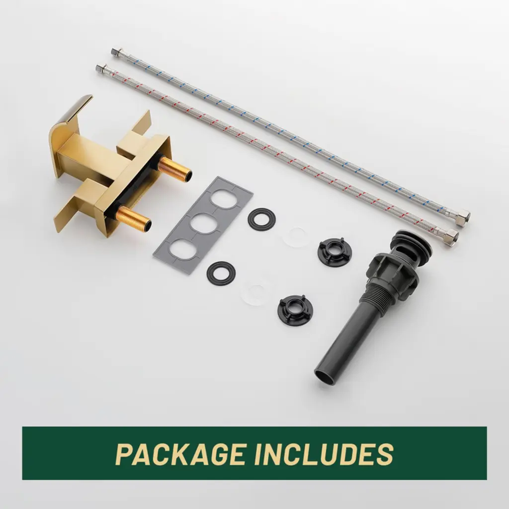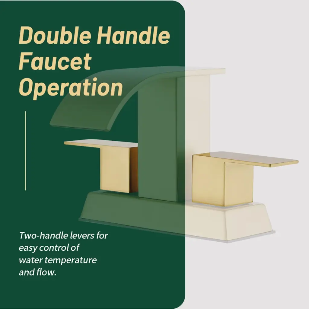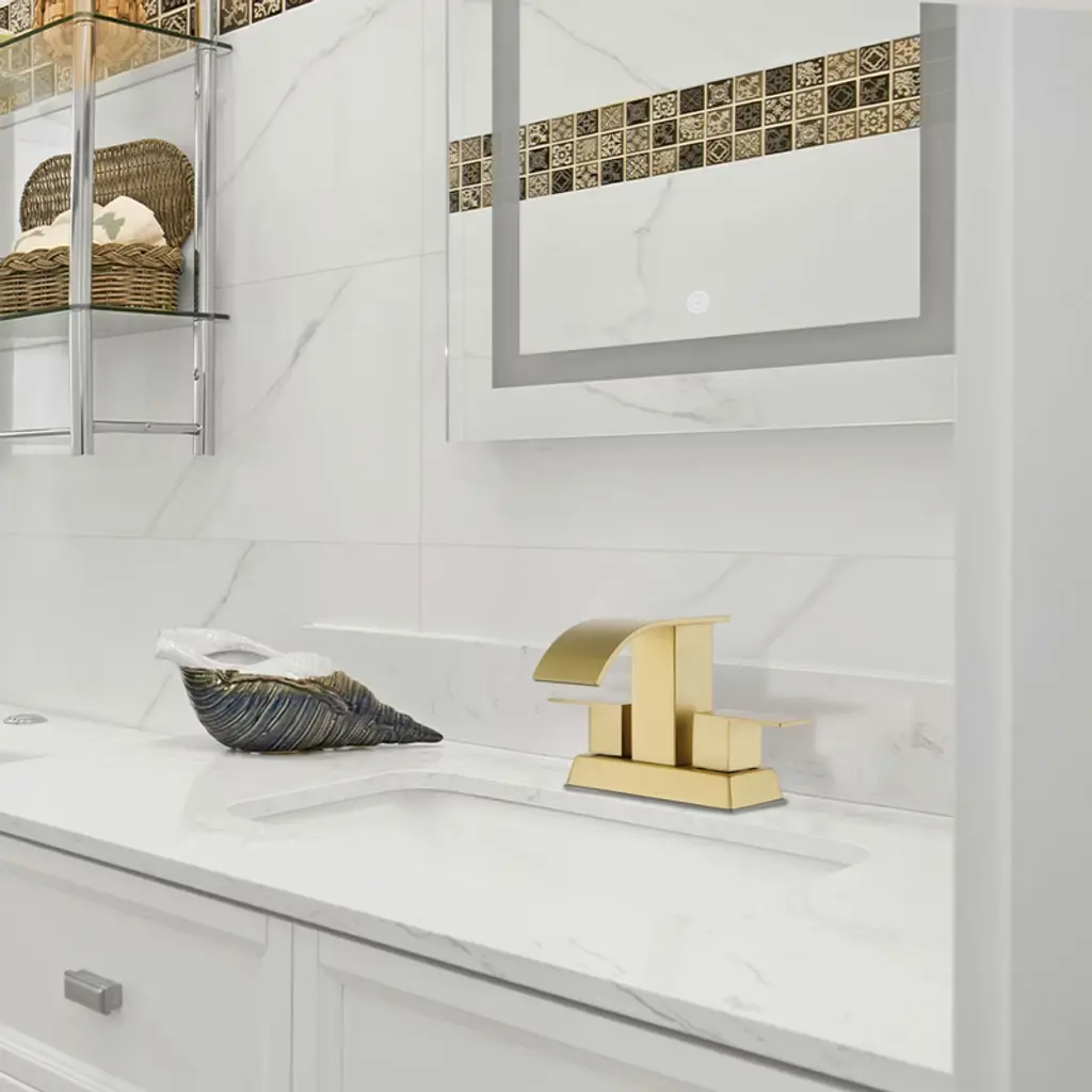 Cobbe Centerset Bathroom Sink Faucet 4-inch Two-handle With Pop-up Drain And Supply Hoses Brushed Gold