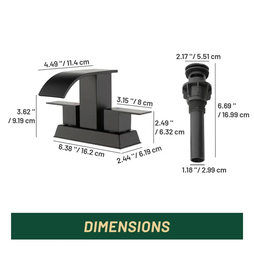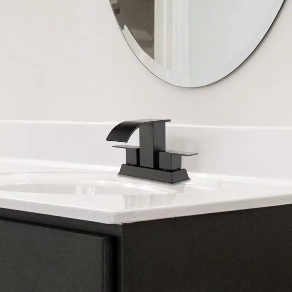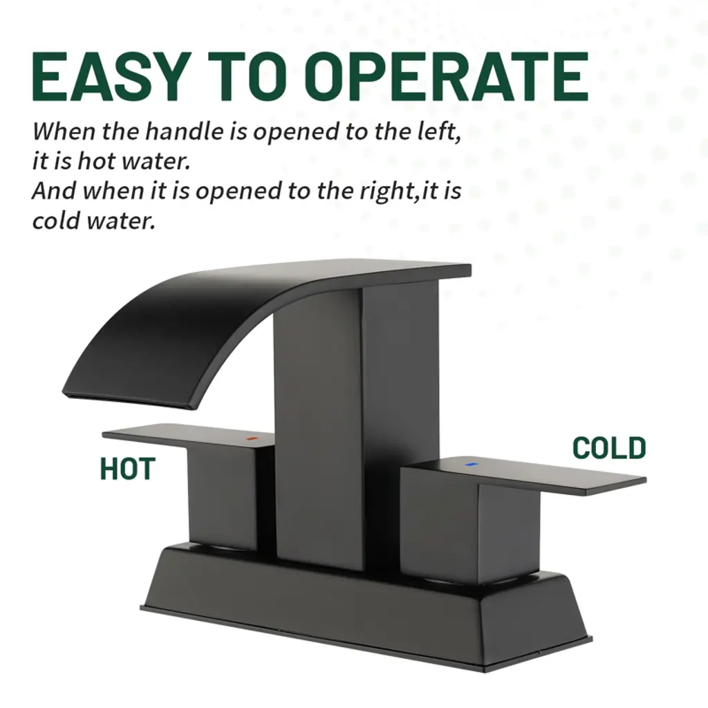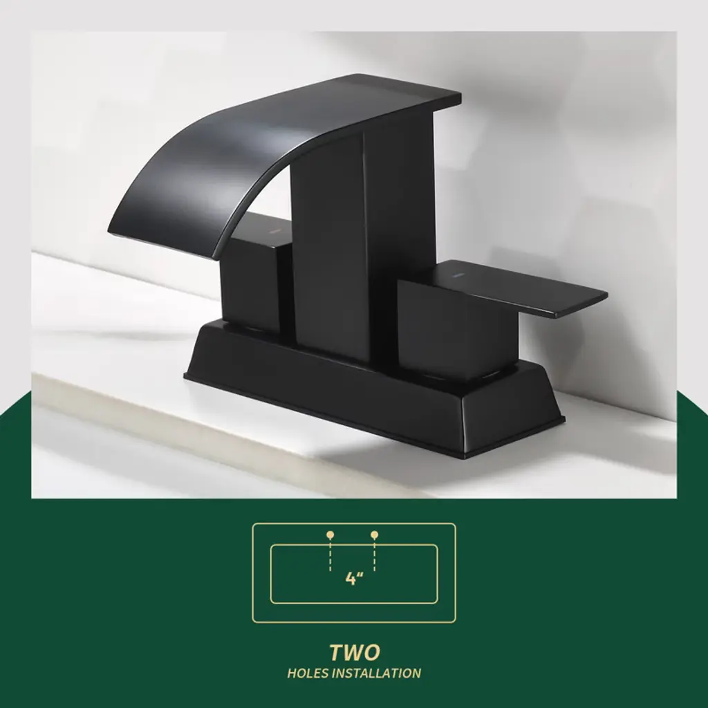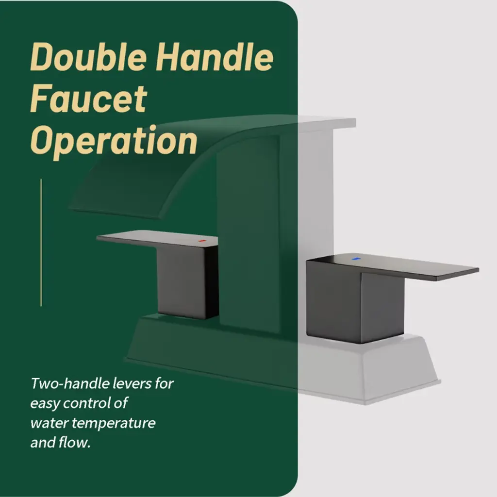 Cobbe Centerset Bathroom Sink Faucet 4-inch Two-handle With Pop-up Drain And Supply Hoses Matte Black