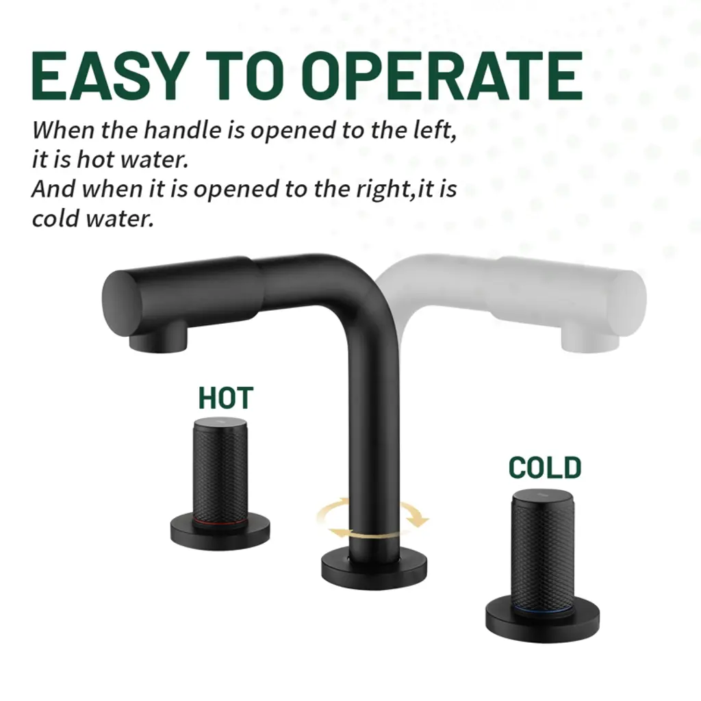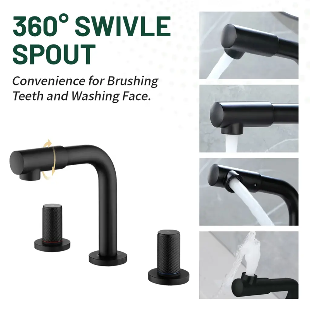 Cobbe Double Handle Bathroom Sink Faucet Spout 360 Degree Swivel 3-hole 8 Inch Widespread Faucet Matte Black