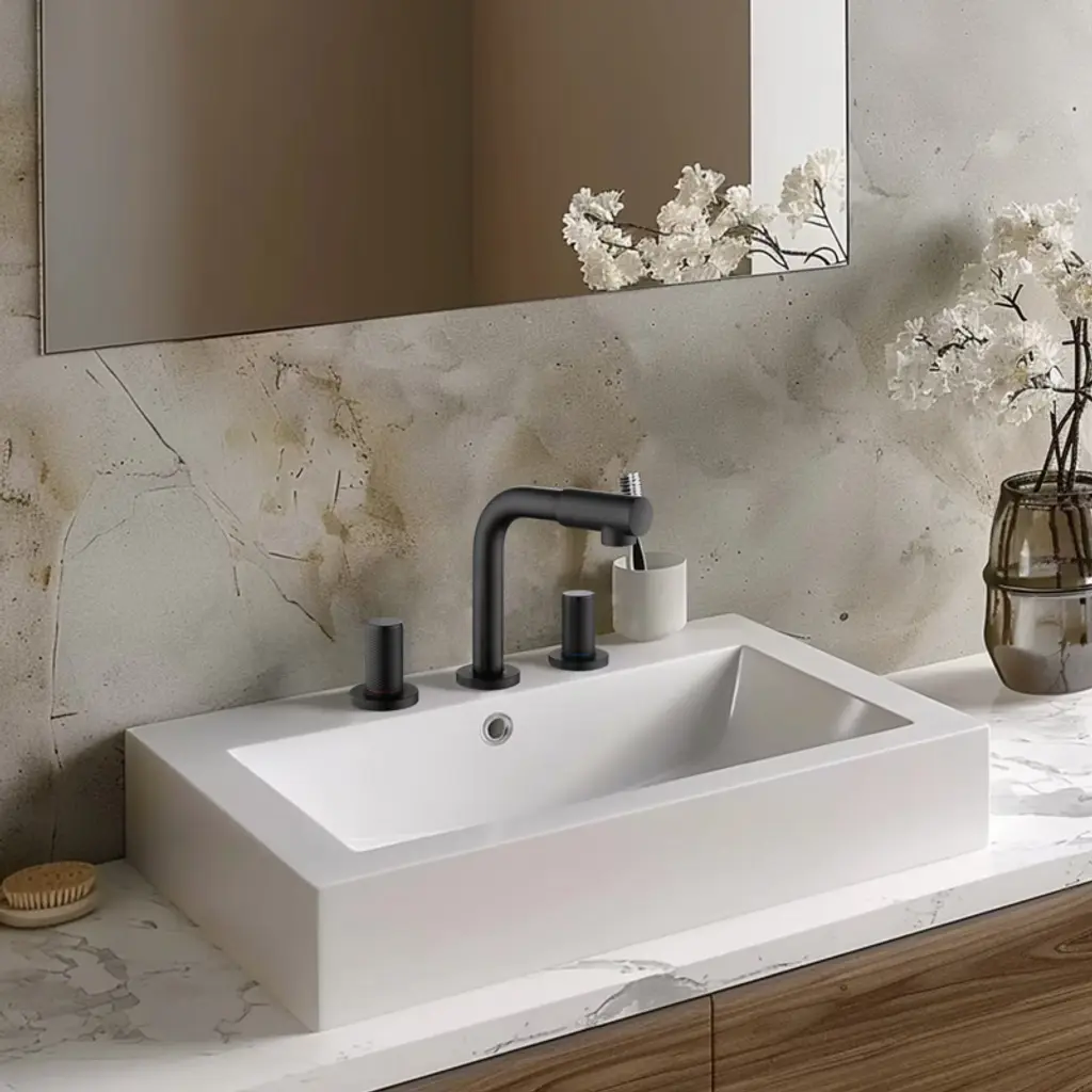 This faucet features a sleek and smooth modern minimalist design with soft contoured lines to give your bathroom a new look.Perfect for new house renovation, old house renovation, high-end villas, high-end apartments, luxury hotels, elites and middle class.