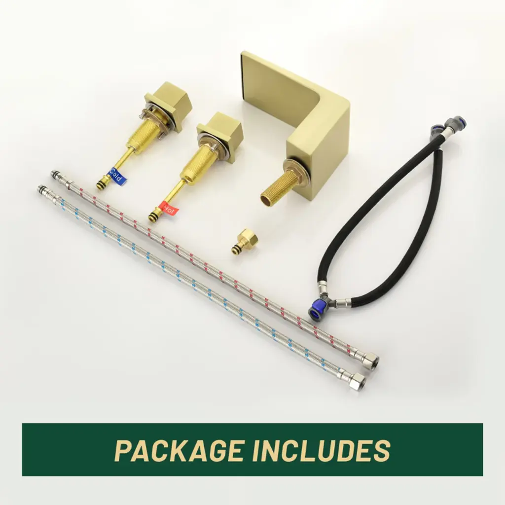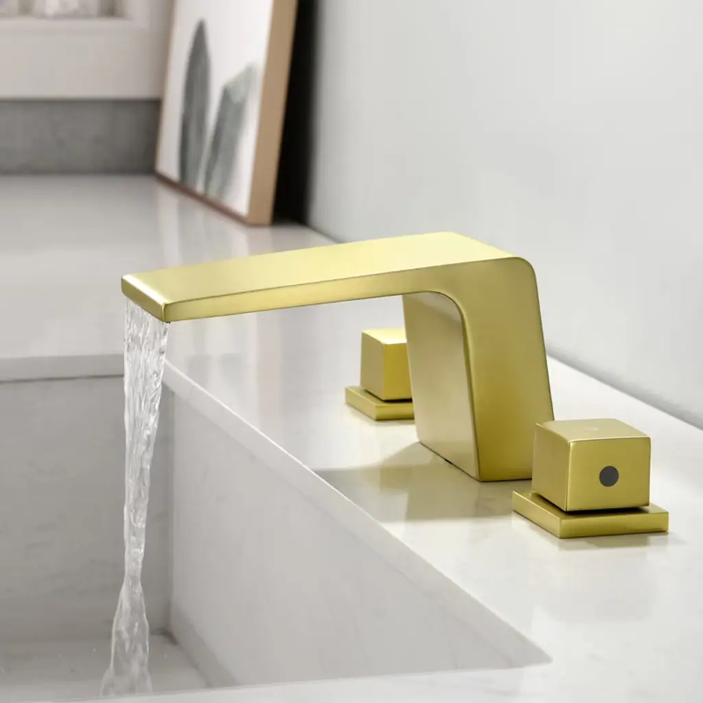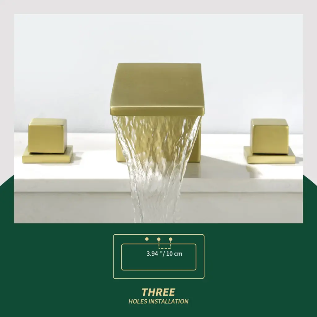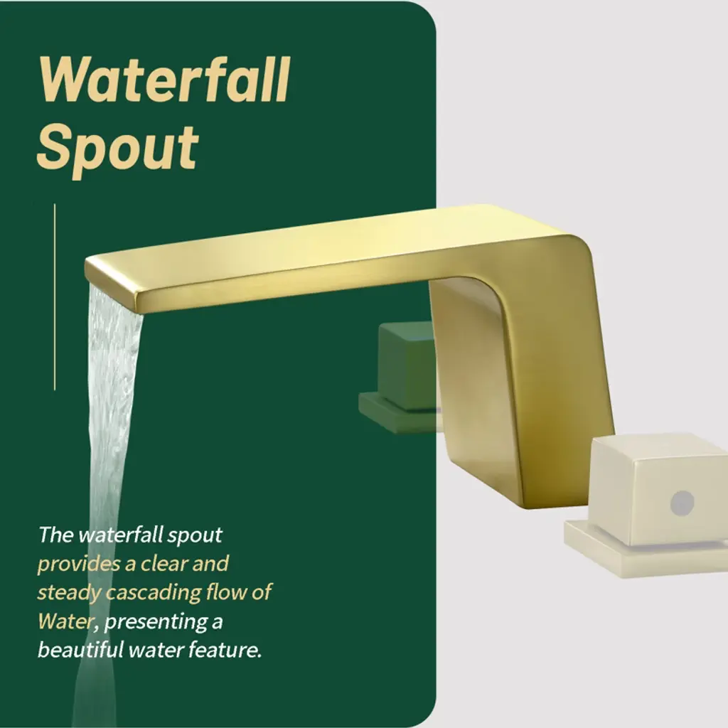 Cobbe Double Handle Waterfall Bathroom Sink Faucet With 3-hole Vanity Widespread Faucet Brushed Gold