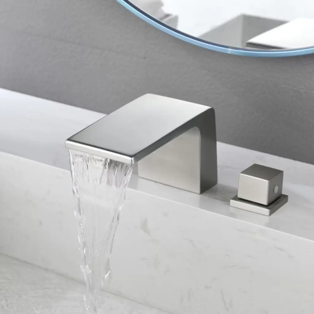 Cobbe Double Handle Waterfall Bathroom Sink Faucet With 3-hole Vanity Widespread Faucet Brushed Nickel