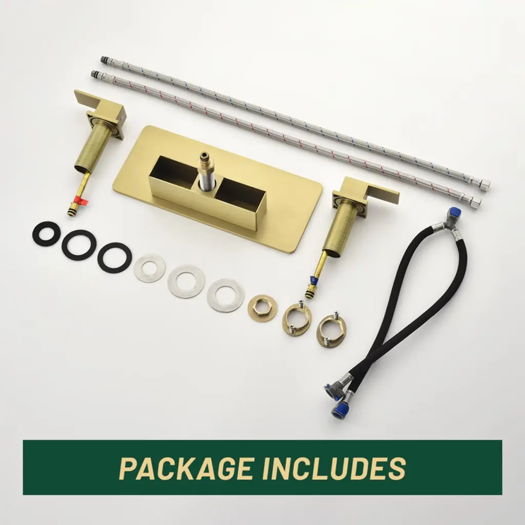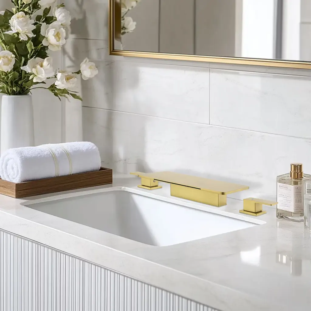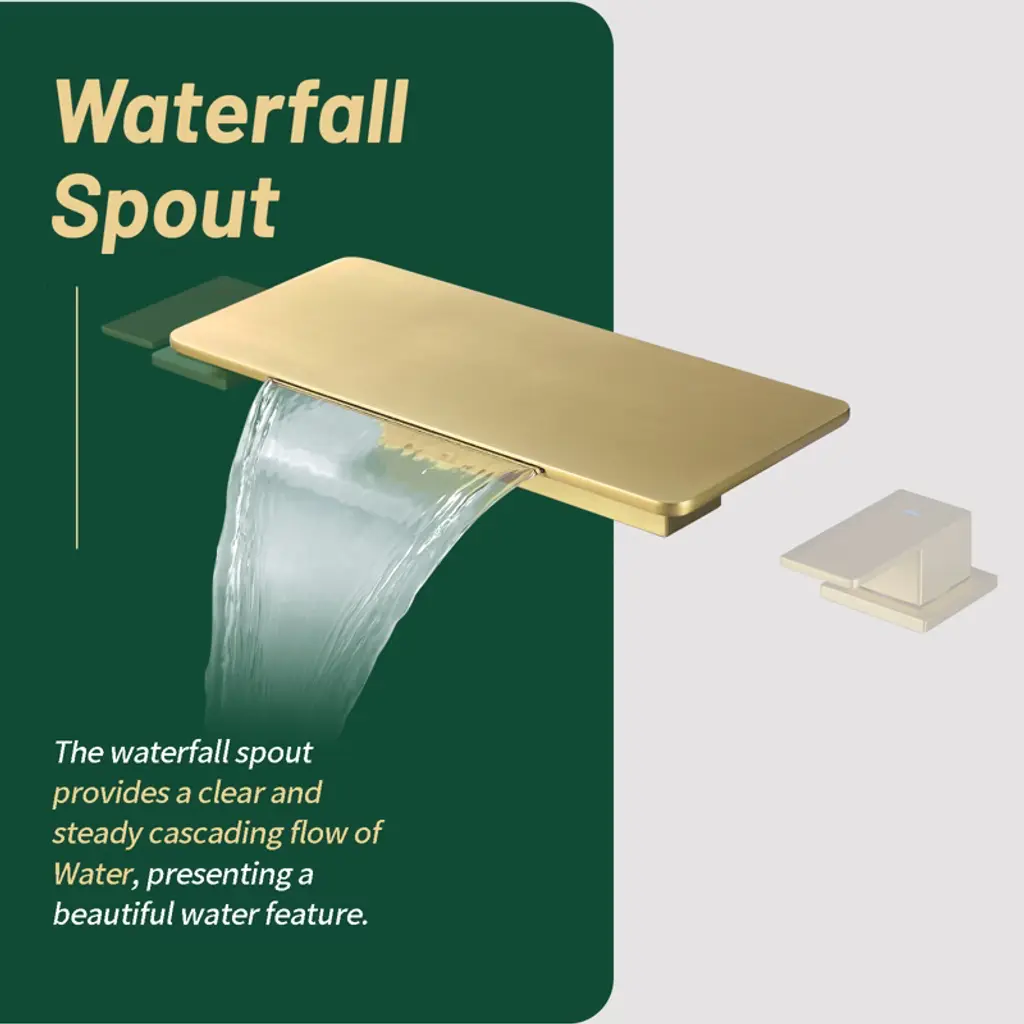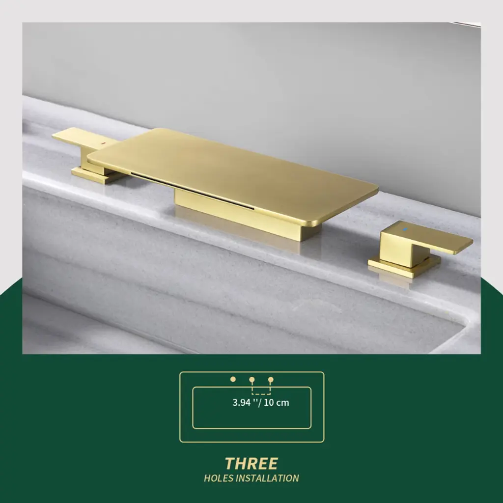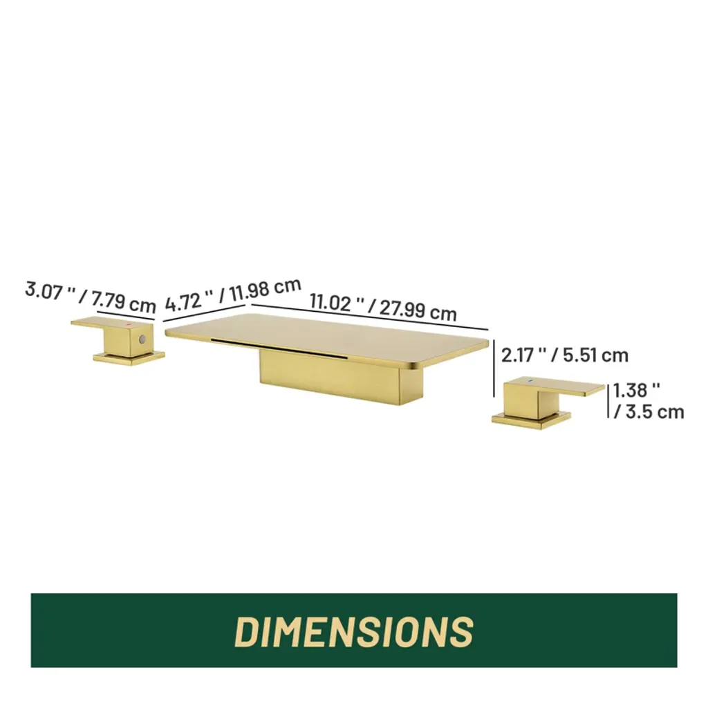 Cobbe Double Handle Waterfall Faucet 3-hole 8-inch Widespread Bathroom Sink Faucet Brushed Gold