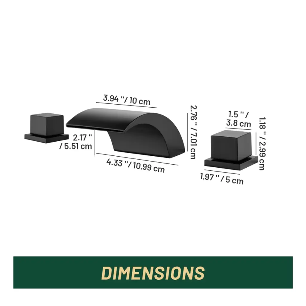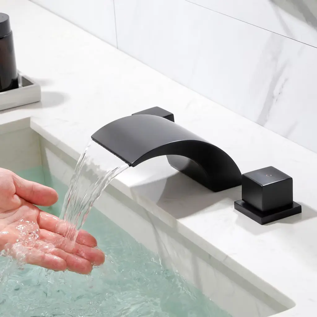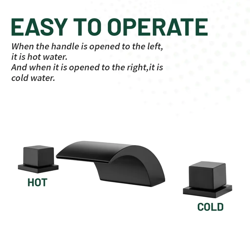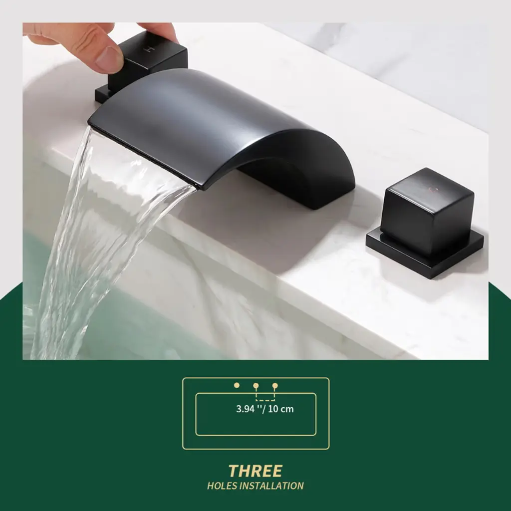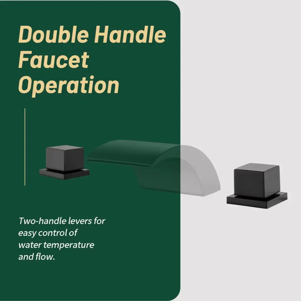 Cobbe Matte Black Bathroom Sink For Vanity Faucet Widespread Faucet With Waterfall Spout 3-hole Double Handle