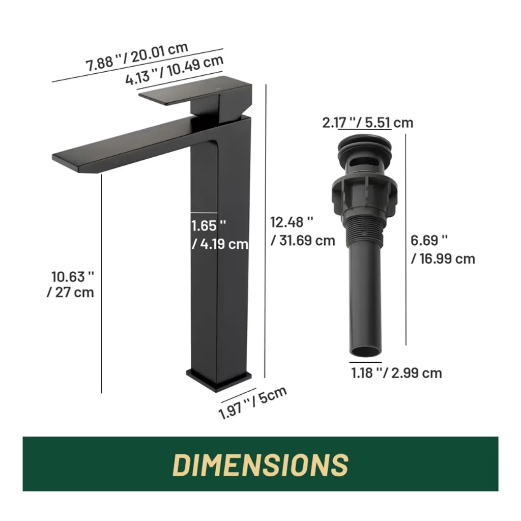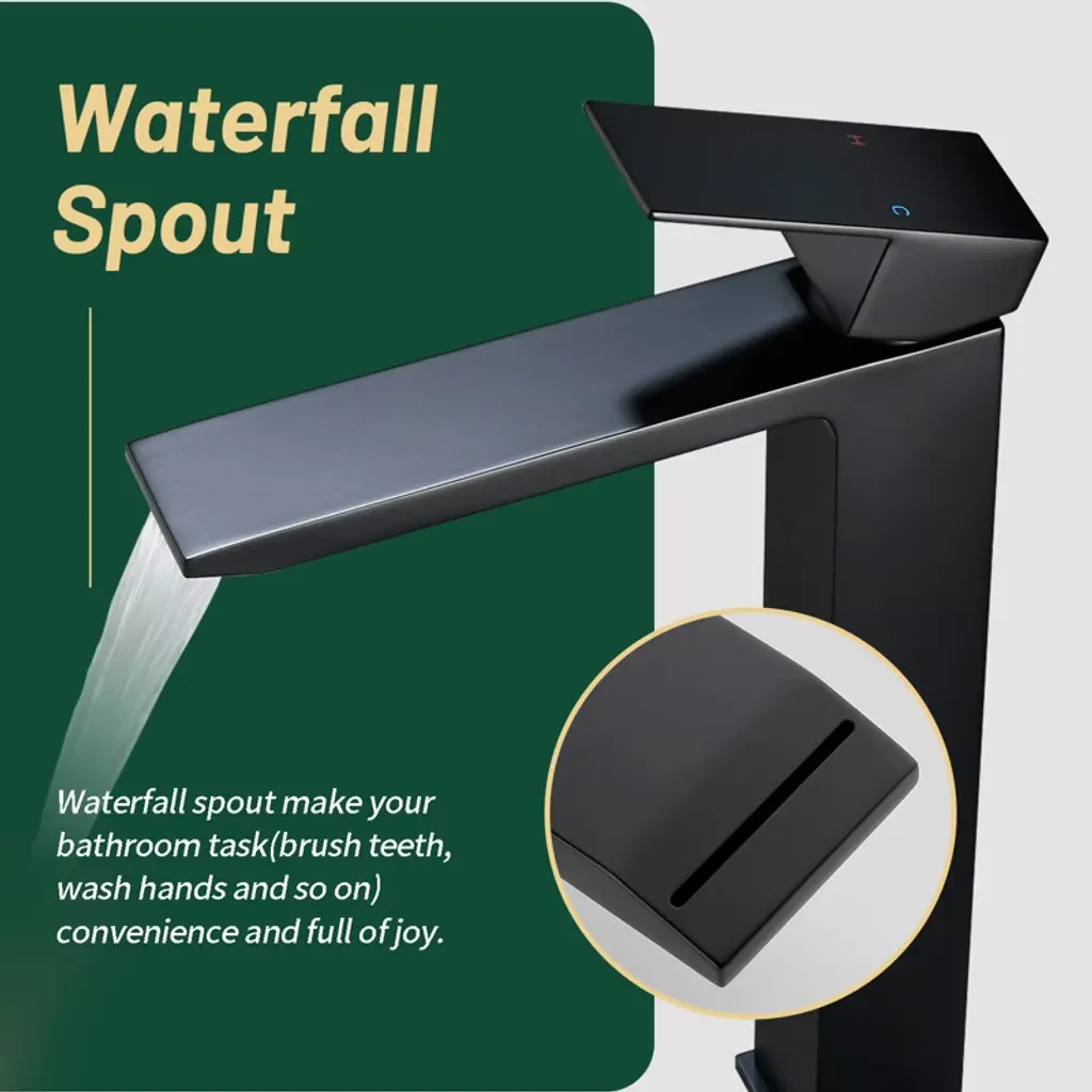 Cobbe Matte Black Bathroom Vessel Sink Faucet Waterfall Single-hole Installation Faucet Single Handle With Pop-up Drain