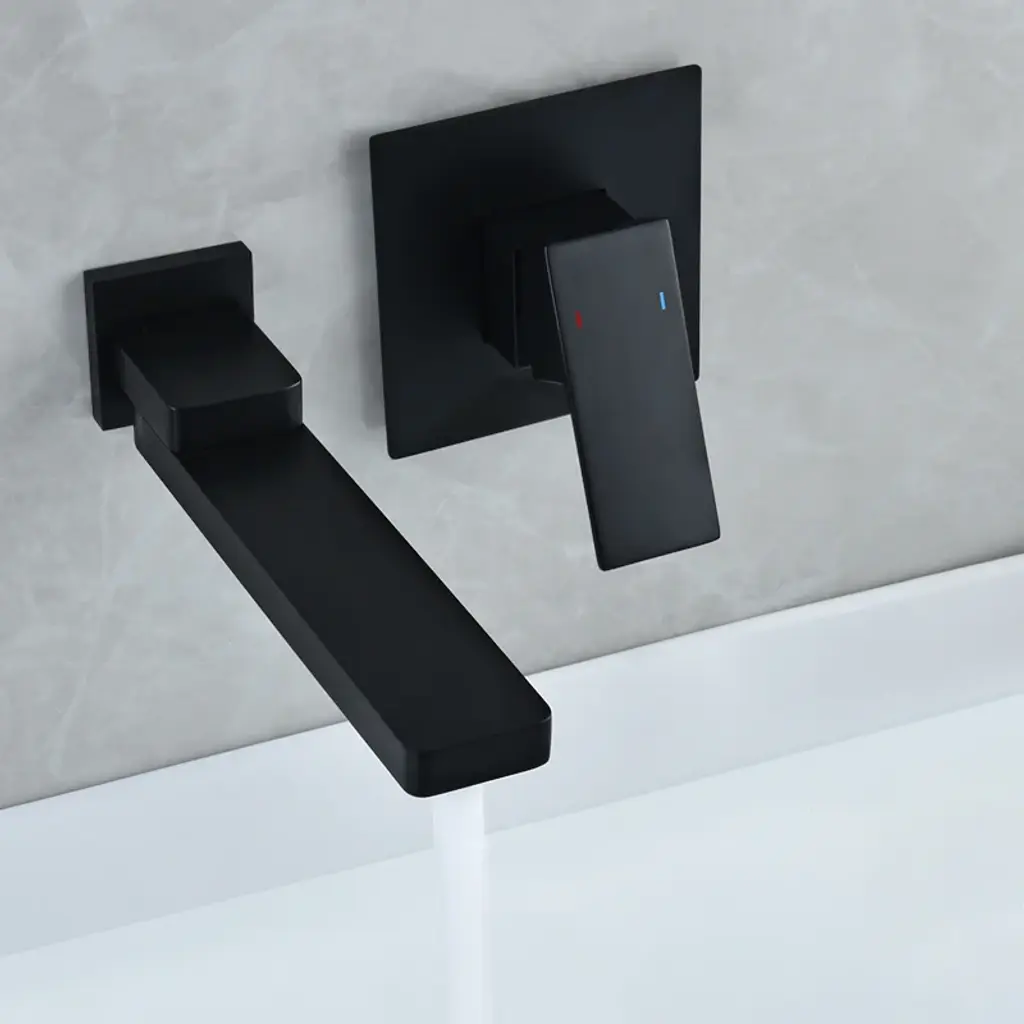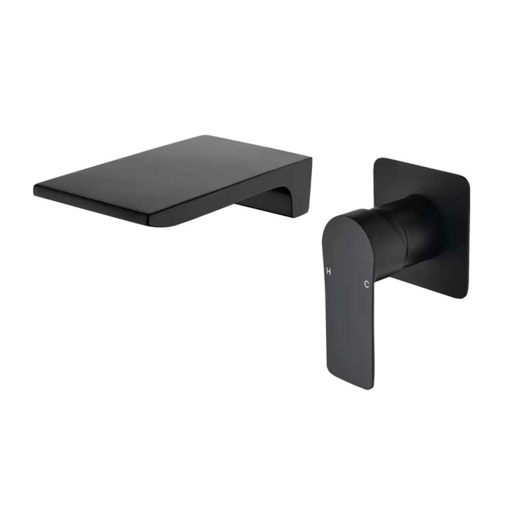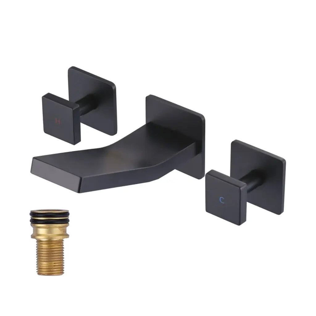 Cobbe Matte Black Wall-mounted 2-hole Bathroom Sink Faucet Single Handle With Waterfall Spout Vanity Faucets