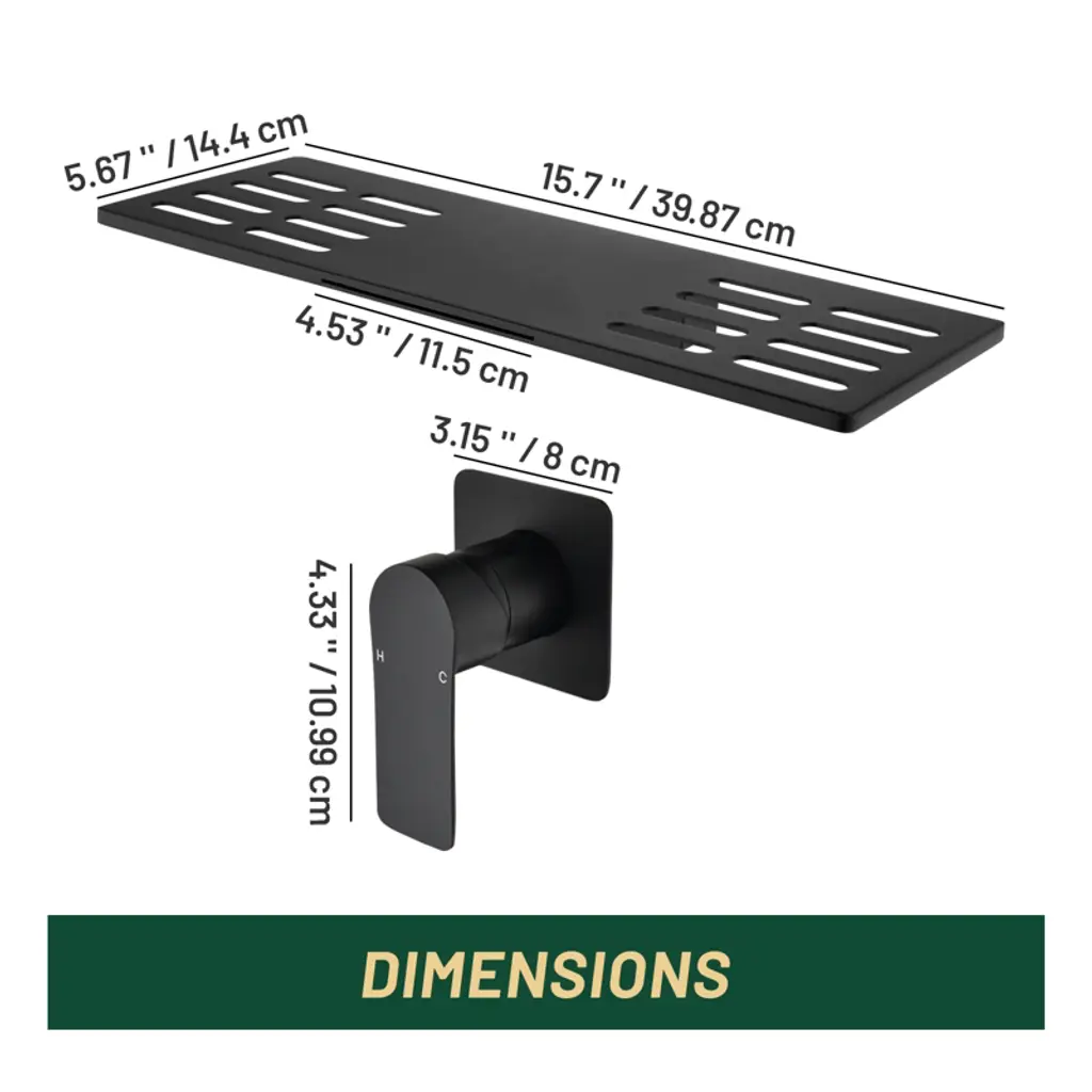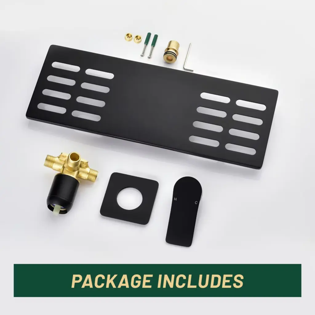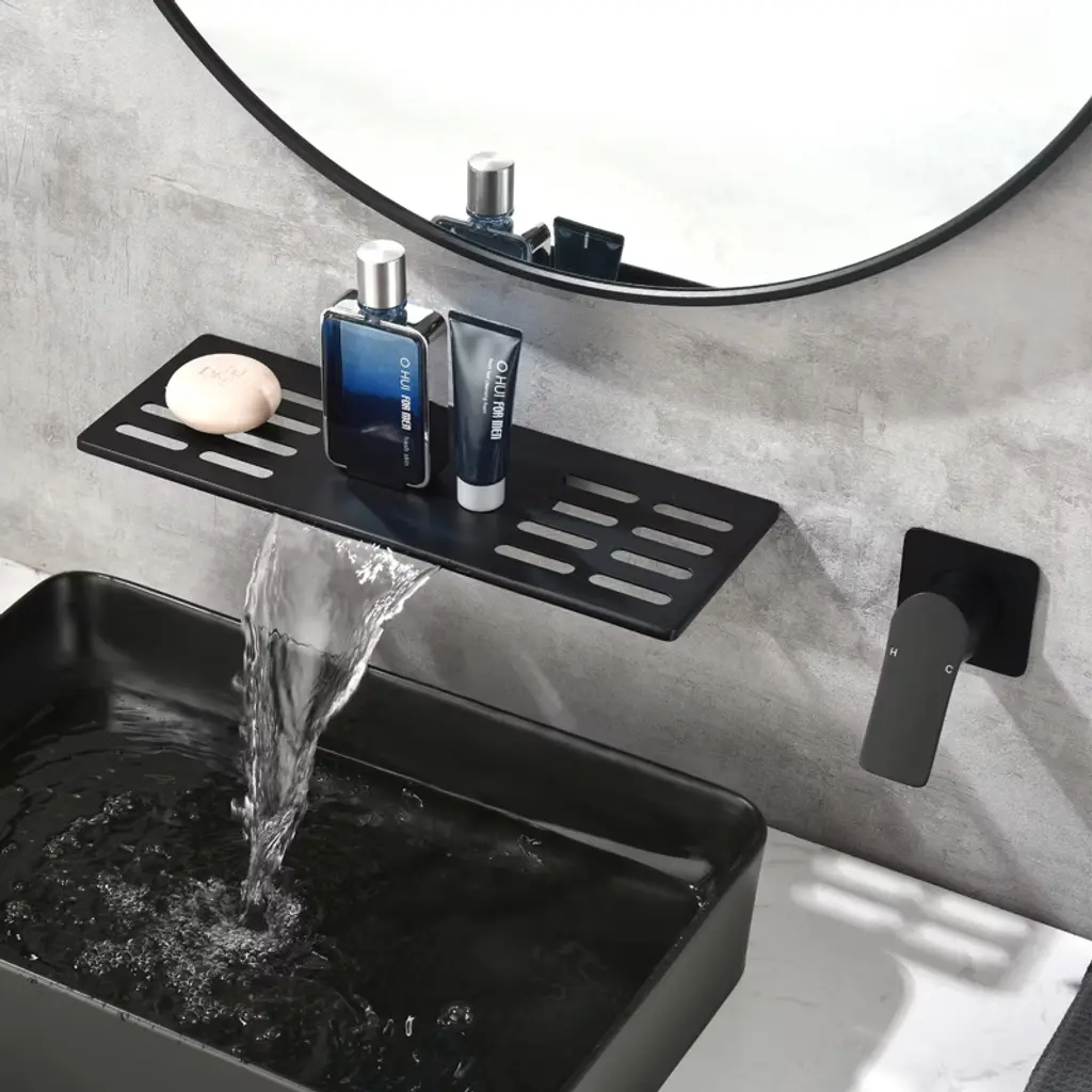 Cobbe Matte Black Wall-mounted 2-hole Bathroom Sink Faucet Single Handle With Waterfall Spout Vanity Faucets