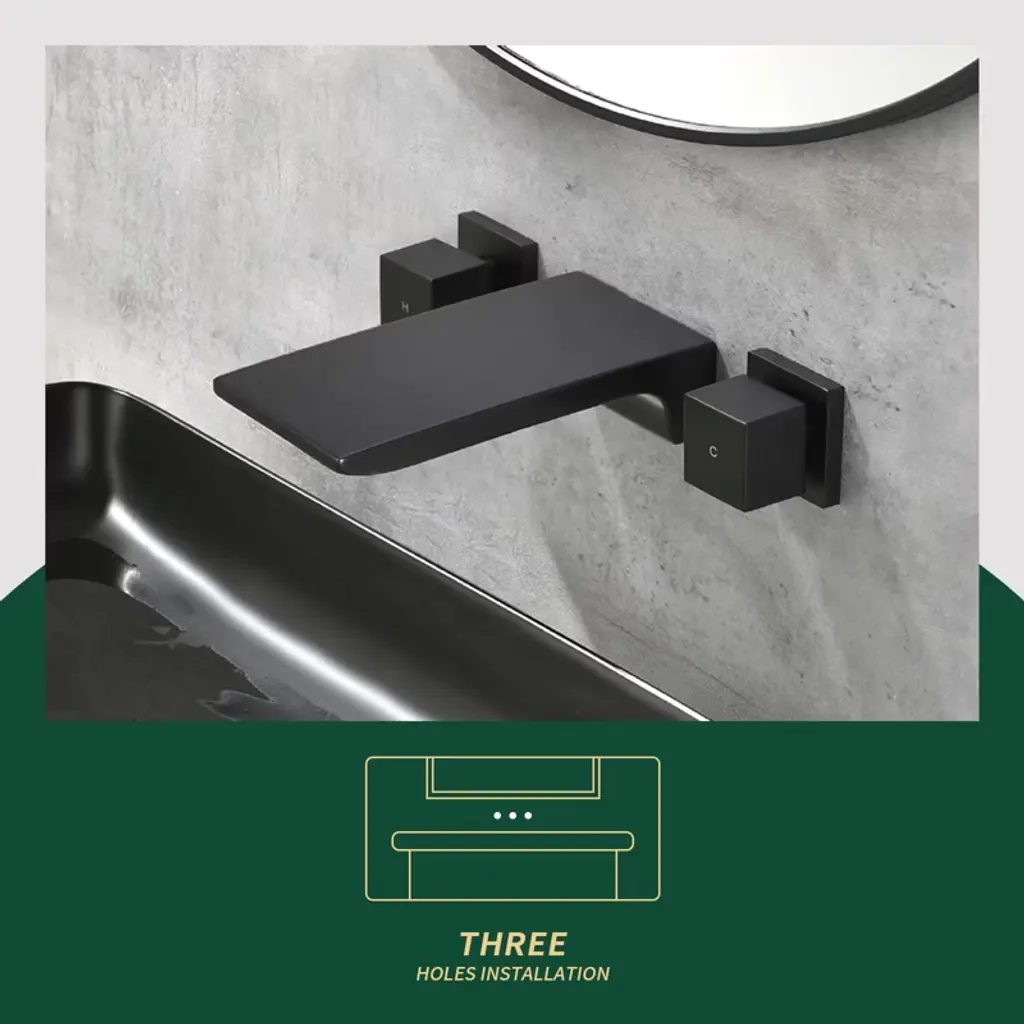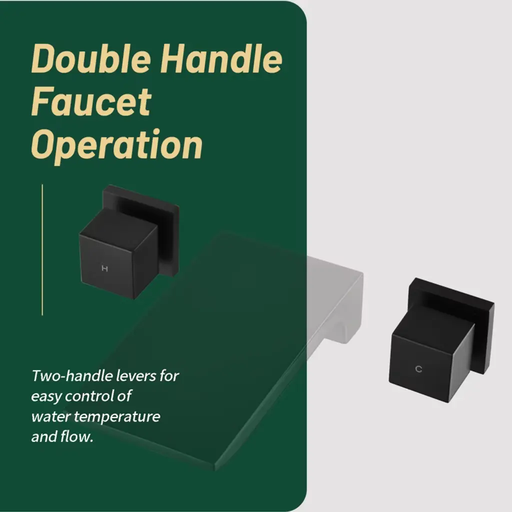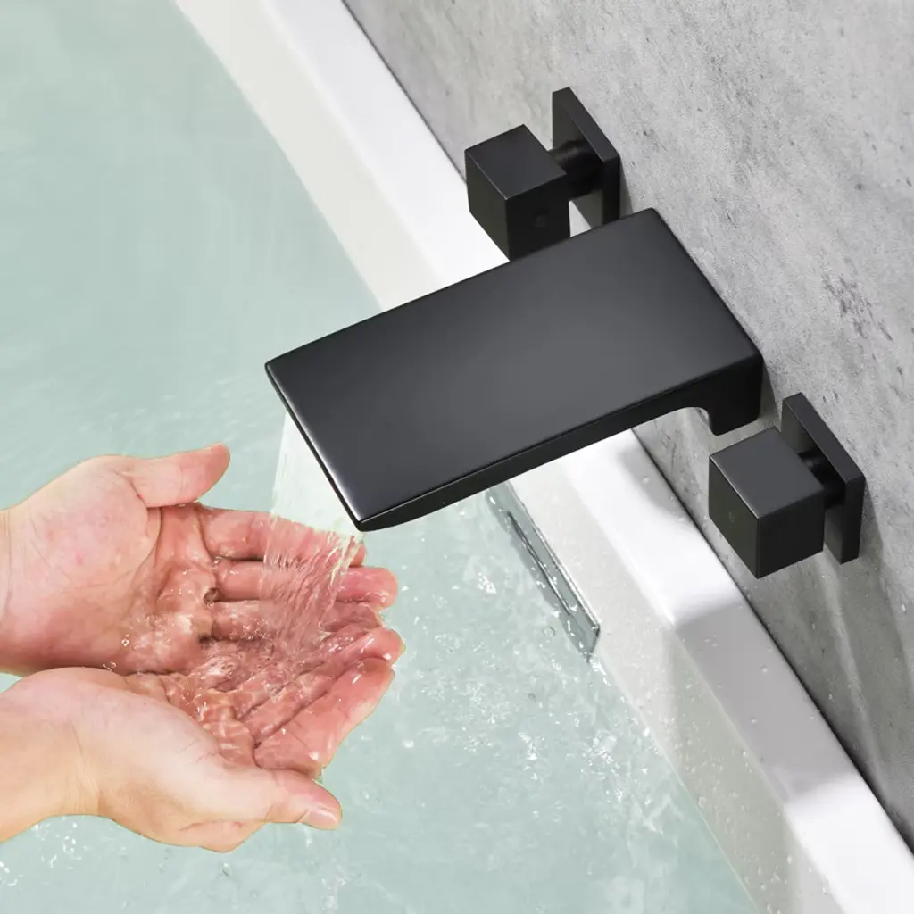 Cobbe Matte Black Wall Mounted Bathroom Faucet Two Handle Bathroom Faucet With Waterfall Spout