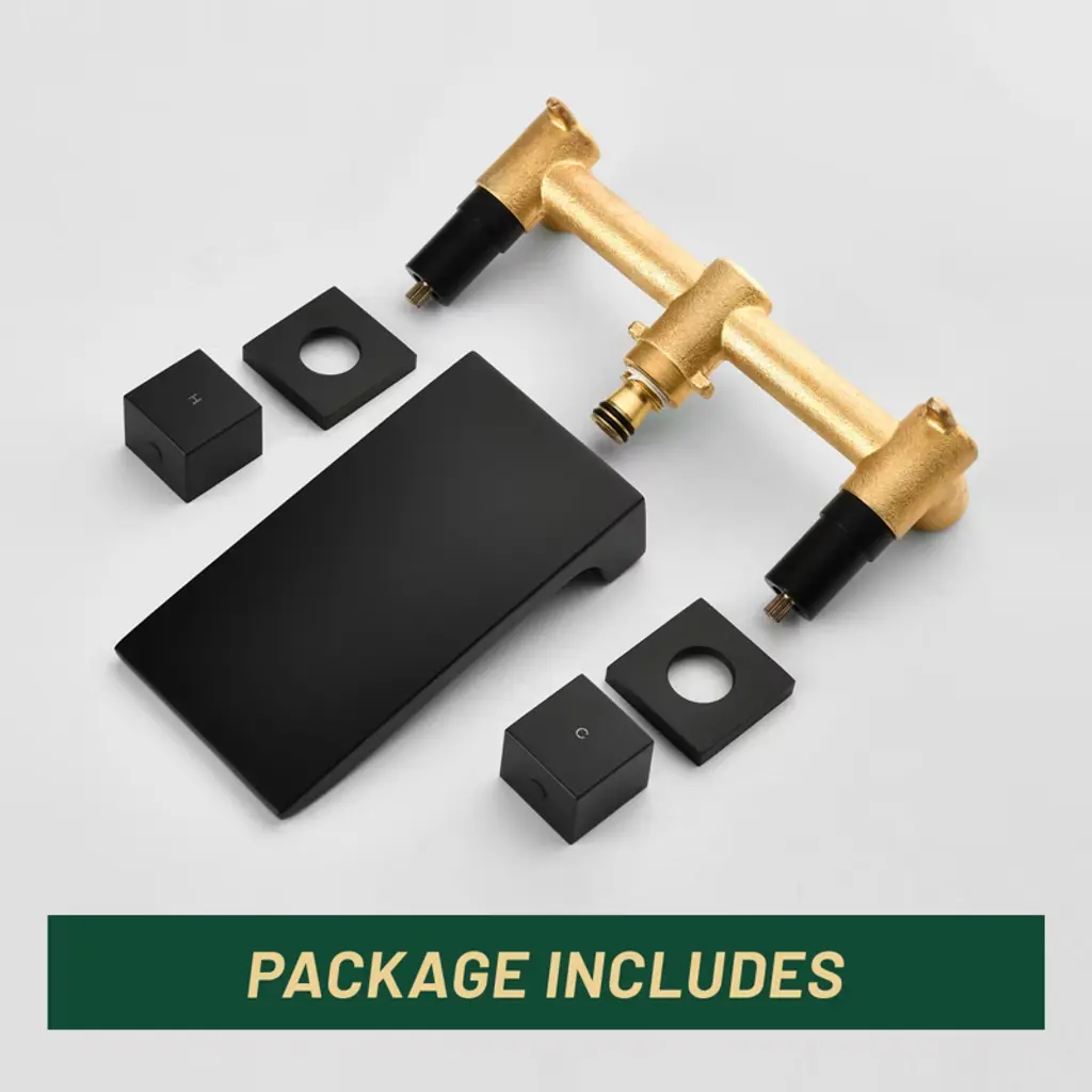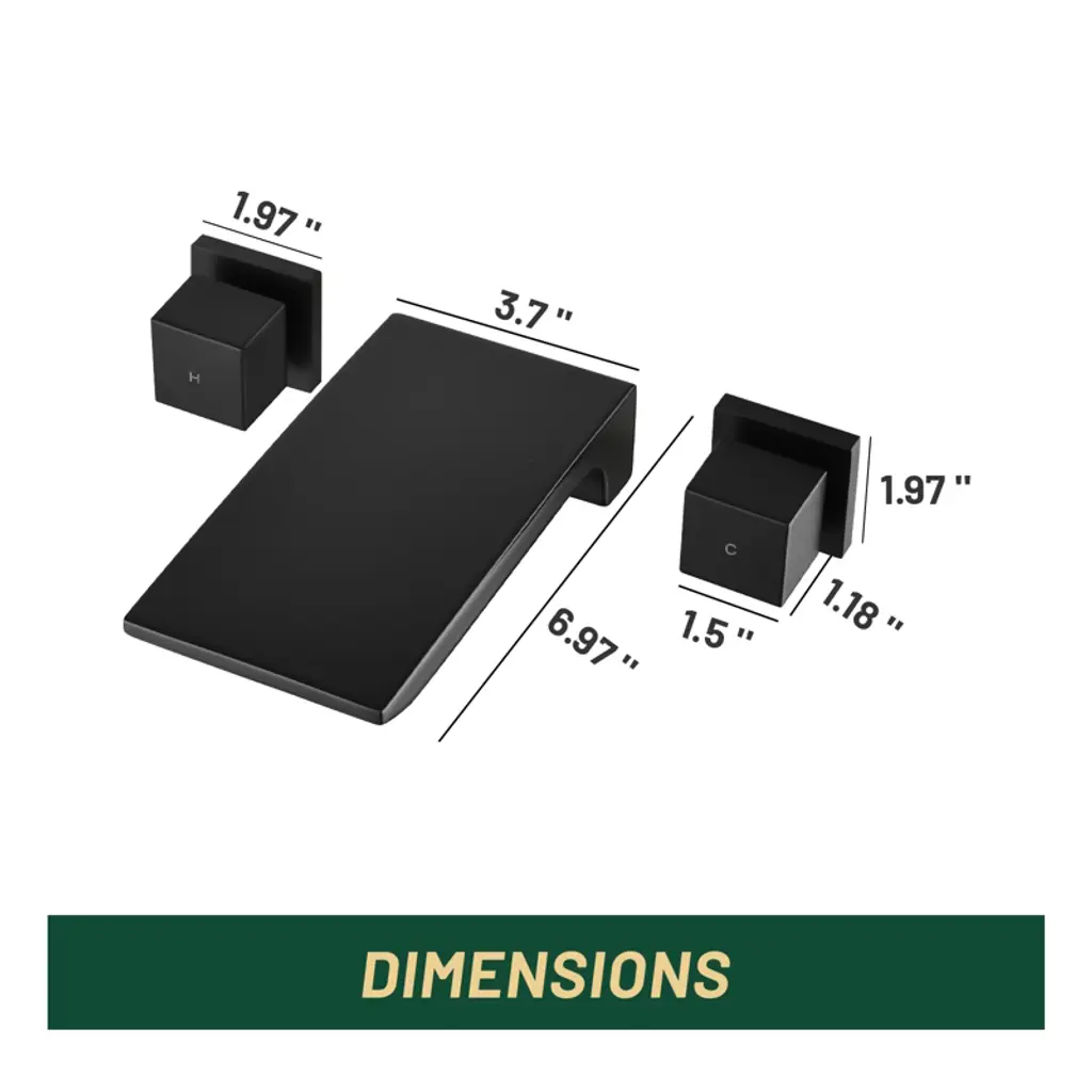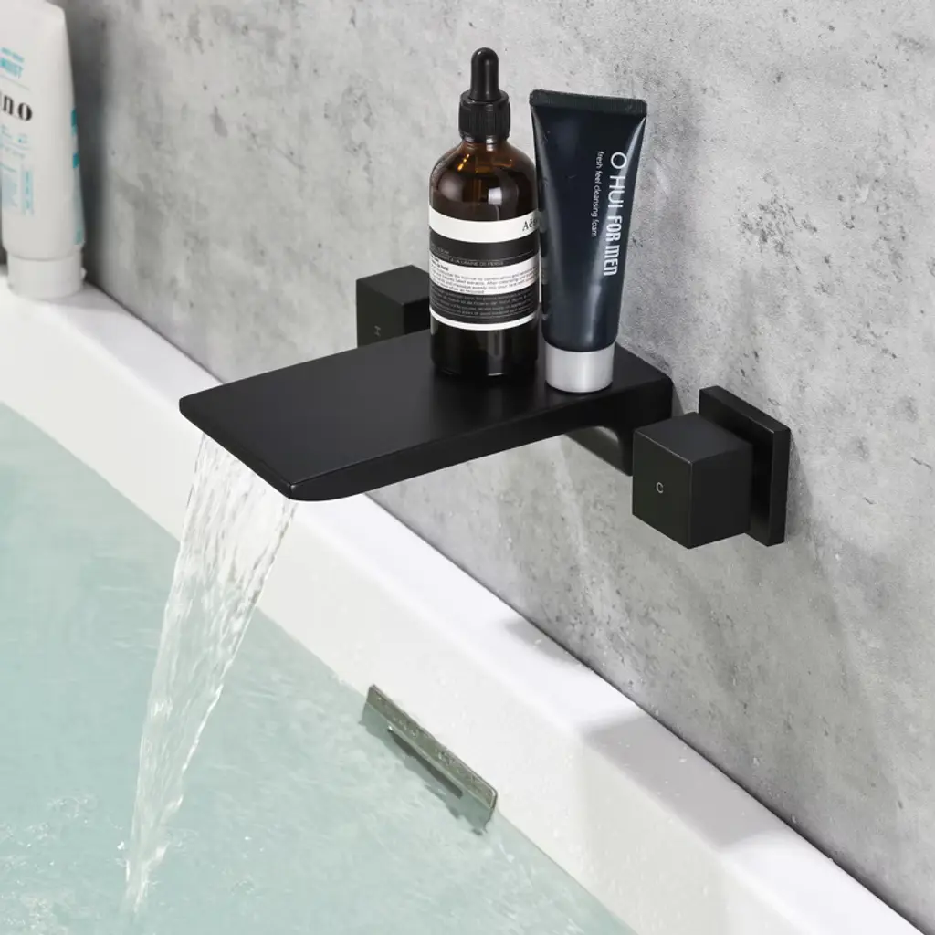Cobbe Matte Black Wall Mounted Bathroom Faucet Two Handle Bathroom Faucet With Waterfall Spout
