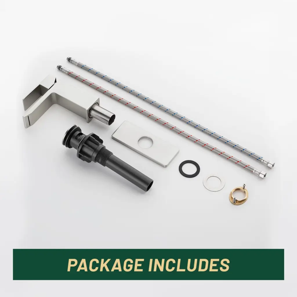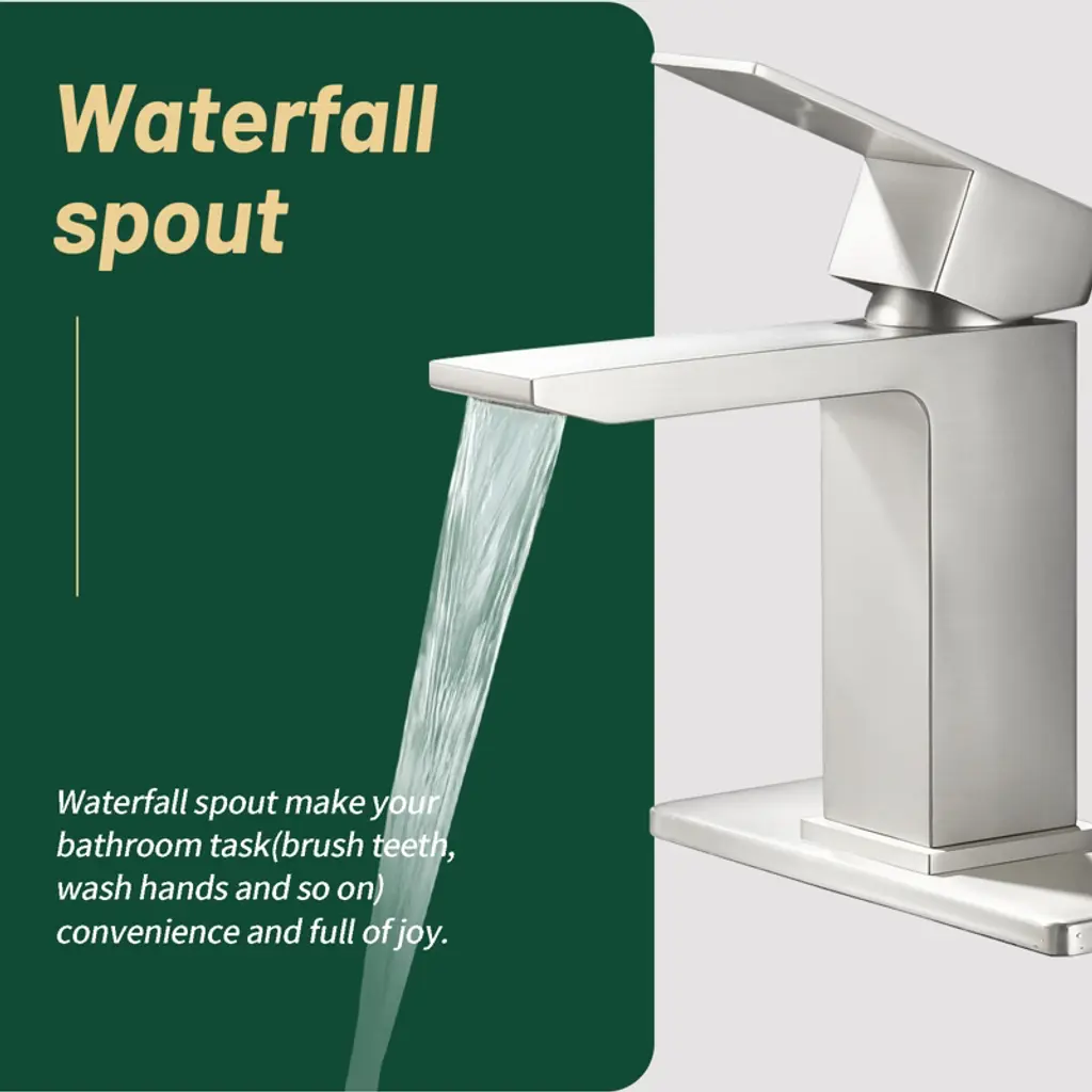 Cobbe Single Handle Bathroom Sink Faucet For Vanity Waterfall Spout Design Single-hole Installation With Pop-up Drain Brushed Nickel