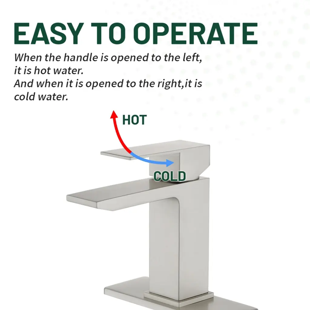 This single handle bathroom faucet is made of high quality material, combining durable structure and modern fashion design, which can naturally integrate into a variety of bathroom styles, creating both practicality and aesthetics for you to create a bathroom space, which is very suitable for new home renovation, renovation of old houses, high-end villas, high-grade apartments, luxury hotels and so on.