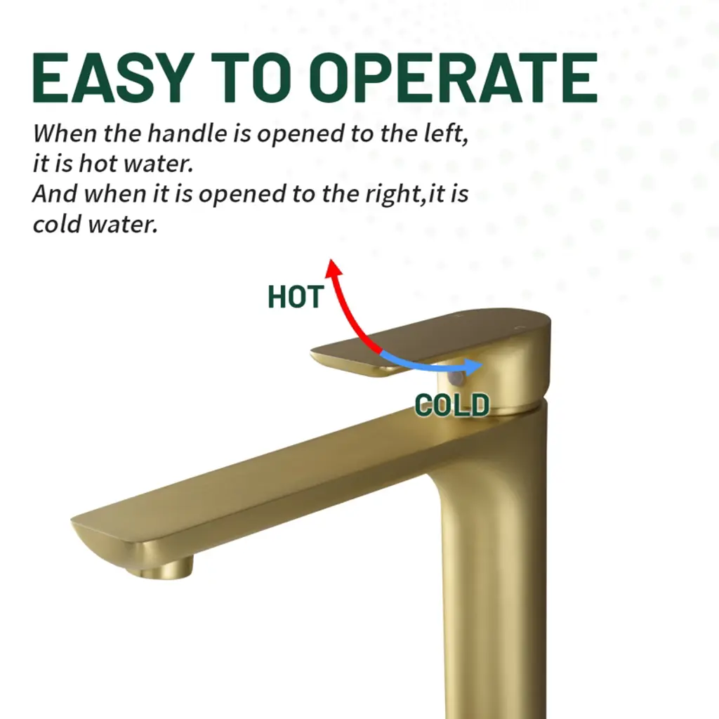 Cobbe Single Handle Bathroom Vessel Sink Faucet Single-hole Installation Brushed Gold