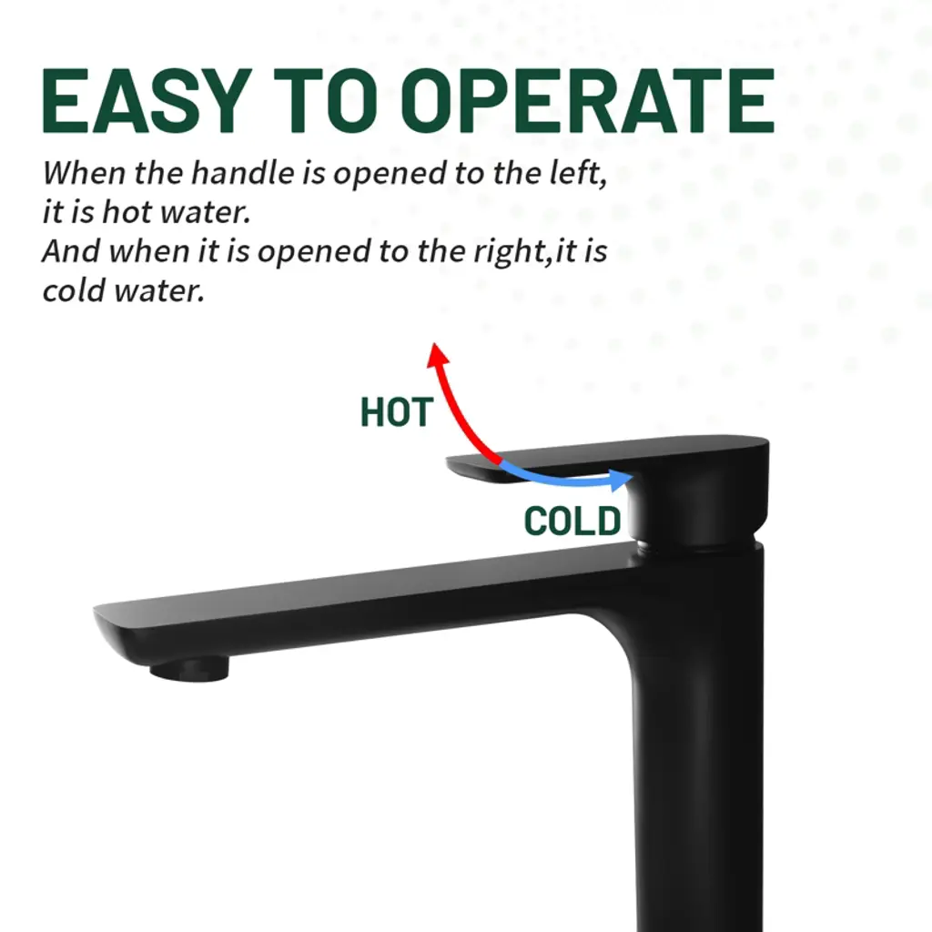 This single handle bathroom faucet is made of high-quality copper material with durable and long-lasting structure, as well as elegant and stylish modern design, which is able to adapt to a variety of bathroom environments and naturally blend with common bathroom decorative styles, from the structure to the design, this faucet is the right choice for your bathroom.