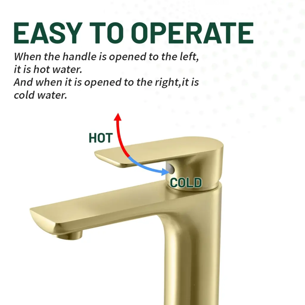 This single handle bathroom faucet is made of high-quality copper material with durable and long-lasting structure, as well as elegant and stylish modern design, which is able to adapt to a variety of bathroom environments and naturally blend with common bathroom decorative styles, from the structure to the design, this faucet is the right choice for your bathroom.