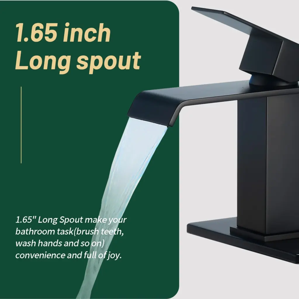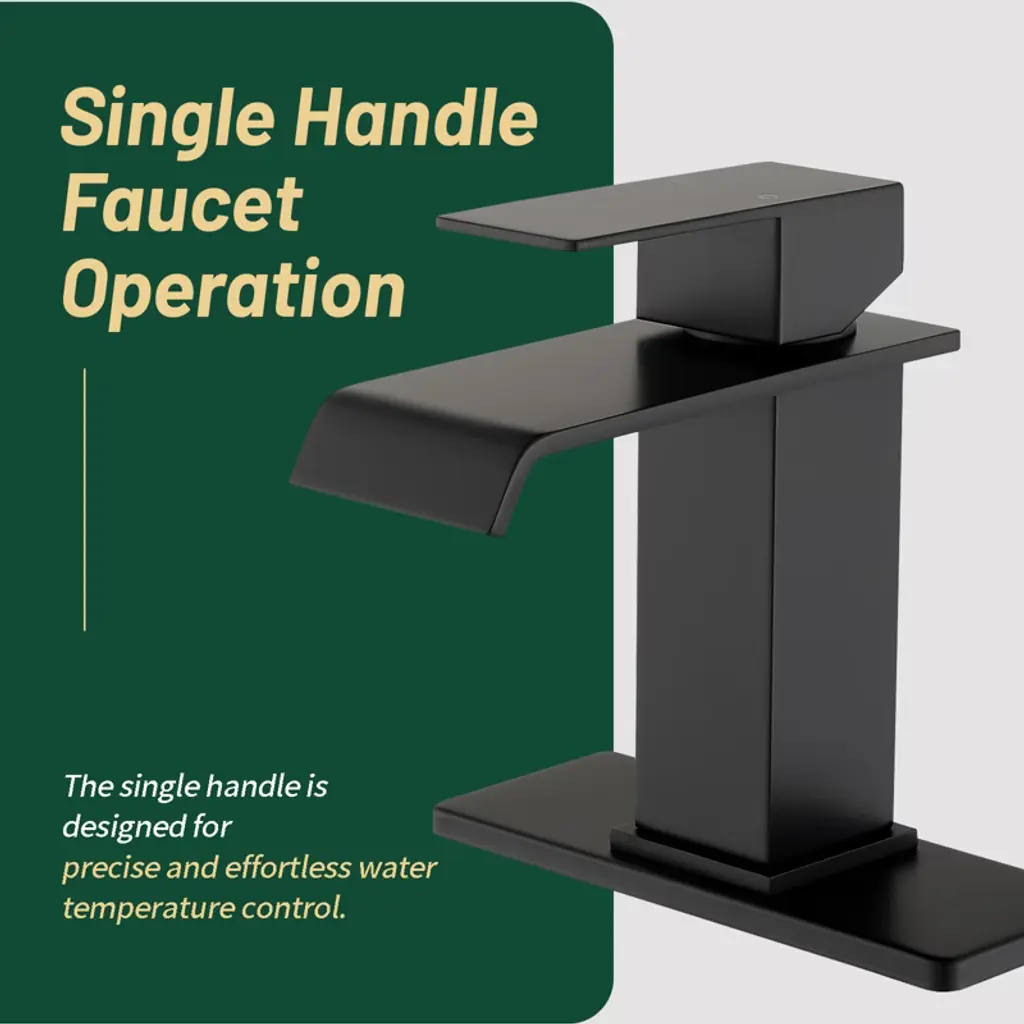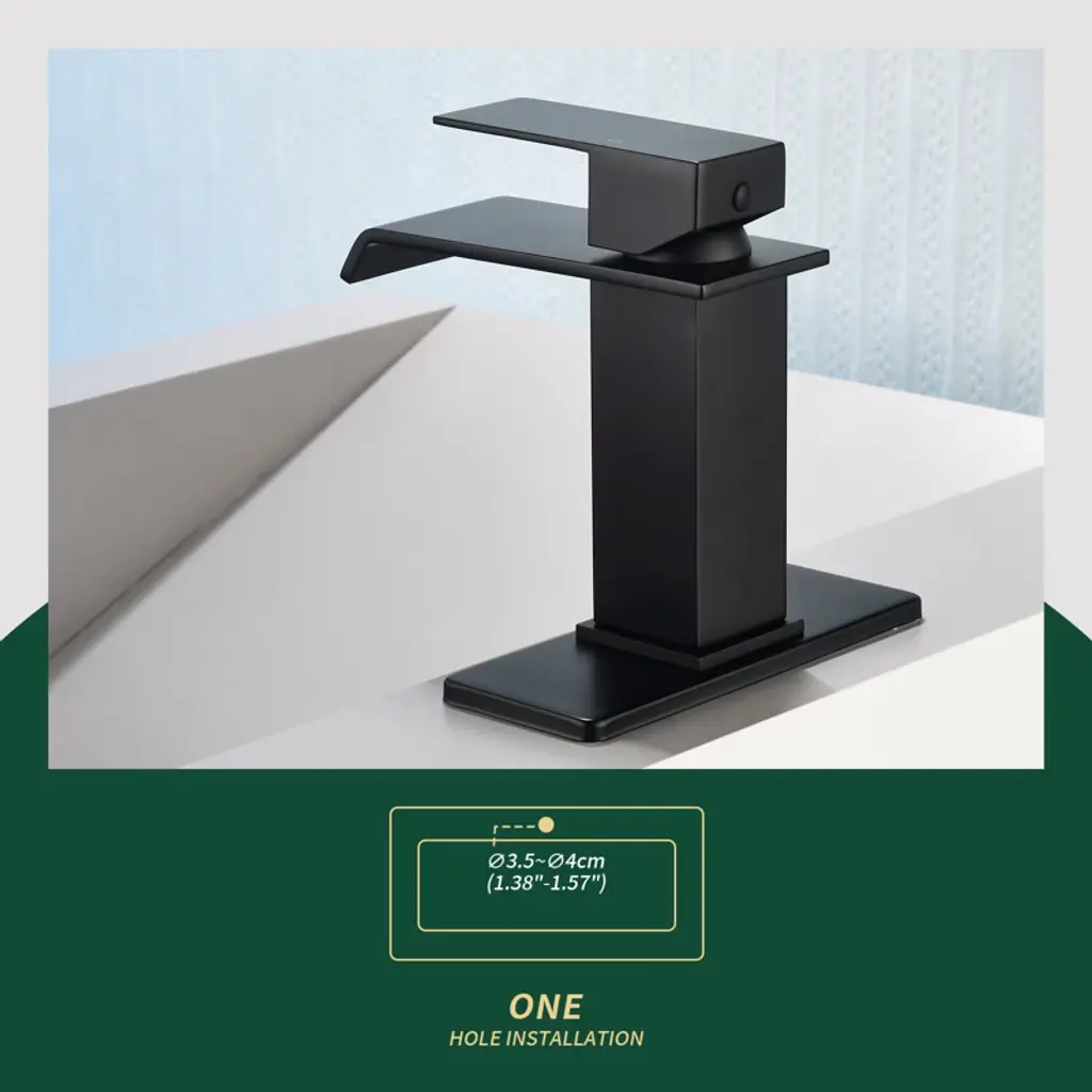 Cobbe Single Handle Waterfall Spout Bathroom Sink Faucet For Vanity Single-hole Installation With Pop-up Drain Matte Black