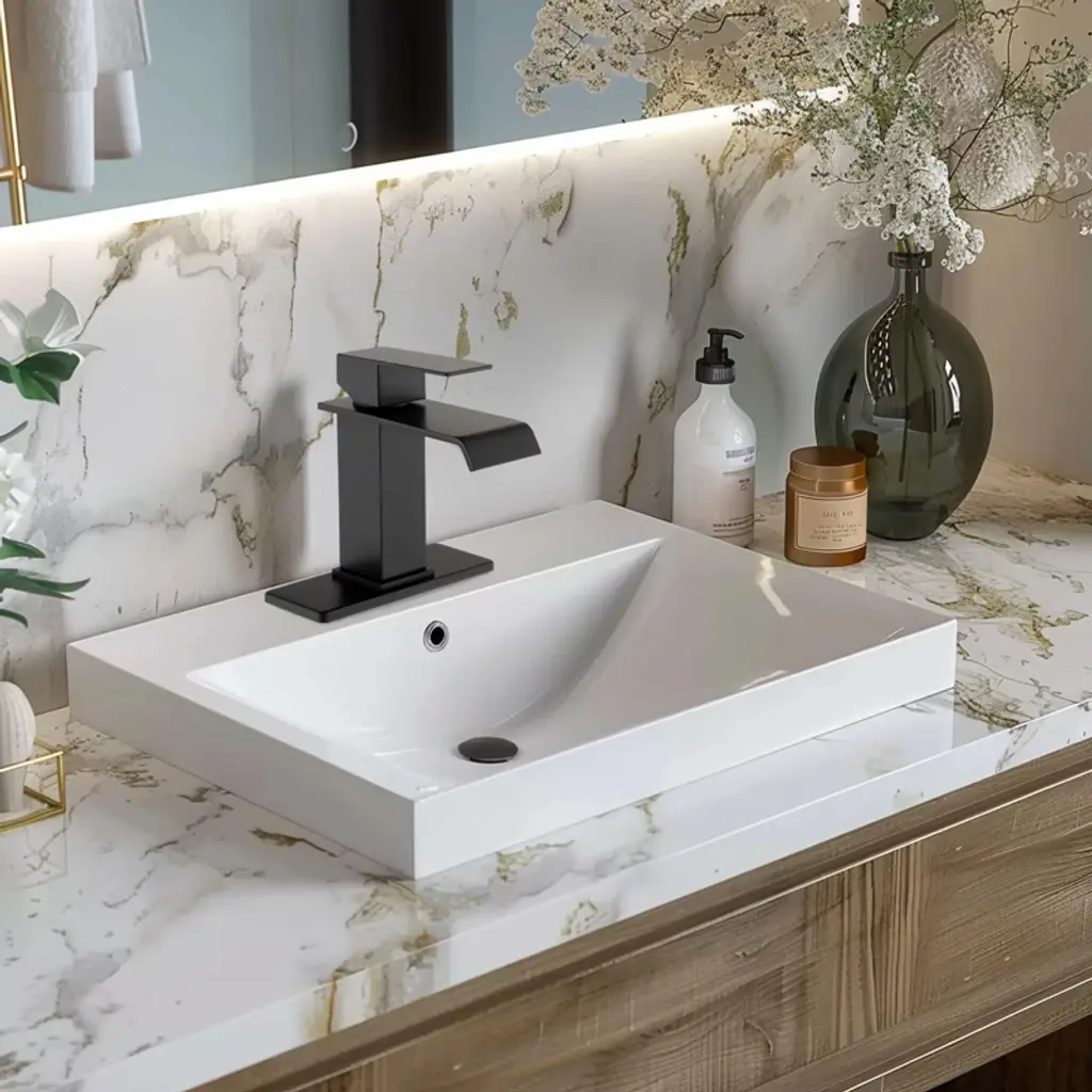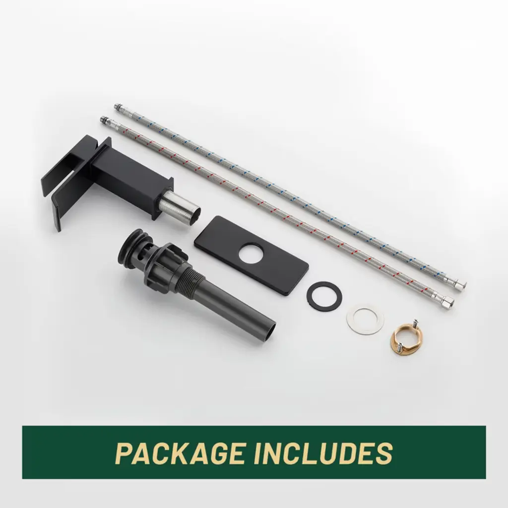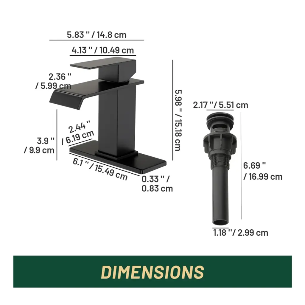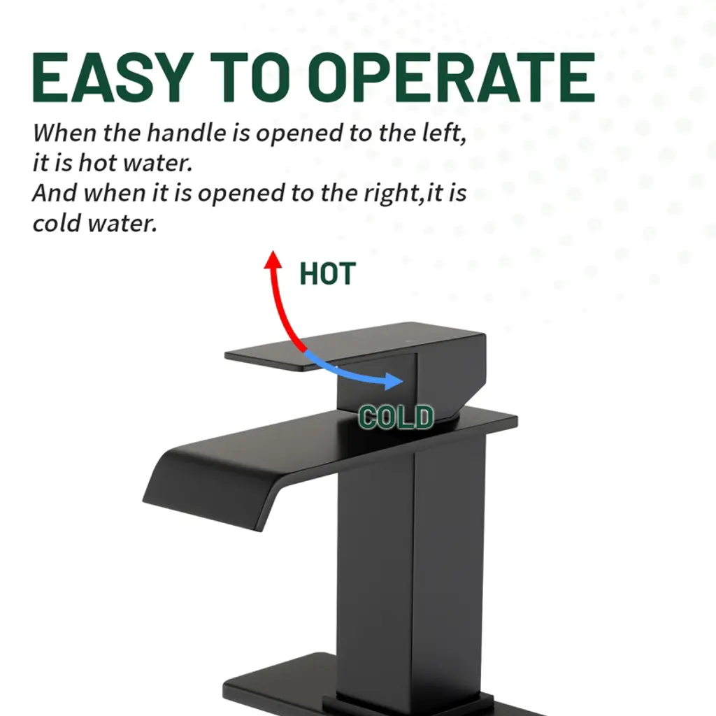 Cobbe Single Handle Waterfall Spout Bathroom Sink Faucet For Vanity Single-hole Installation With Pop-up Drain Matte Black