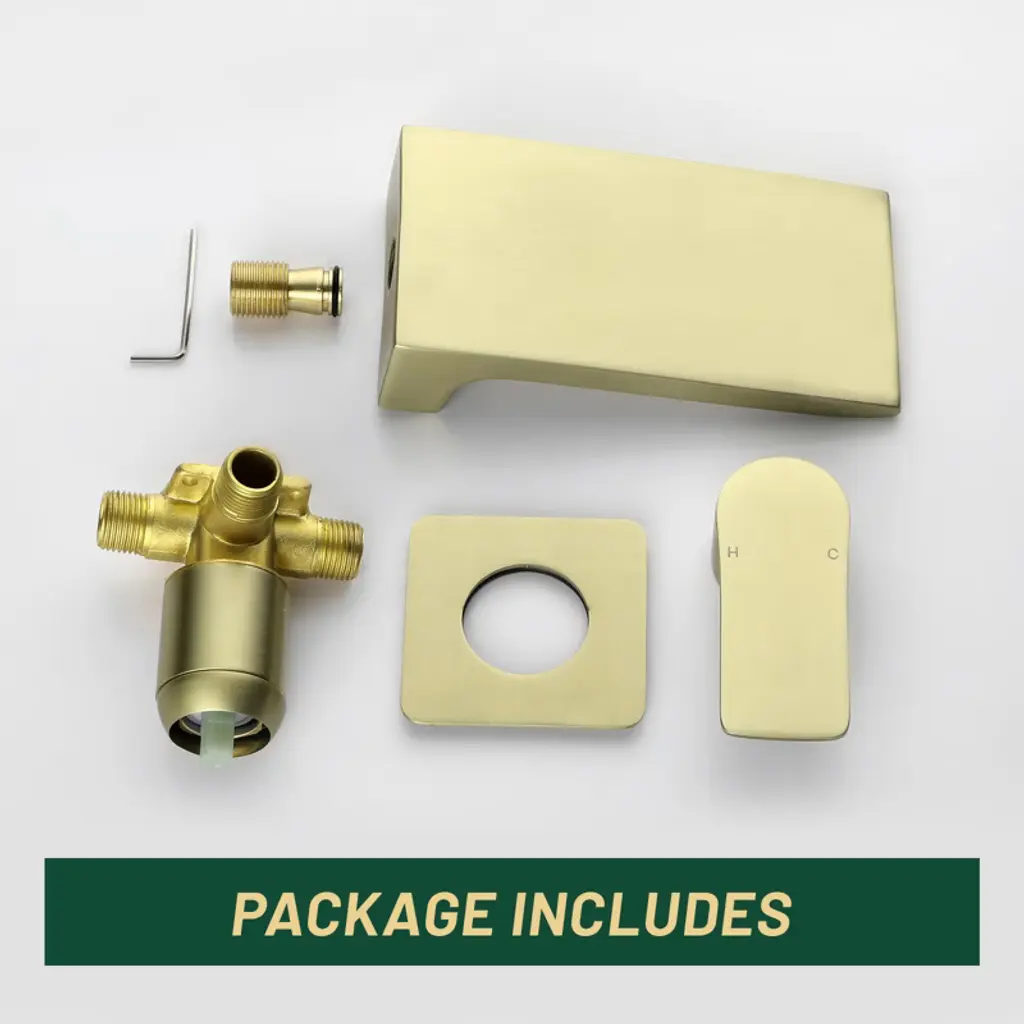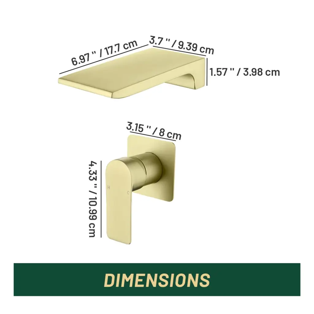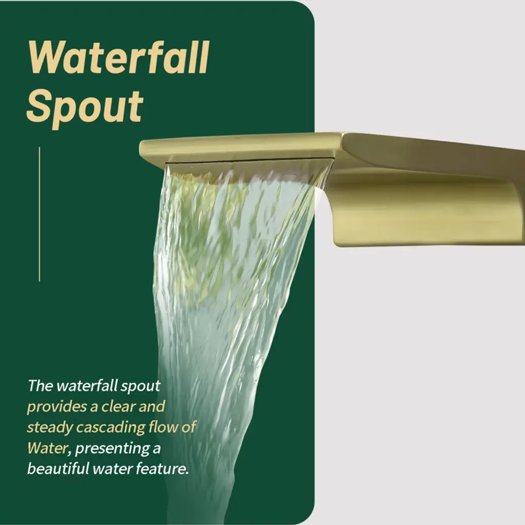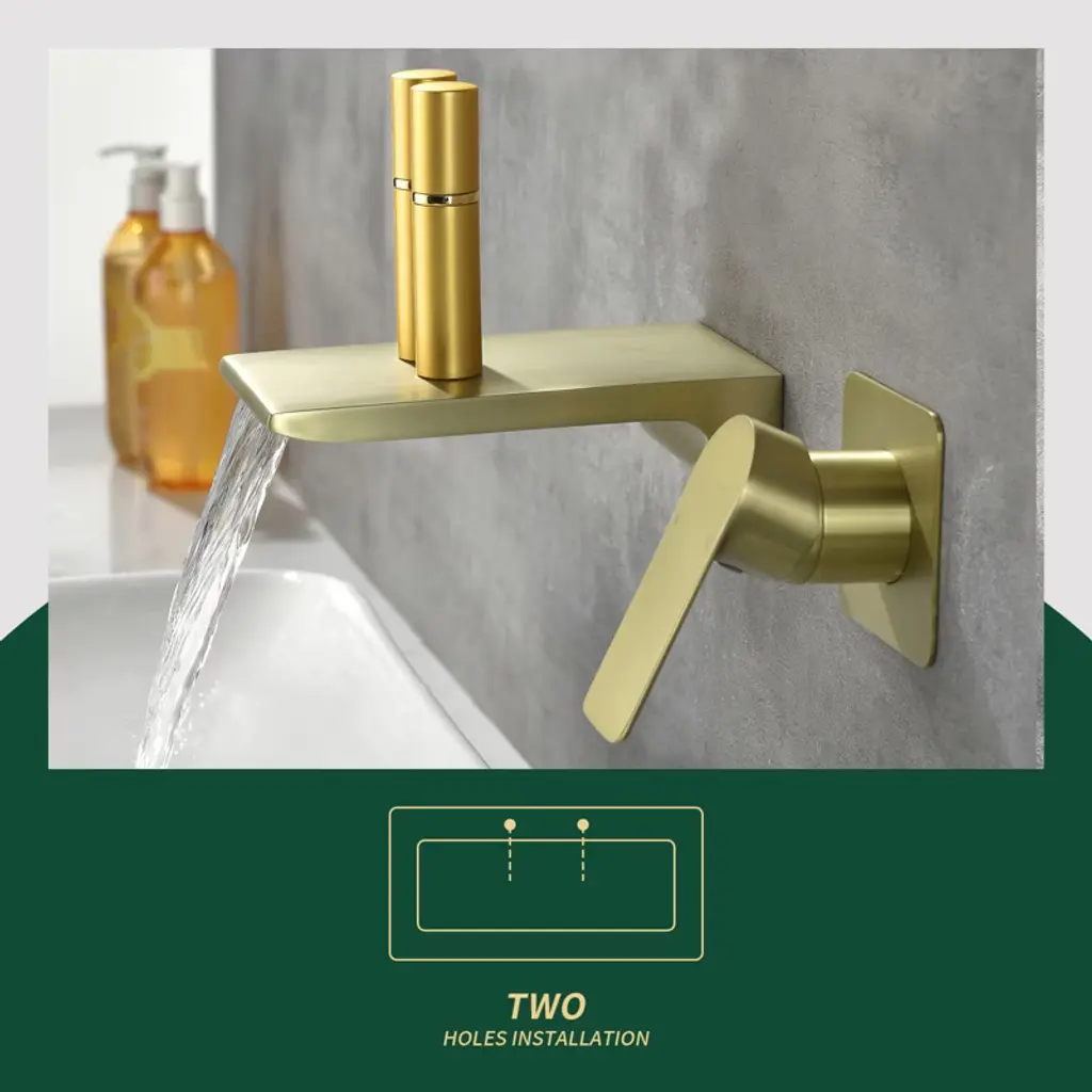 Cobbe Wall-mounted Faucet Single Handle With Waterfall Spout 2-hole Installation Bathroom Sink Faucet Brushed Gold