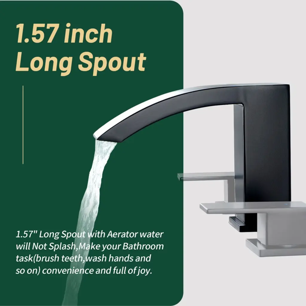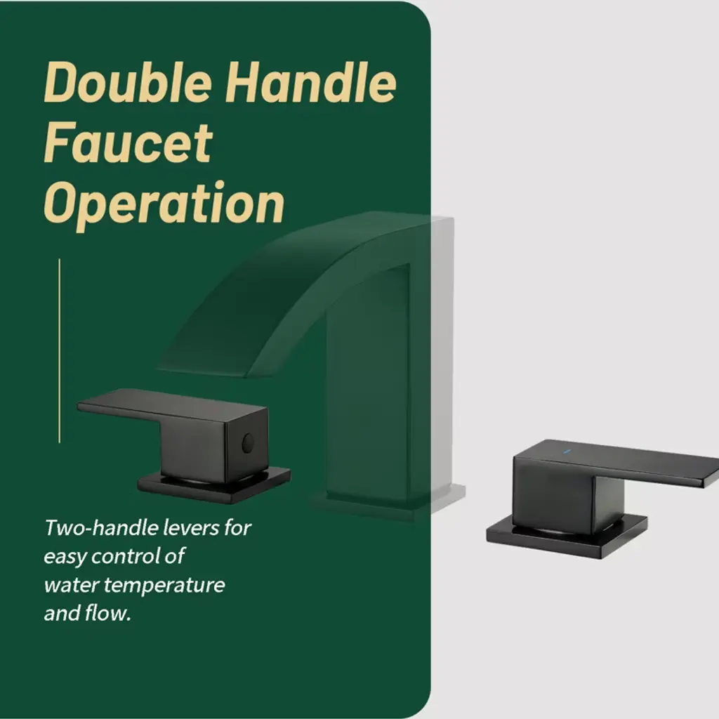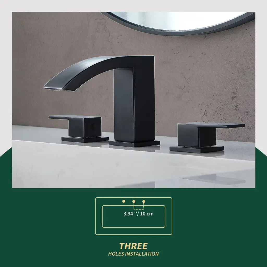 Cobbe Waterfall Bathroom Sink Faucet For Vanity 3-hole Installation 2-handle Faucet With Pop-up Drain Matte Black